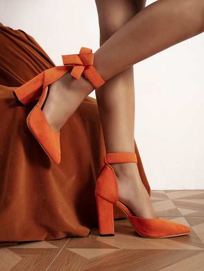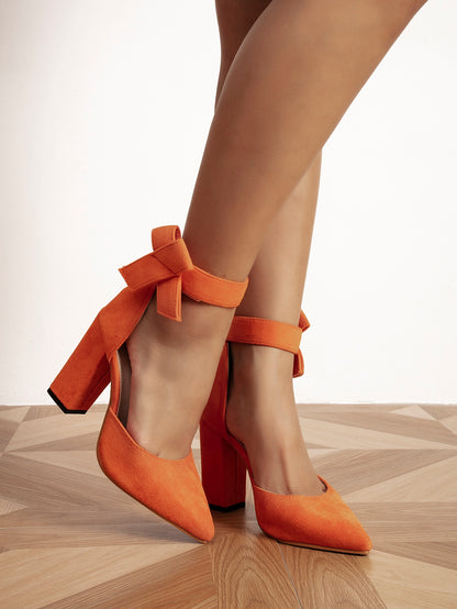 Bow Decor Point Toe Chunky Heeled Ankle Strap Pumps
