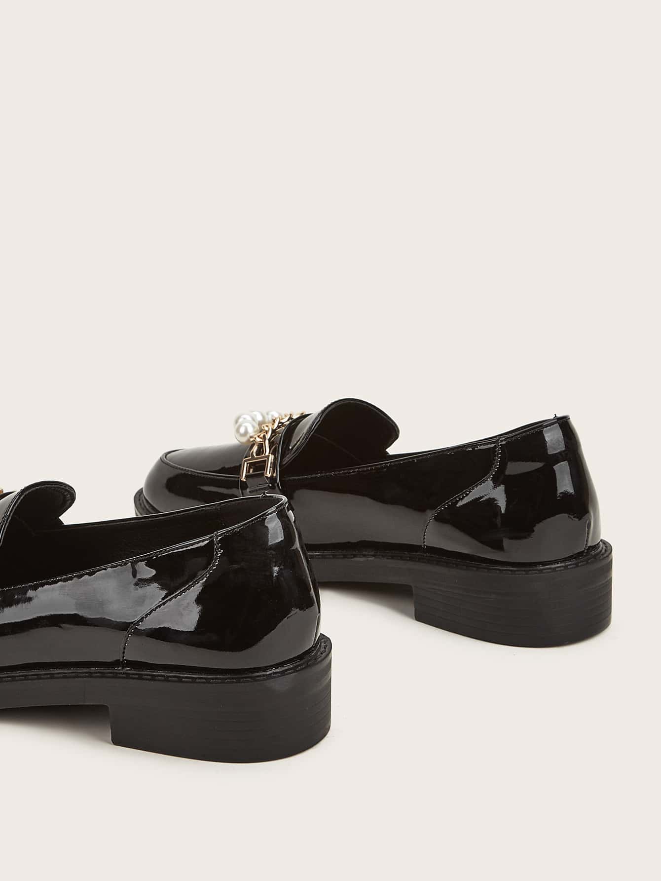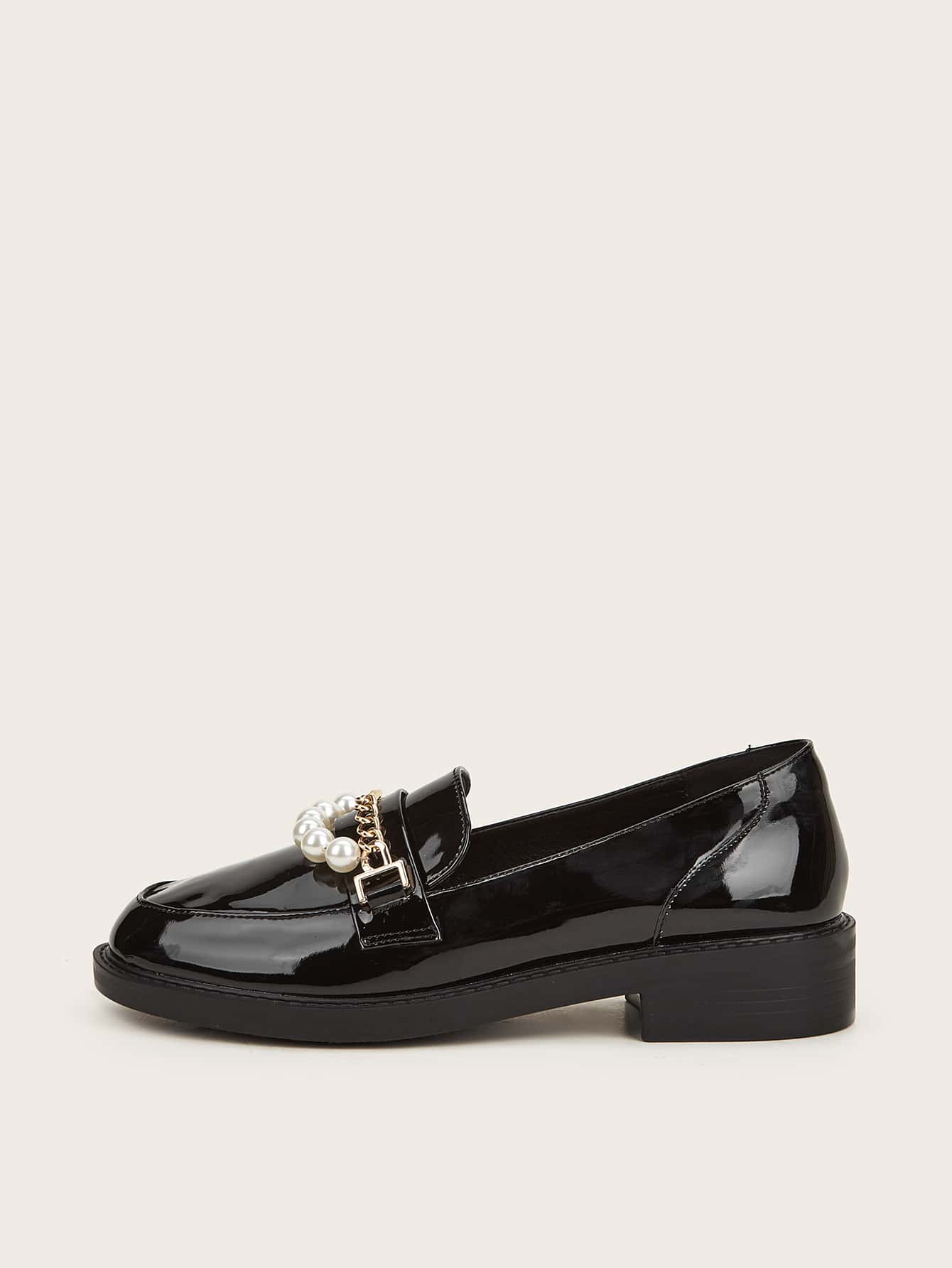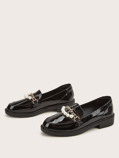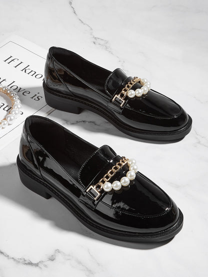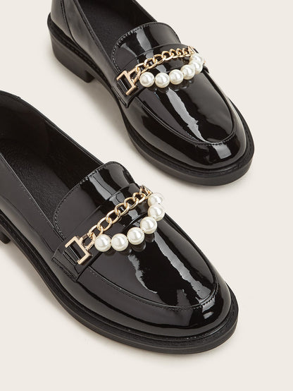 Chain & Faux Pearls Decor Loafers