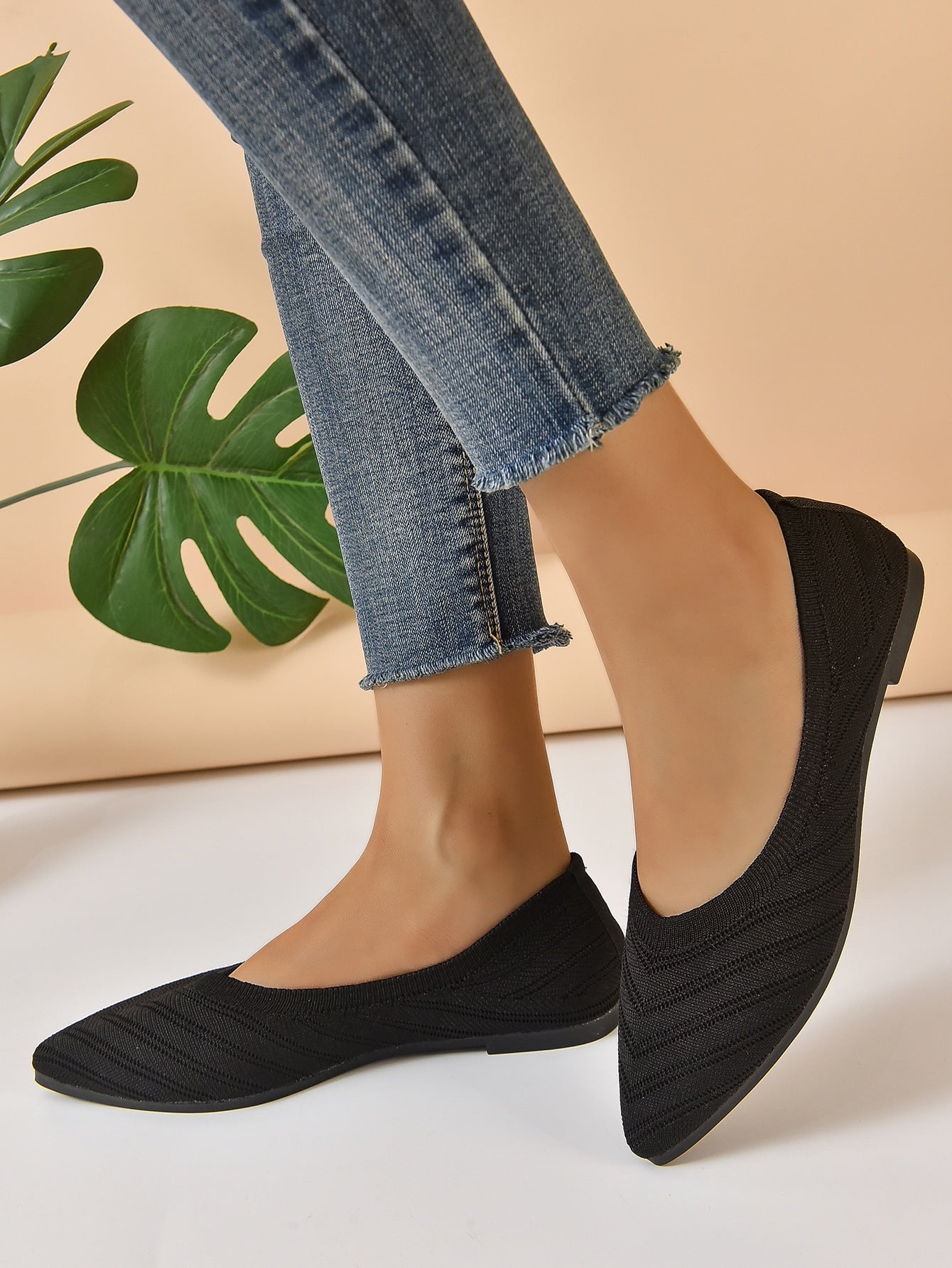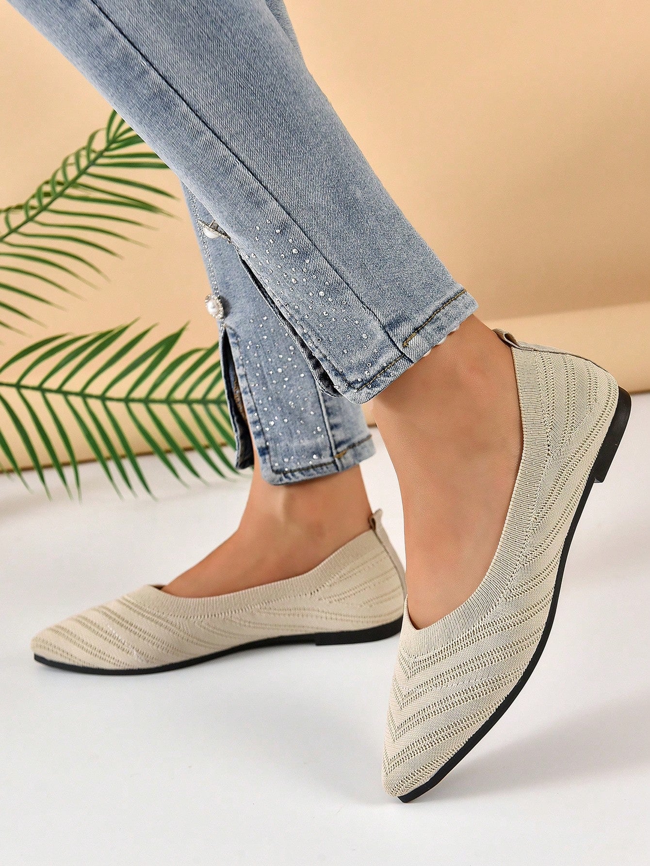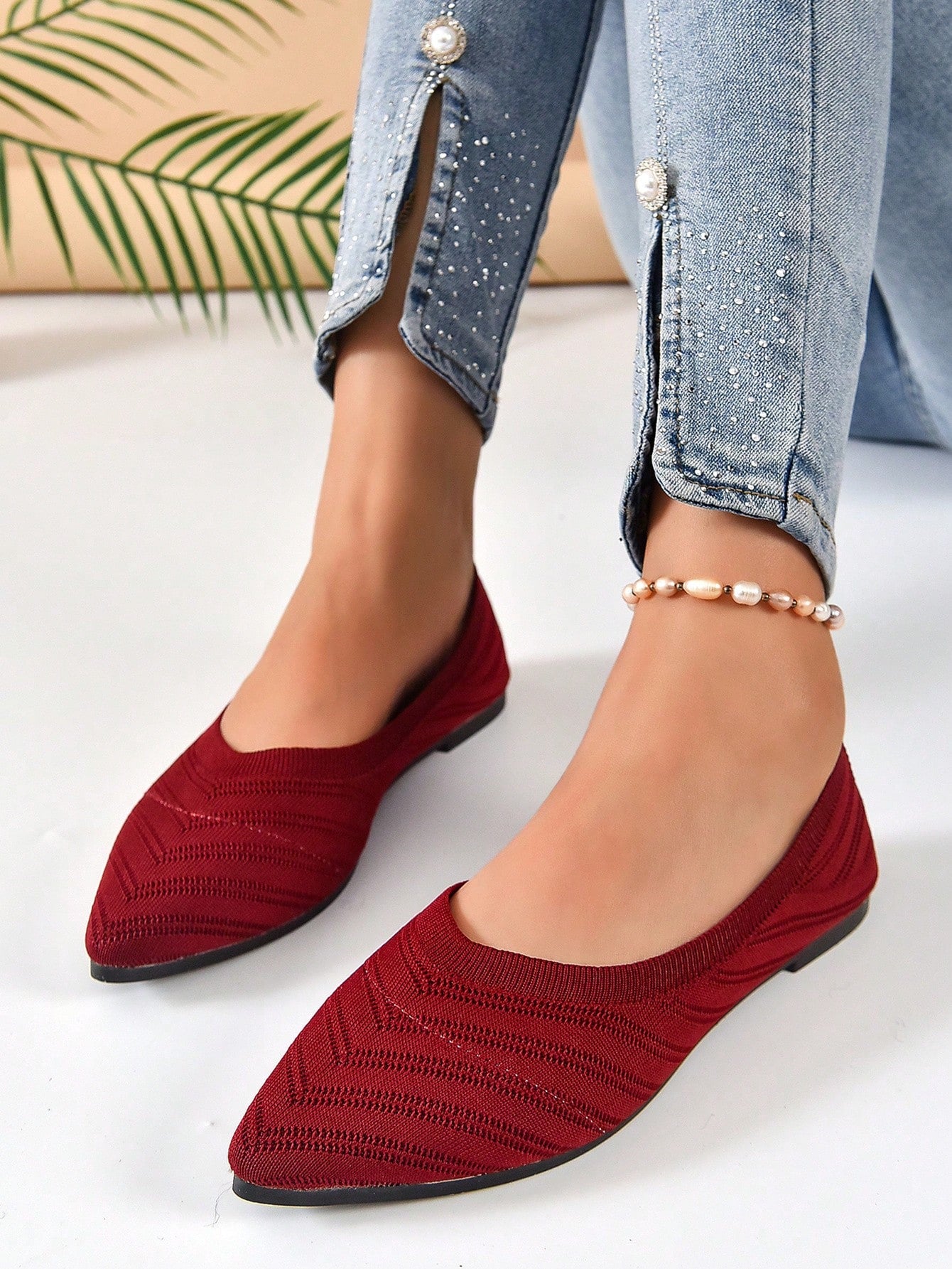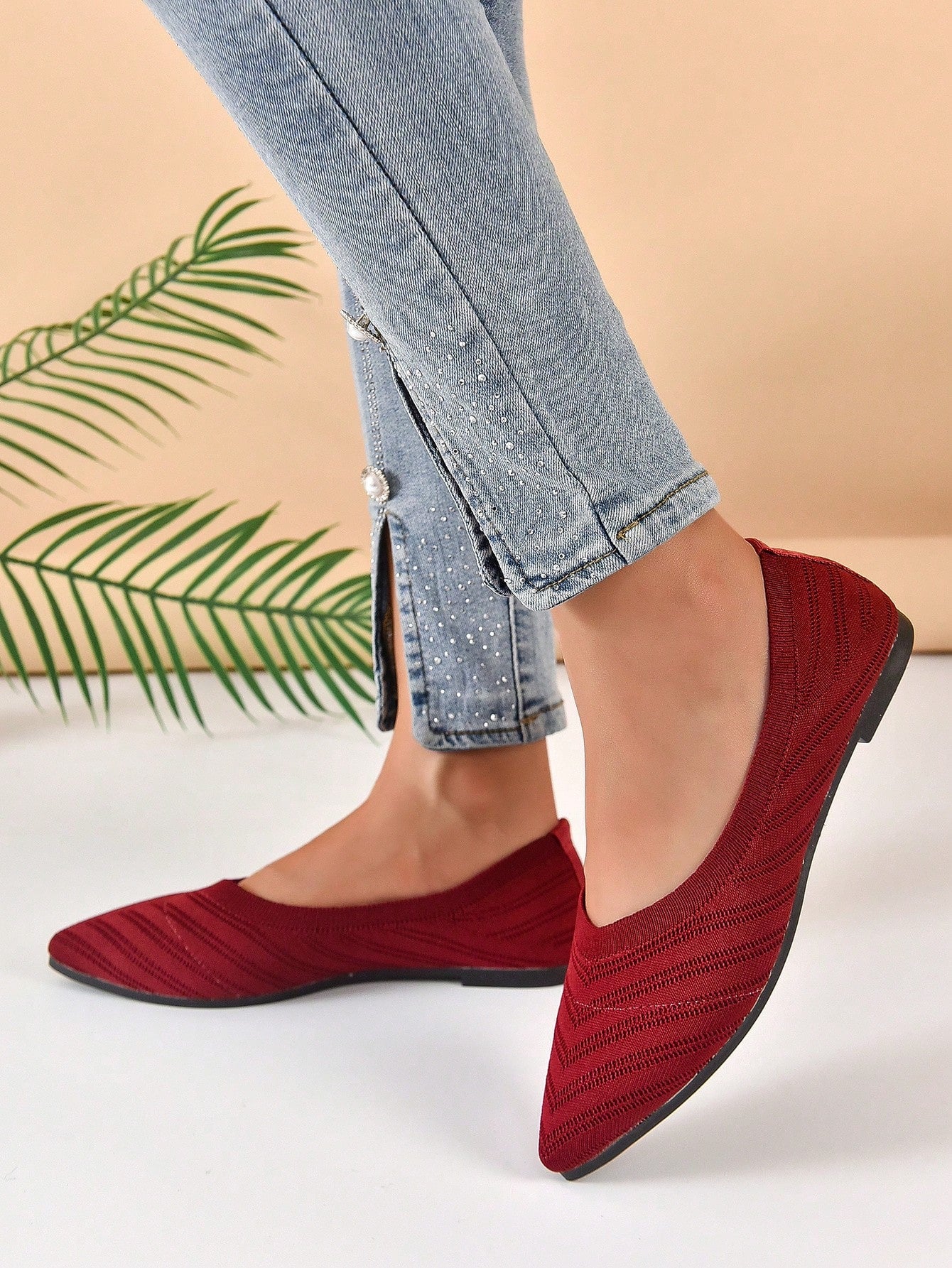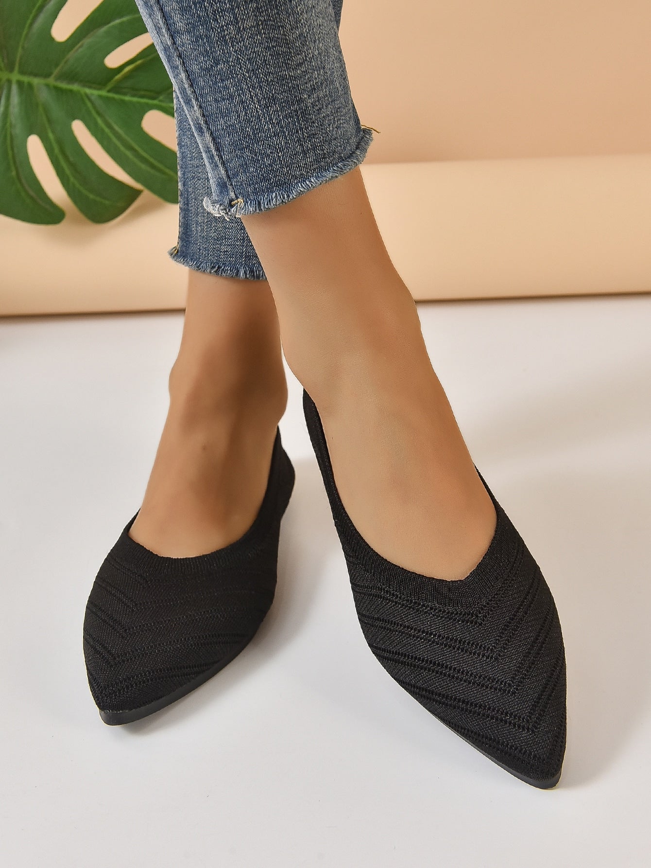 Chevron Pattern Point Toe Ballet Flats