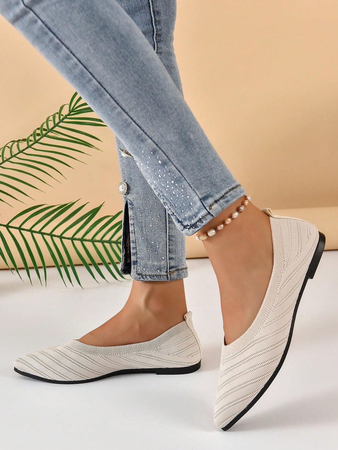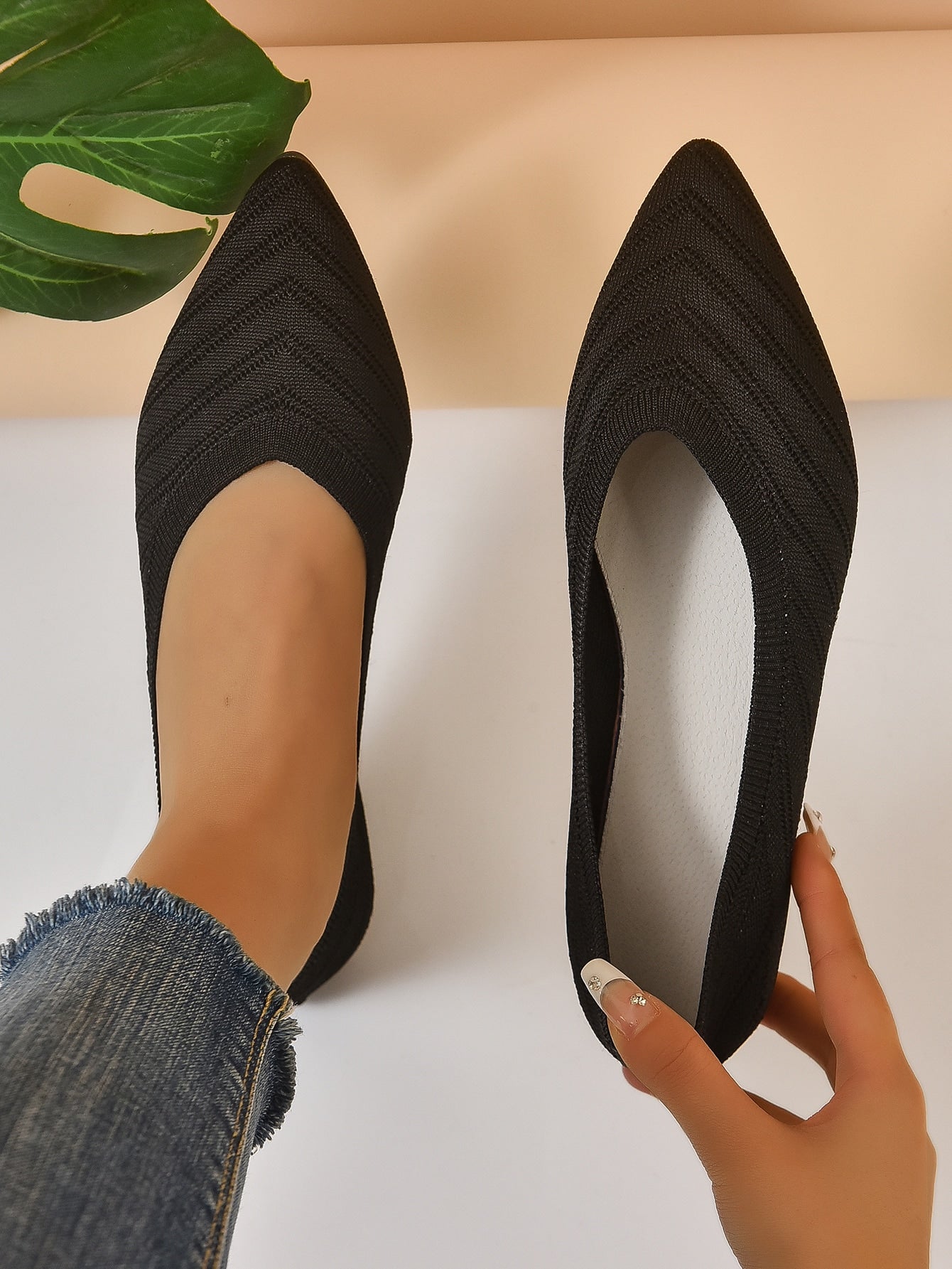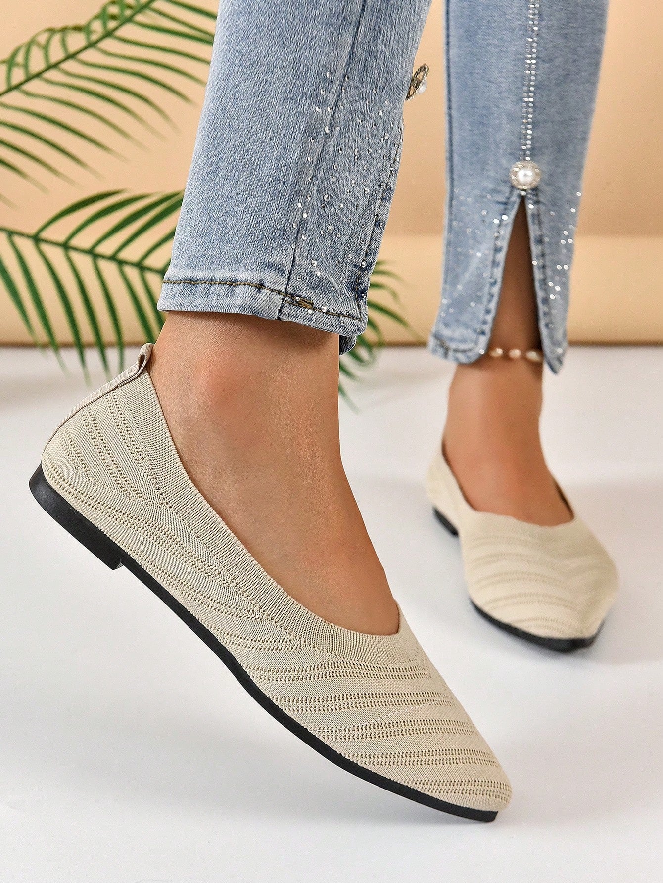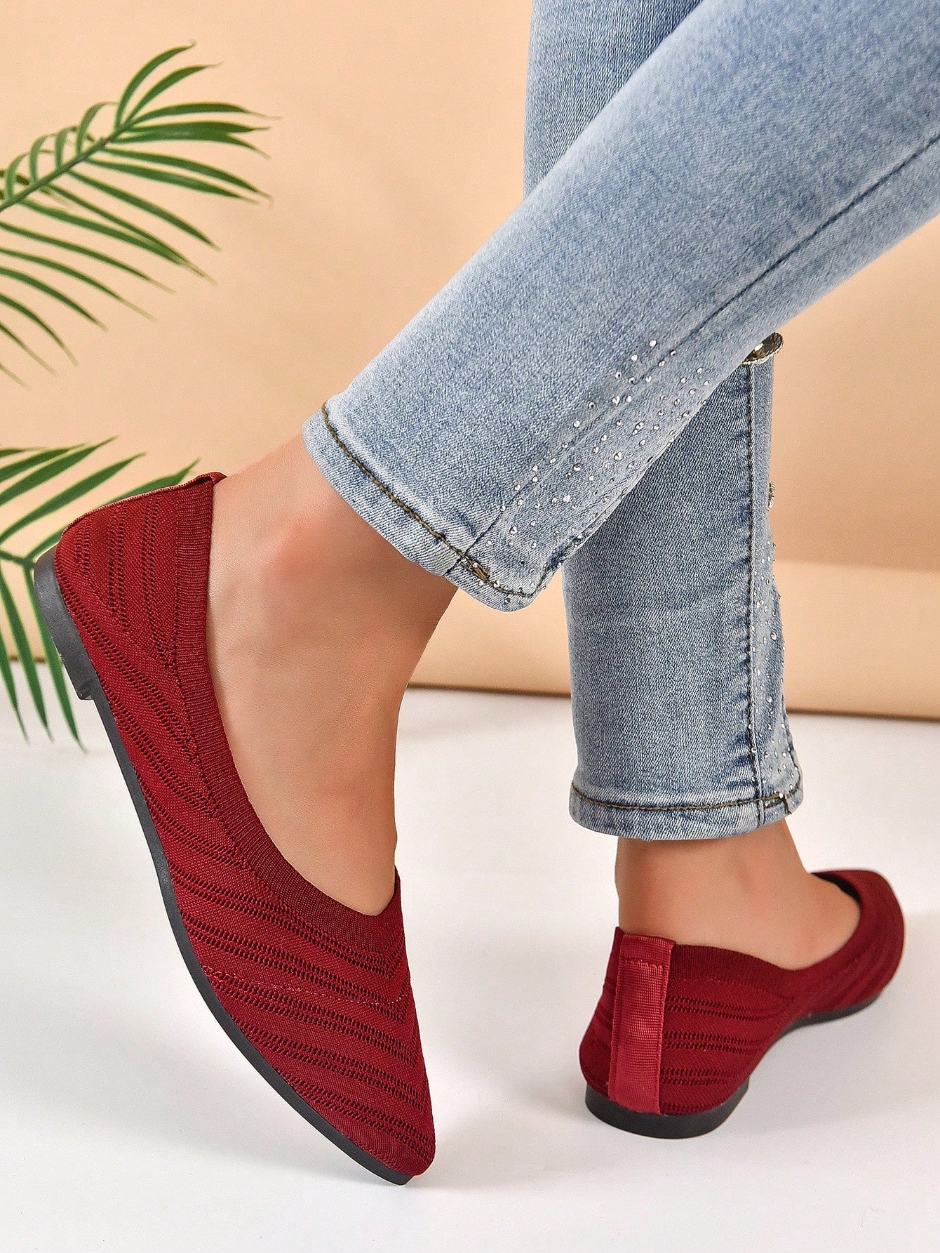 Chevron Pattern Point Toe Ballet Flats