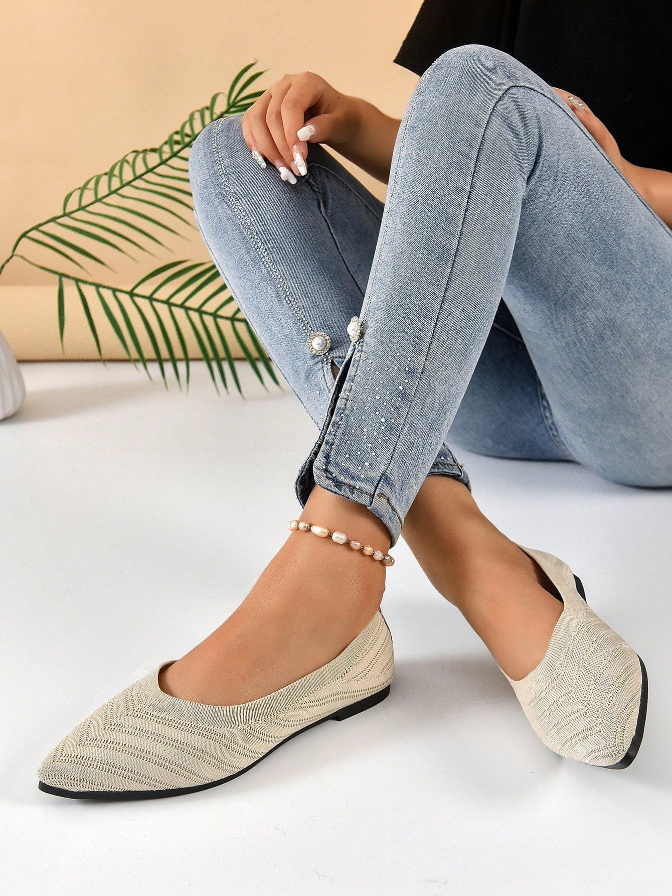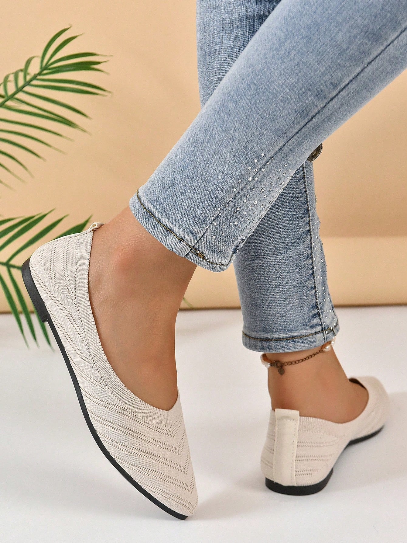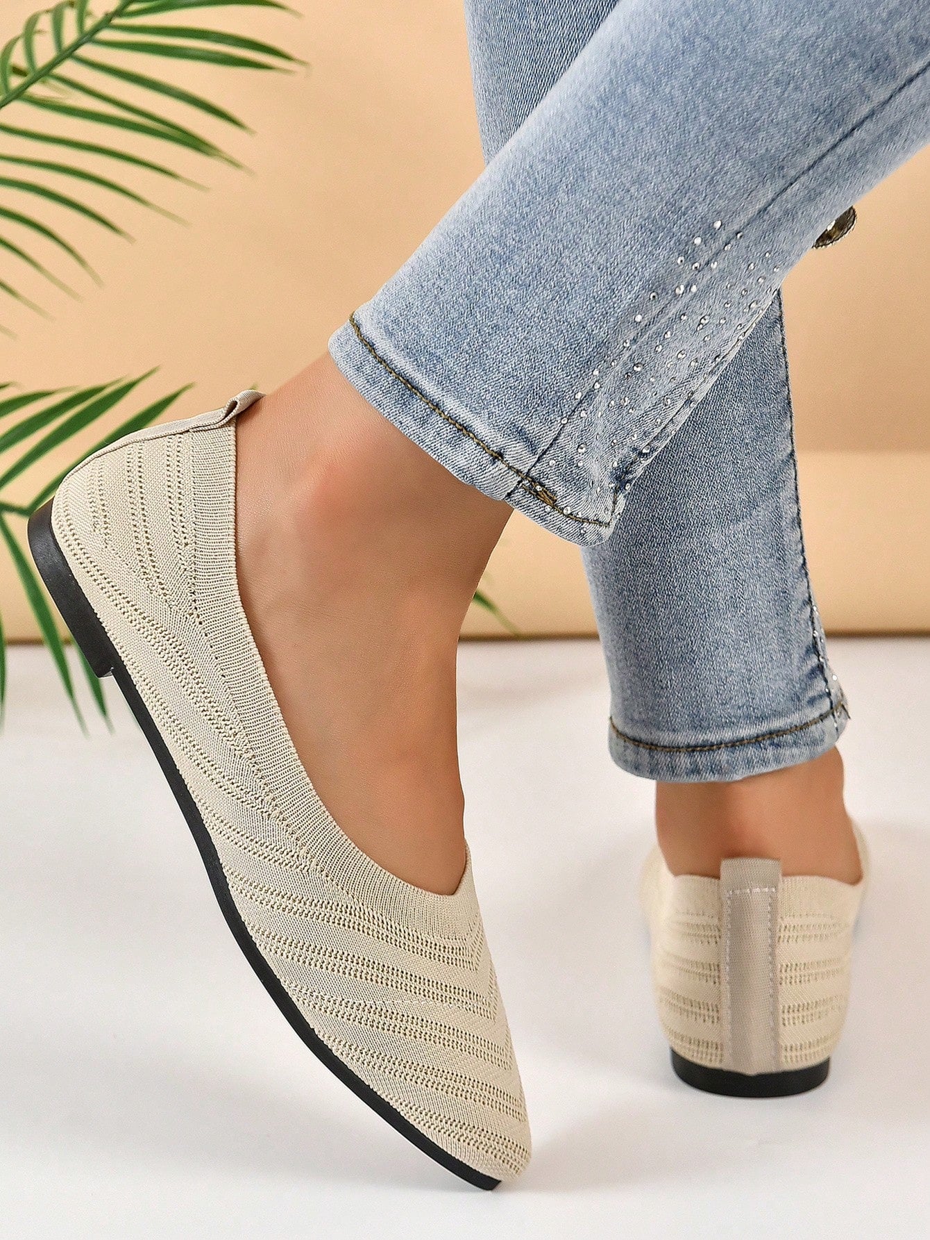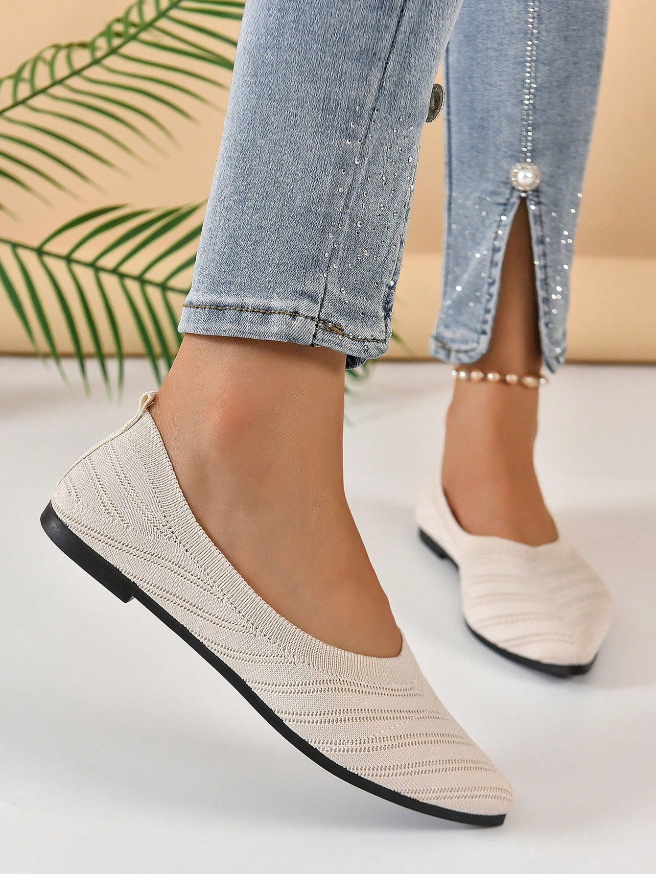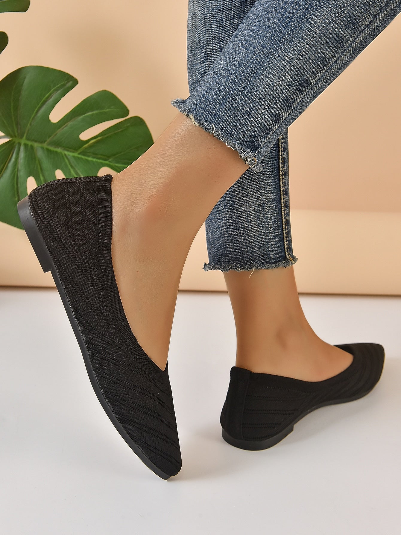 Chevron Pattern Point Toe Ballet Flats