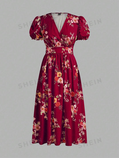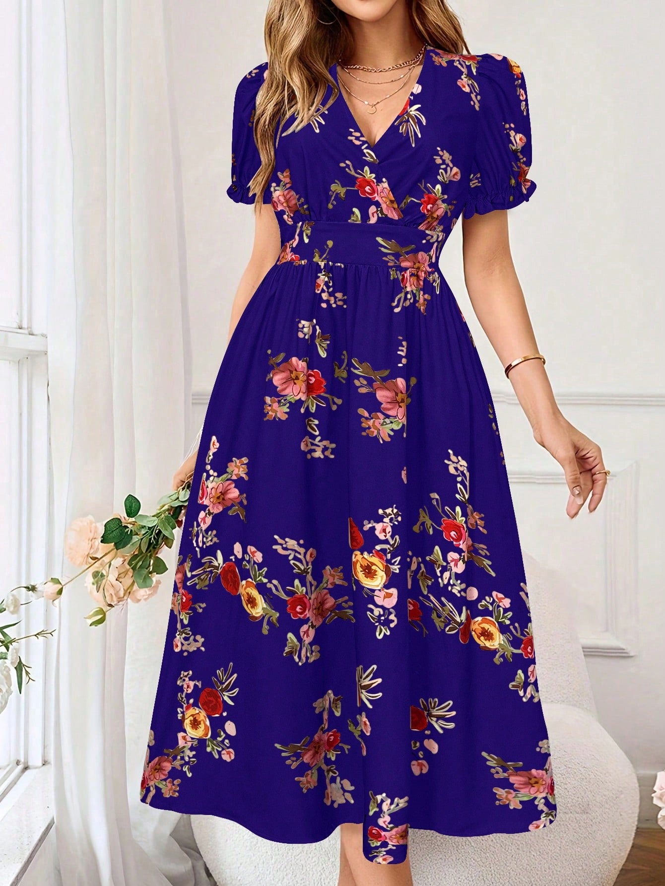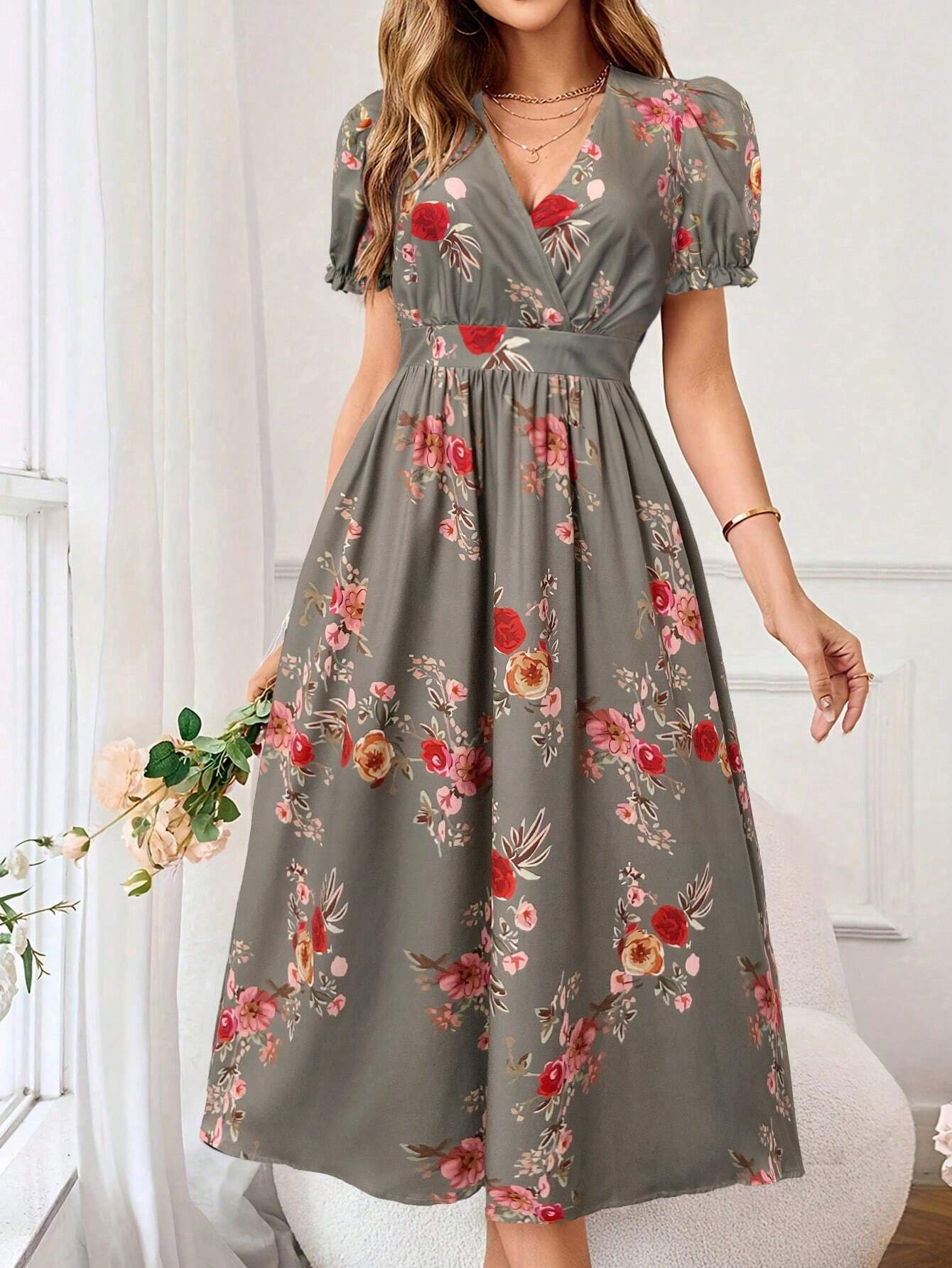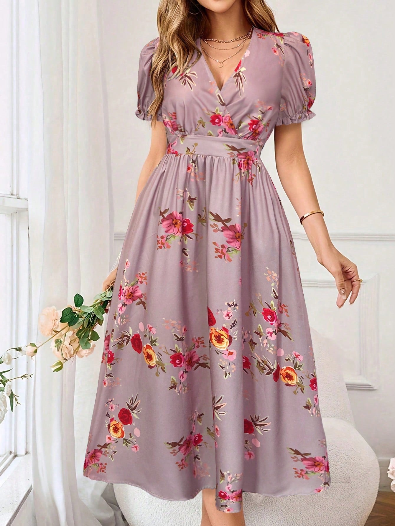 Clasi Floral Print Summer Wrap Dress With Criss-Cross Front And Cinched Waist