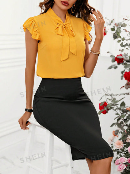 Clasi Women'S Tie Neck, Lace Sleeve Blouse And Skirt Set Summer Two Piece Outfits