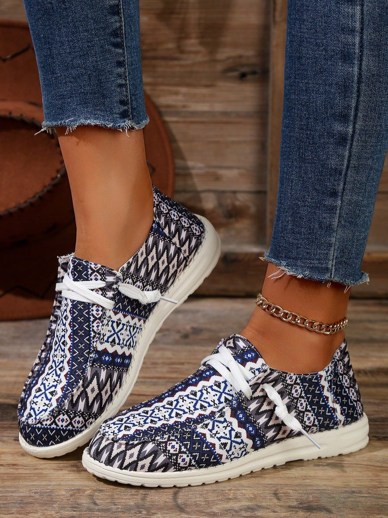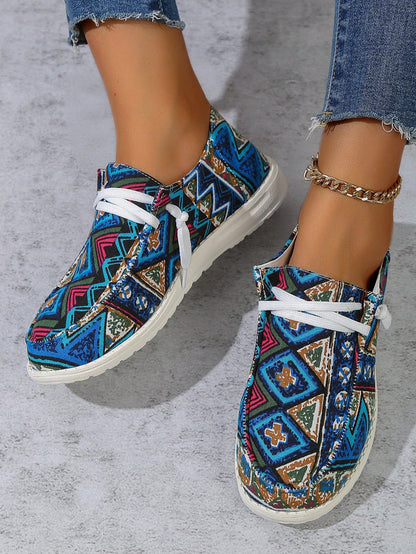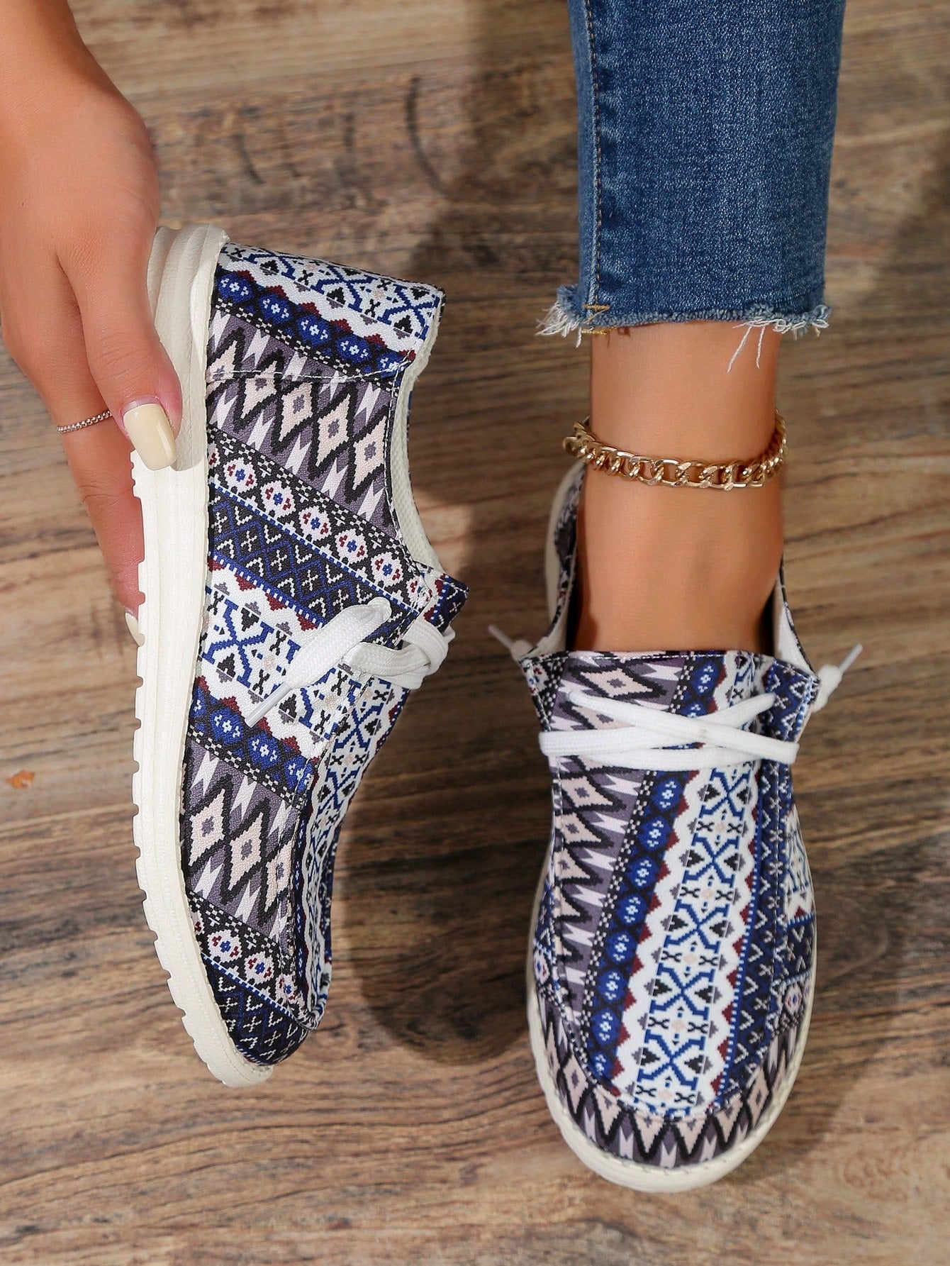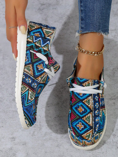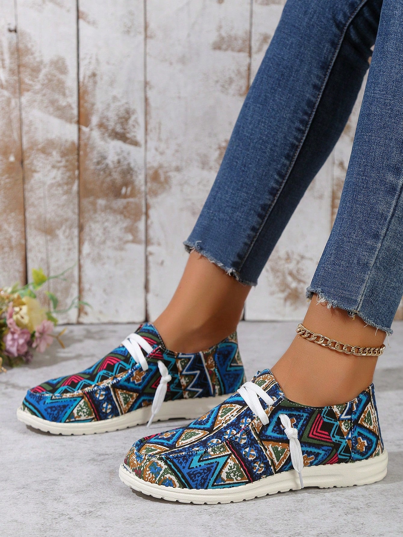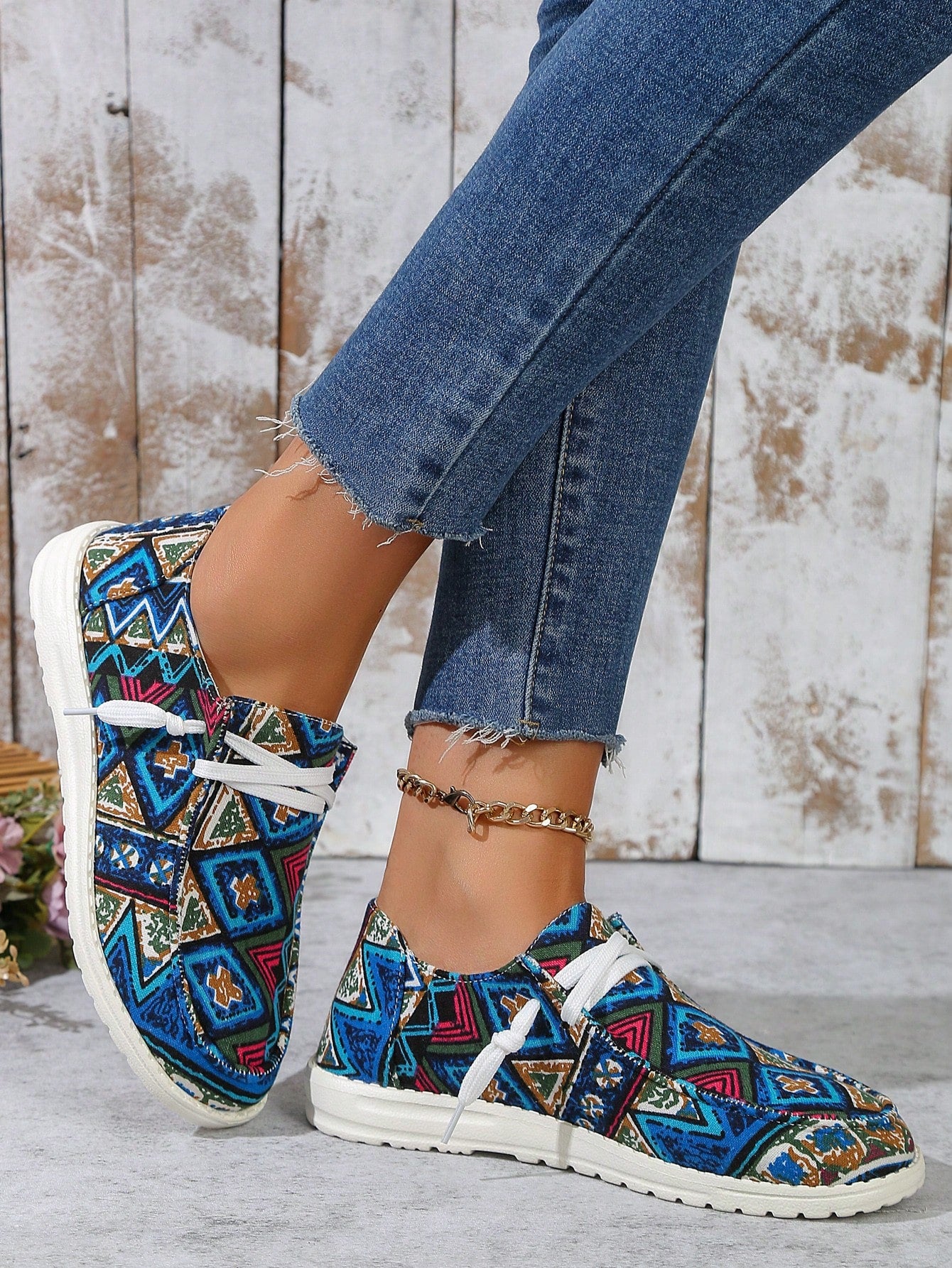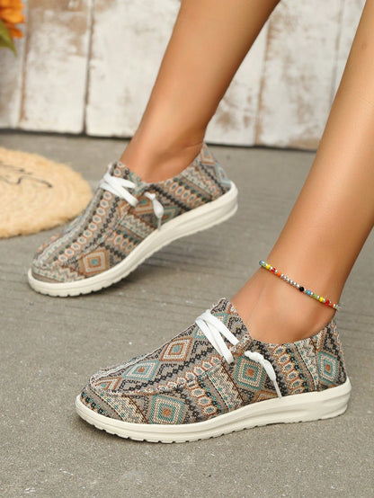 Colorblock Geometric Pattern Lace-up Front Sneaker