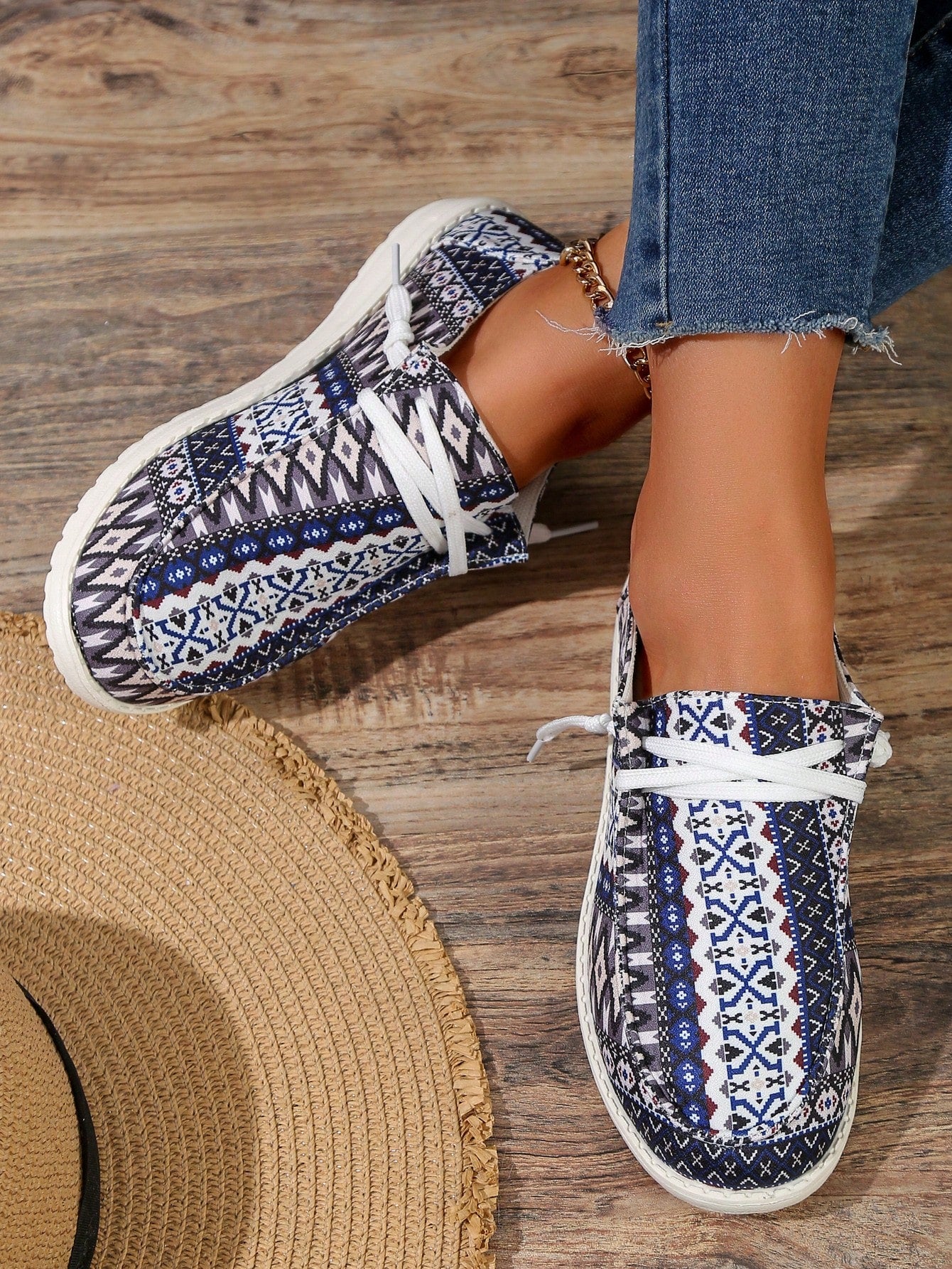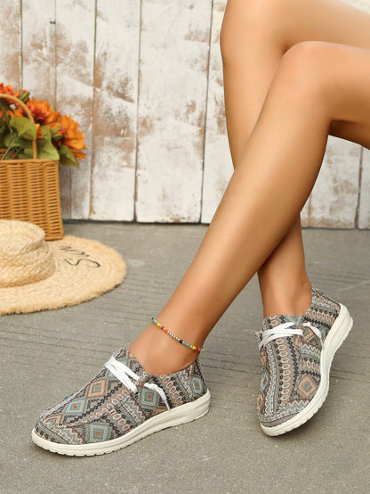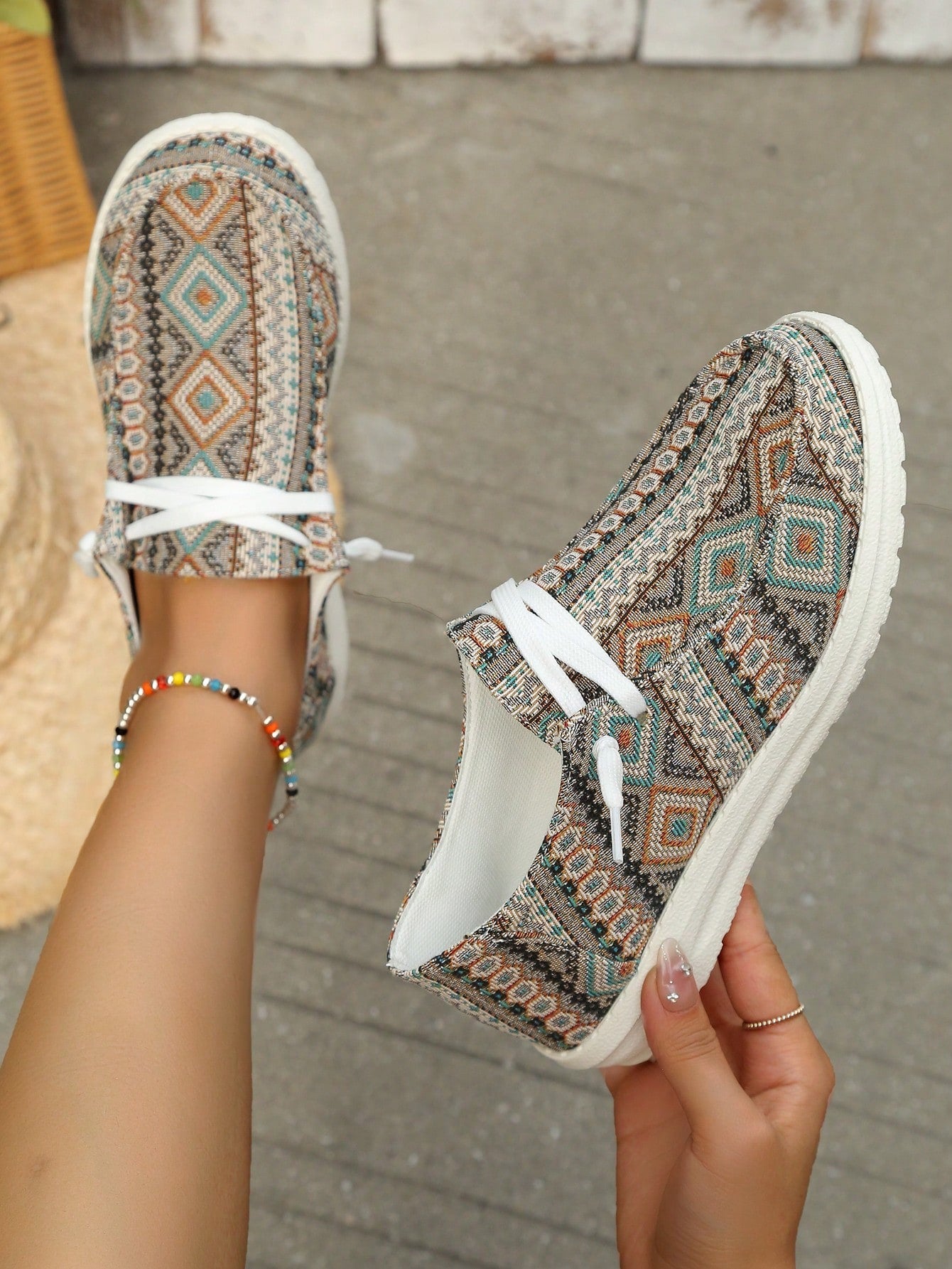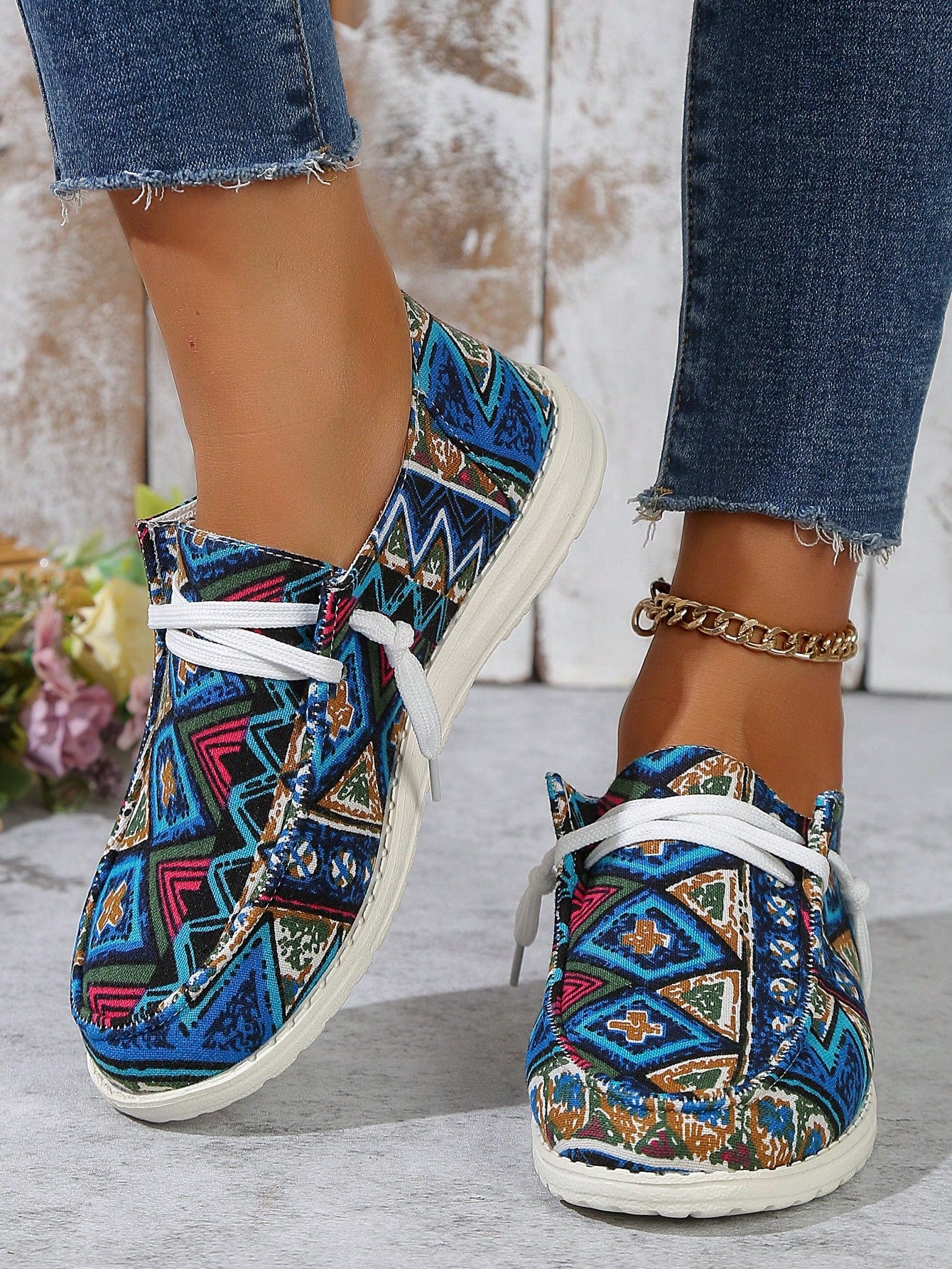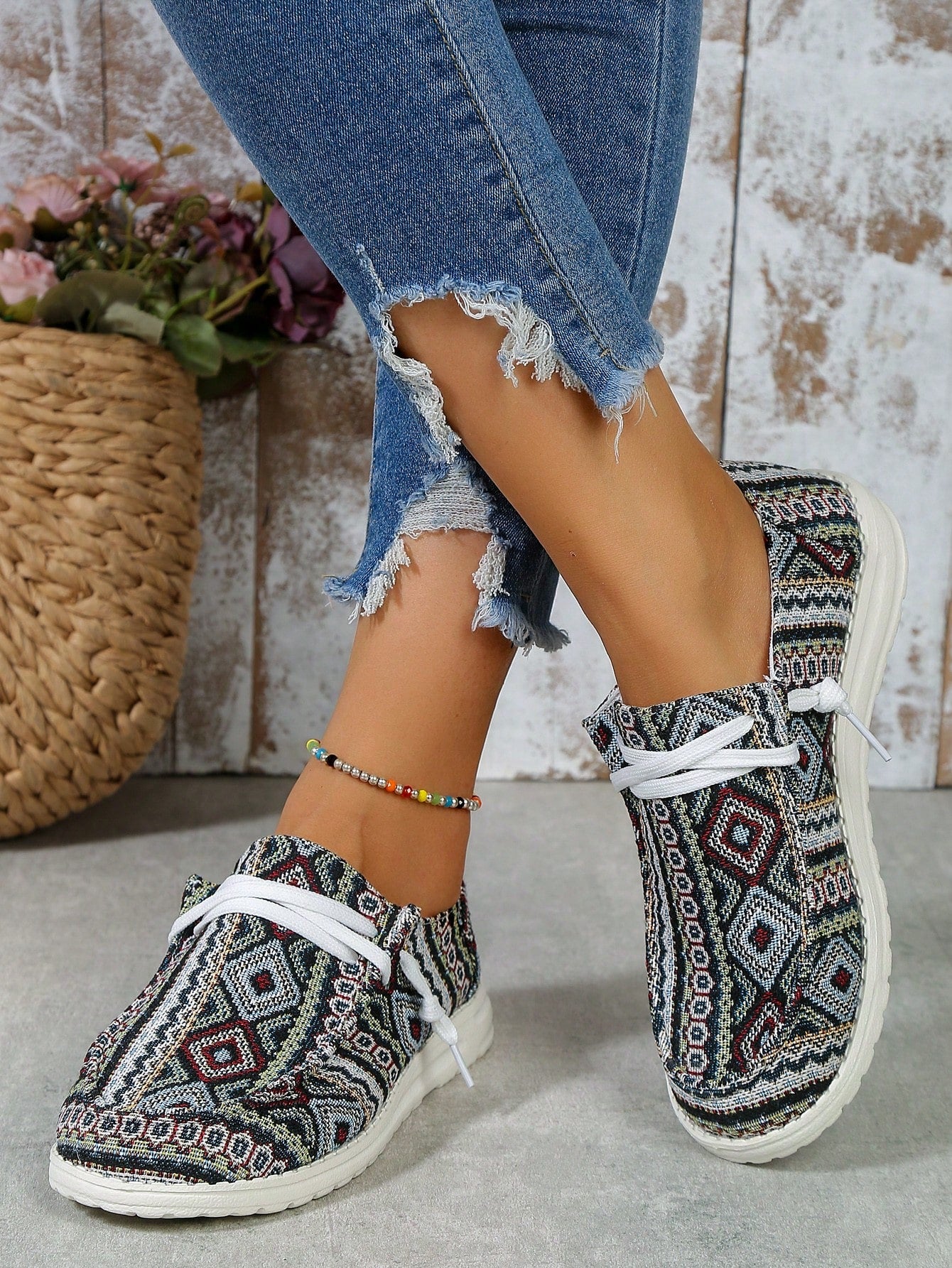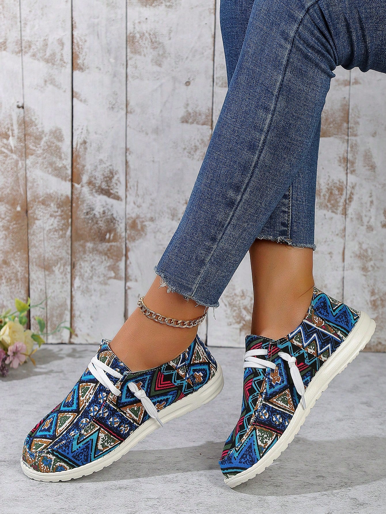 Colorblock Geometric Pattern Lace-up Front Sneaker