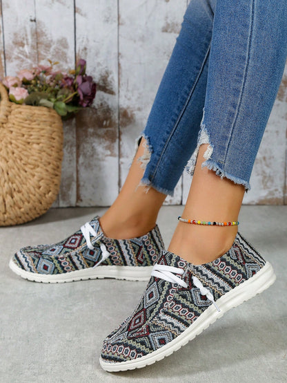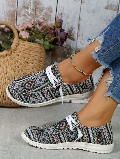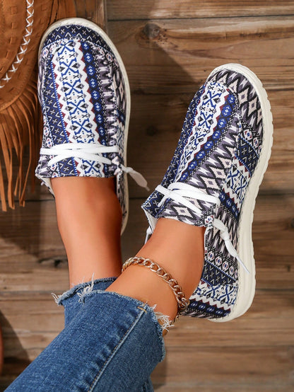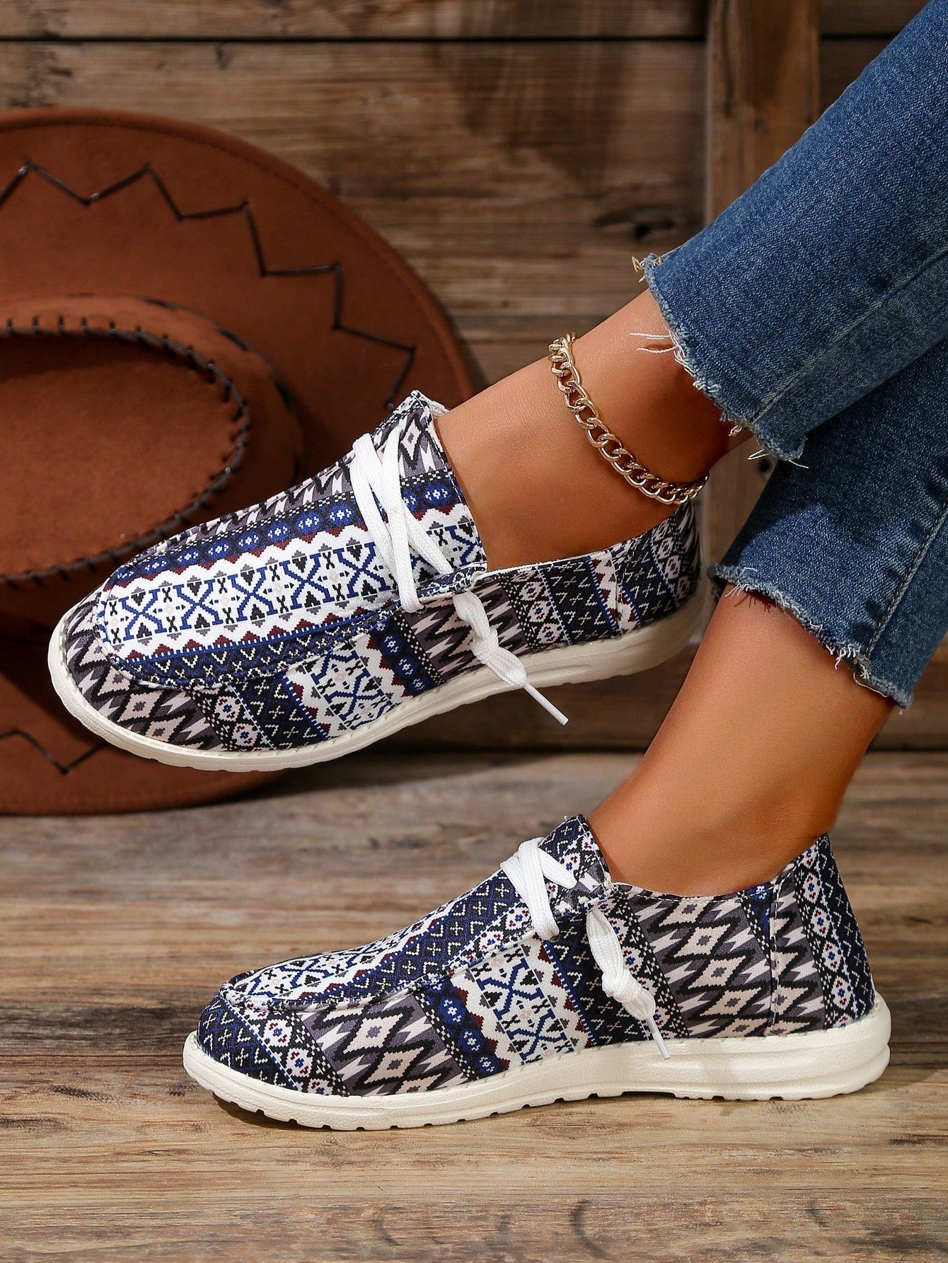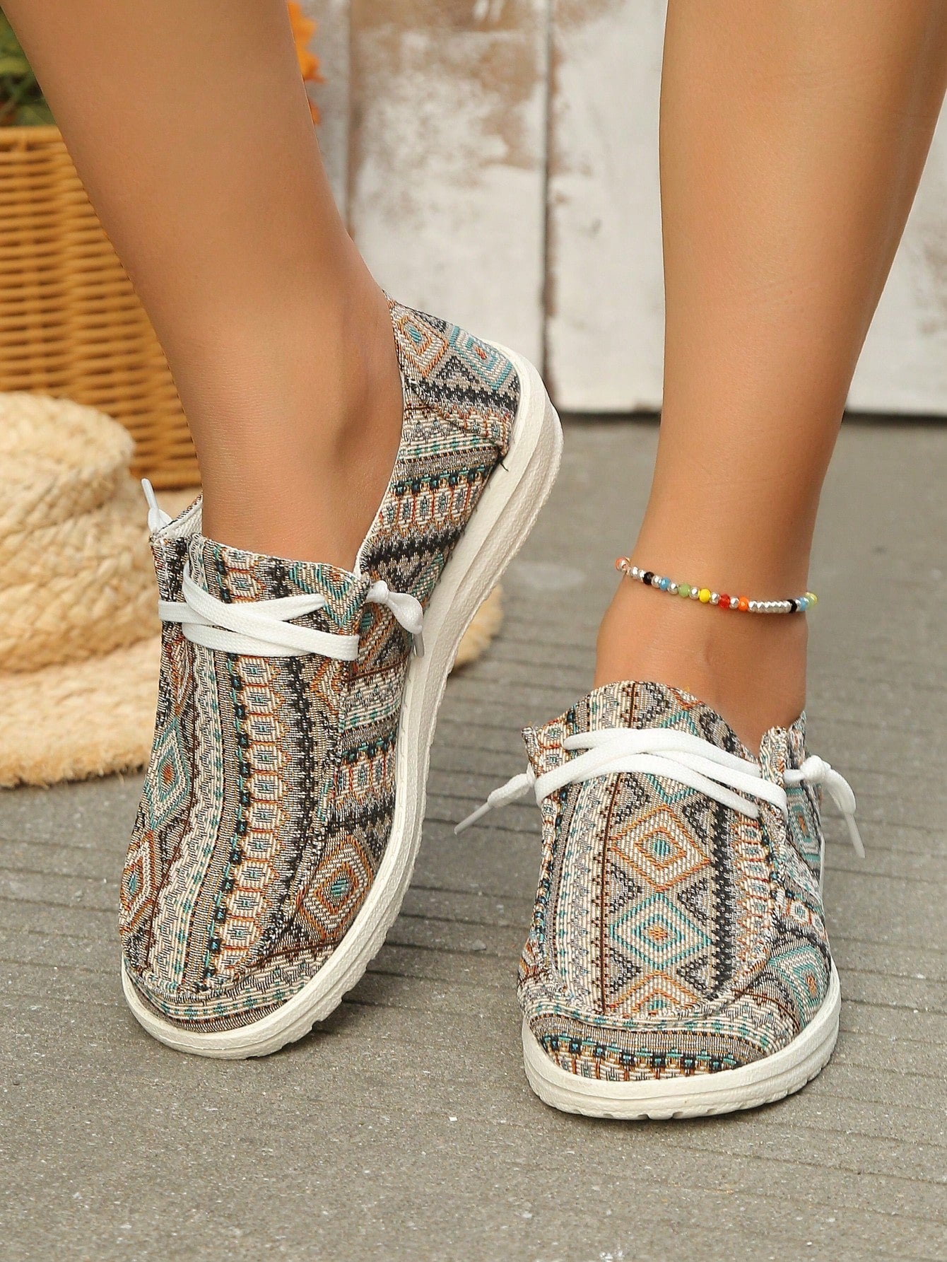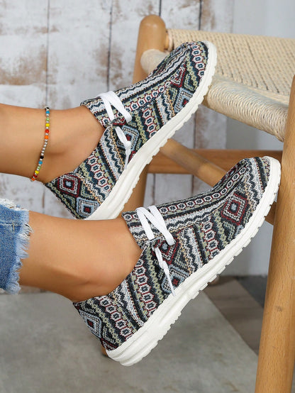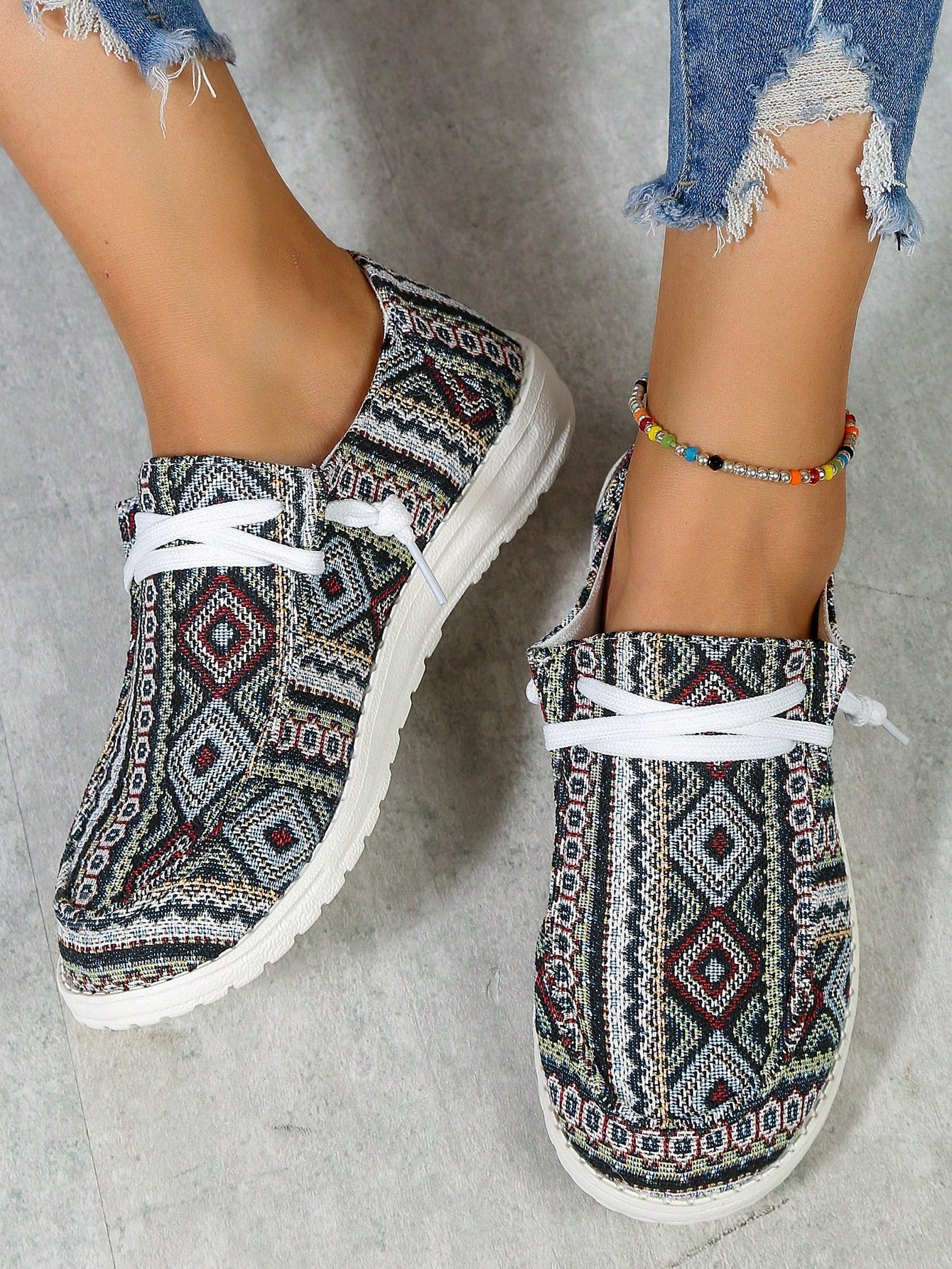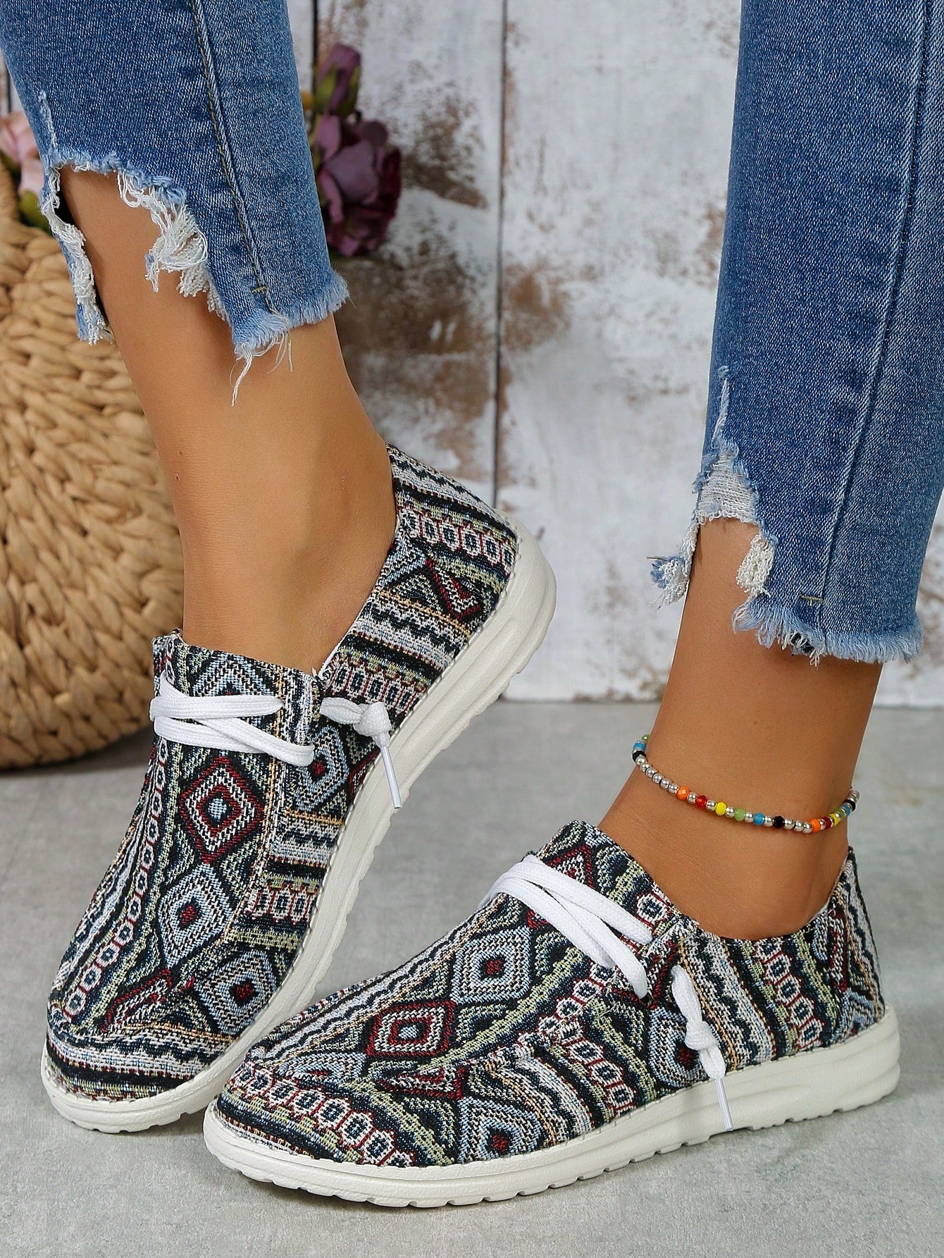 Colorblock Geometric Pattern Lace-up Front Sneaker