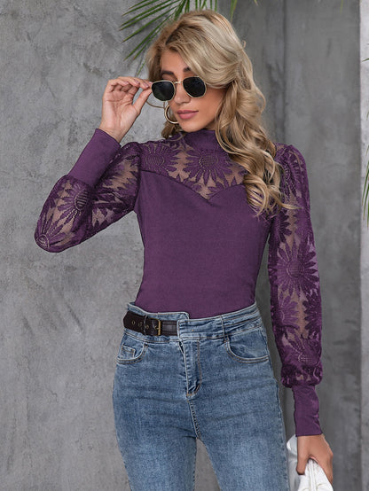Contrast Lace Mock Neck Top