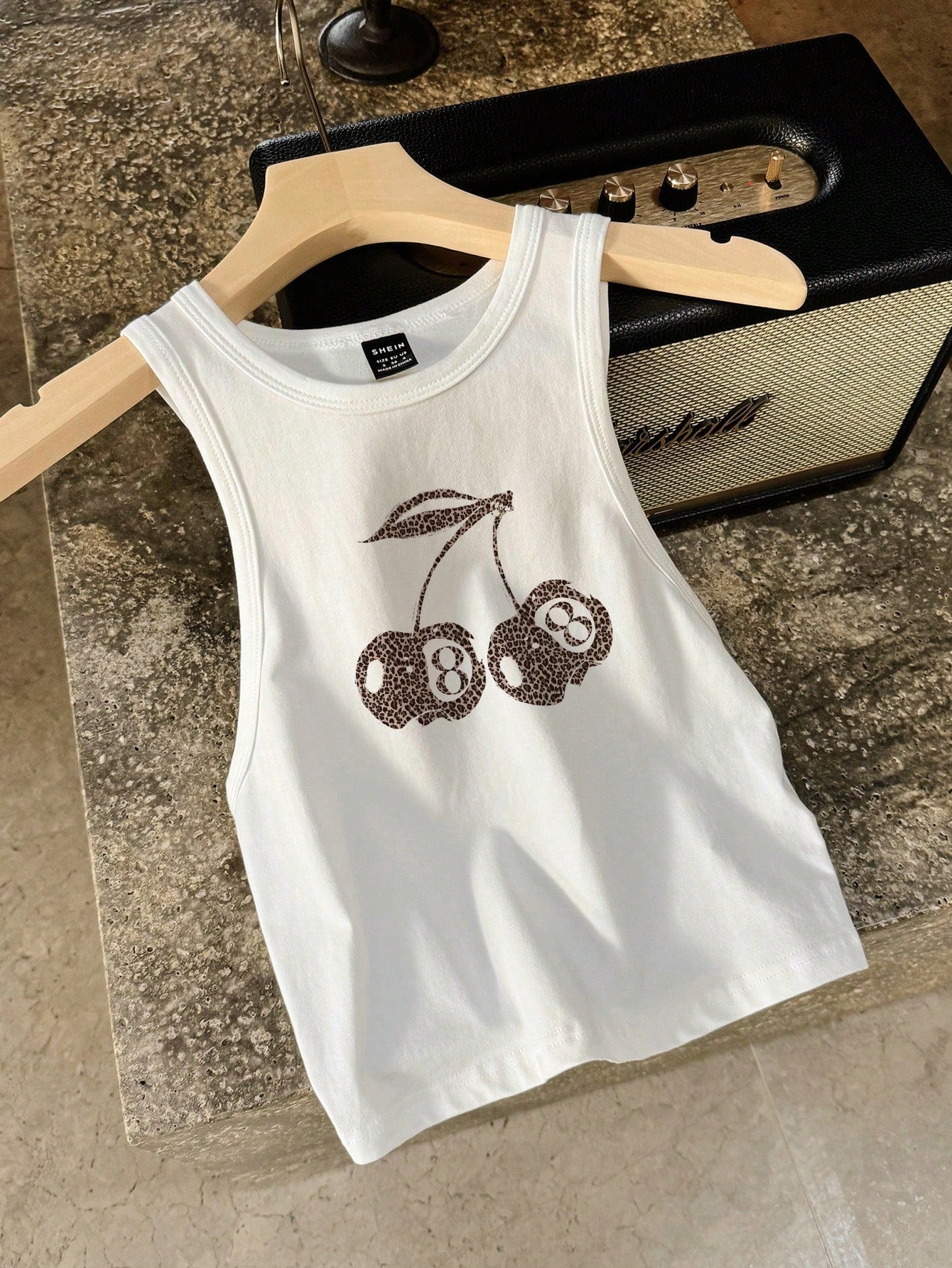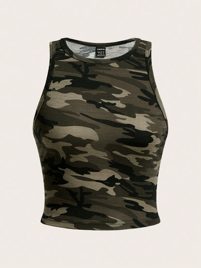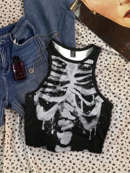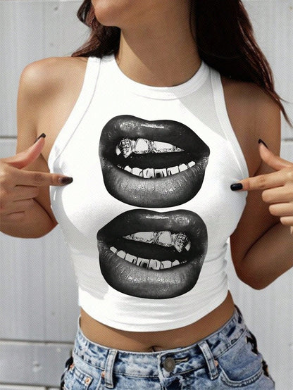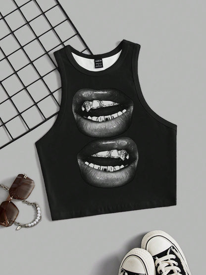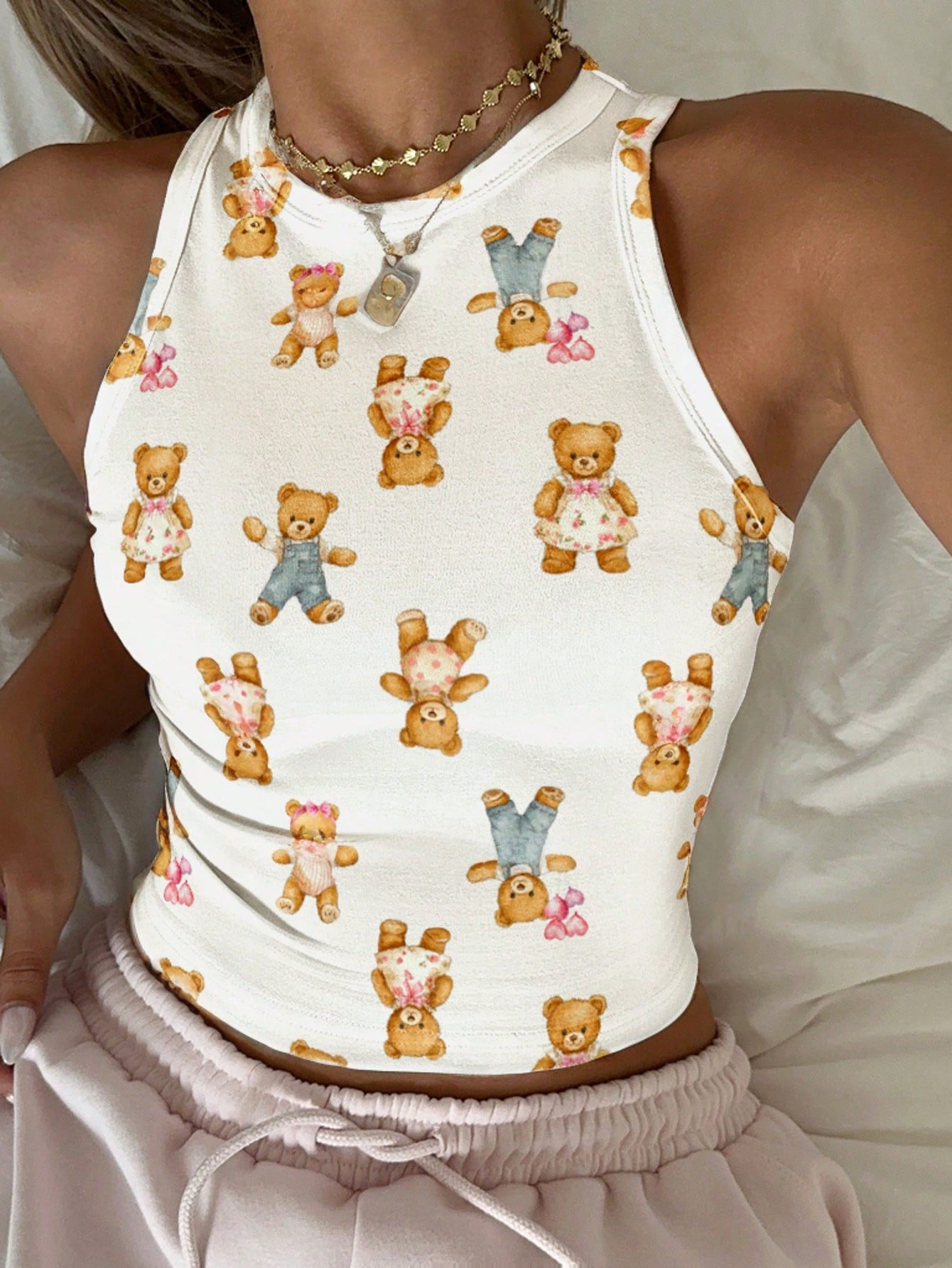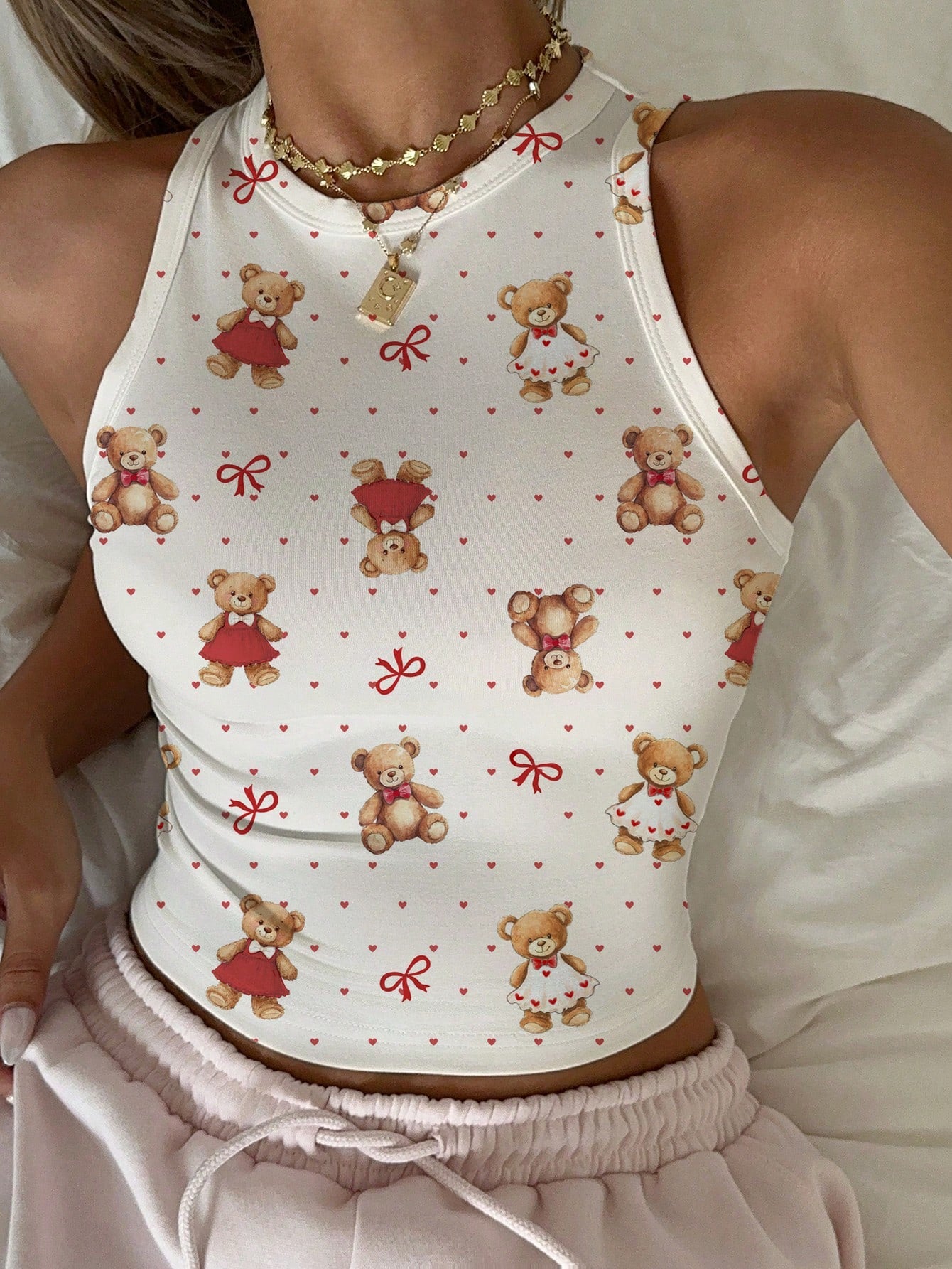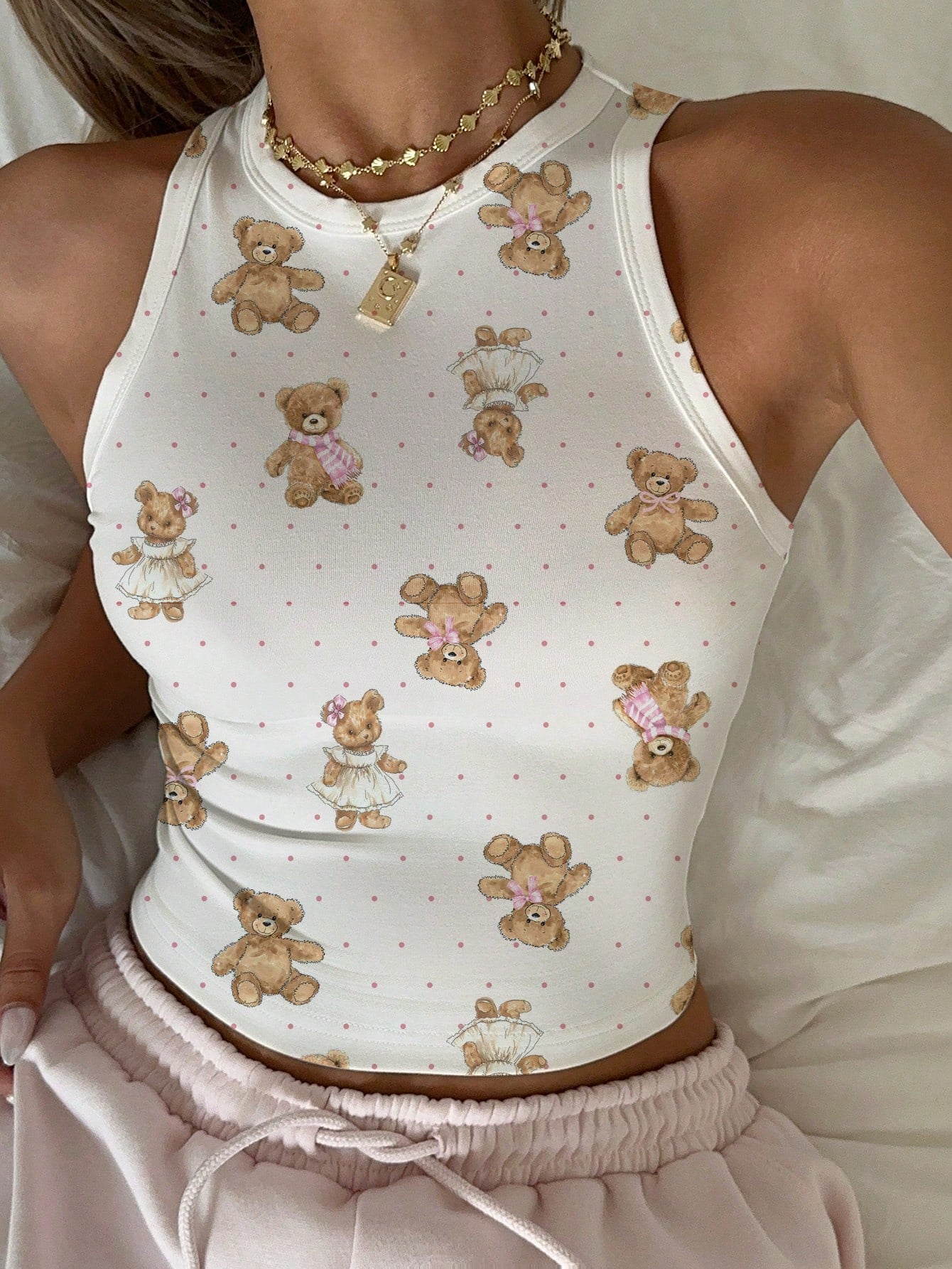 CovetEZ Casual Simple Cartoon Polka Dot Bear Print Round Neck Slim Fit Women Camisole