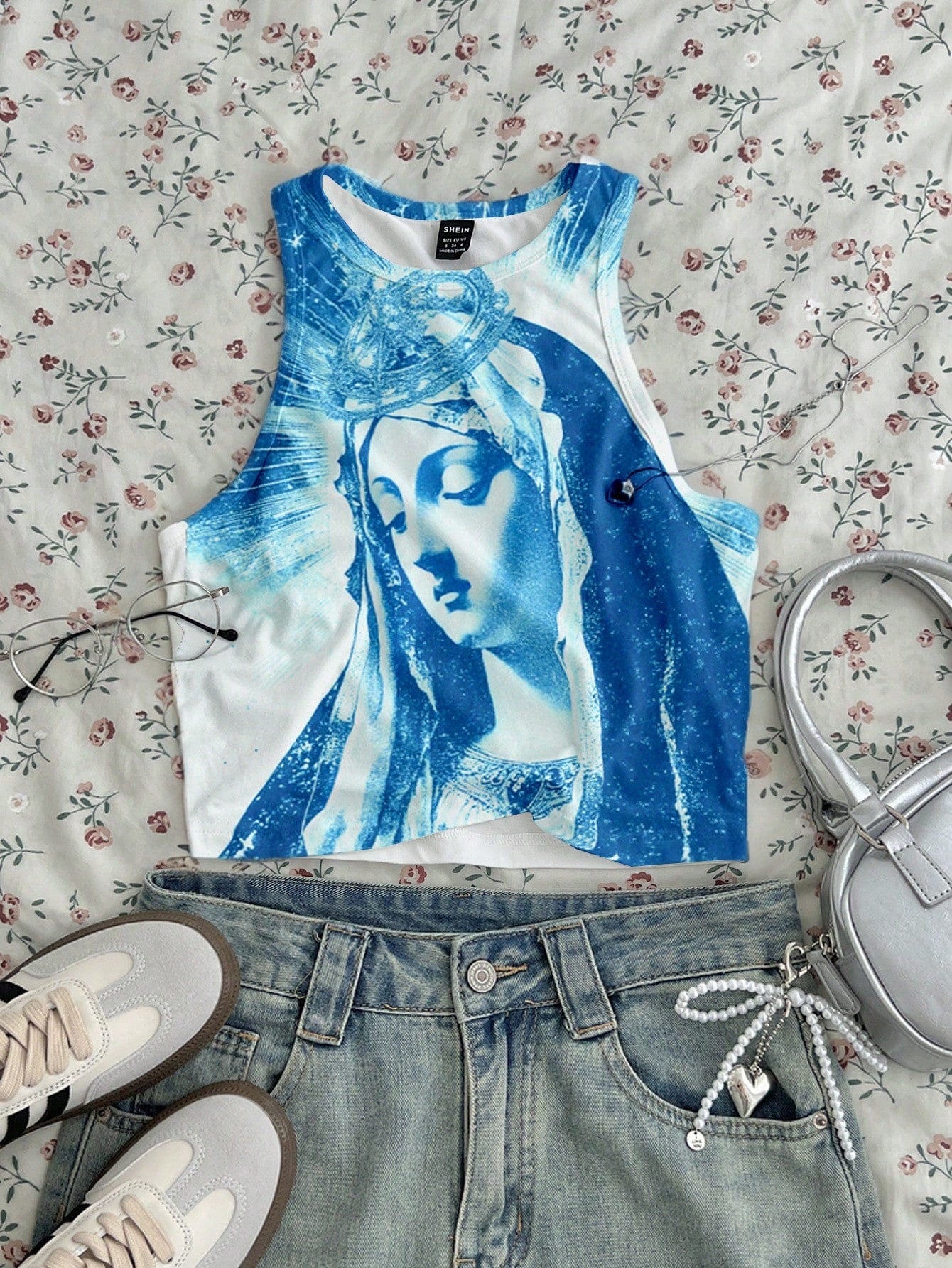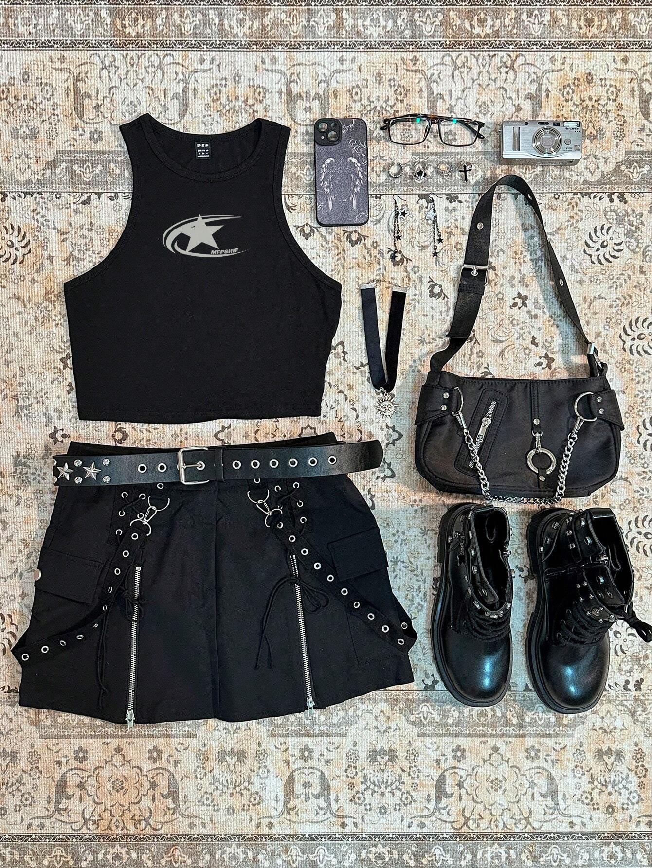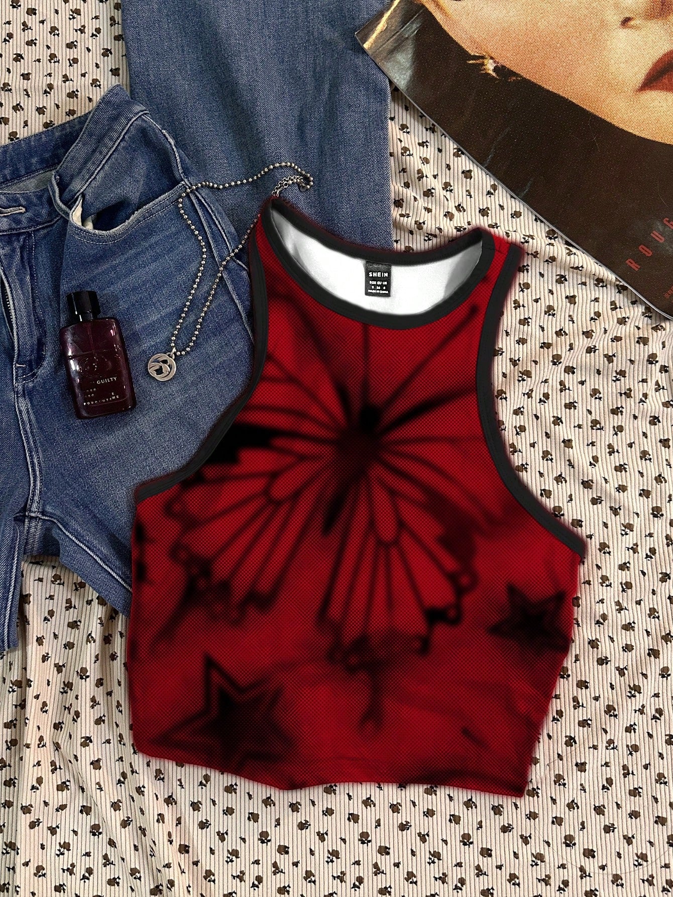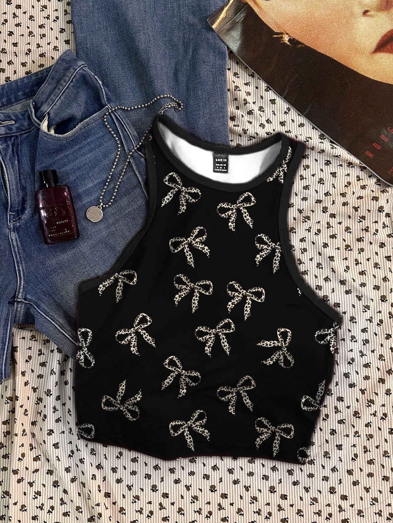 CovetEZ Casual Simple Cartoon Polka Dot Bear Print Round Neck Slim Fit Women Camisole