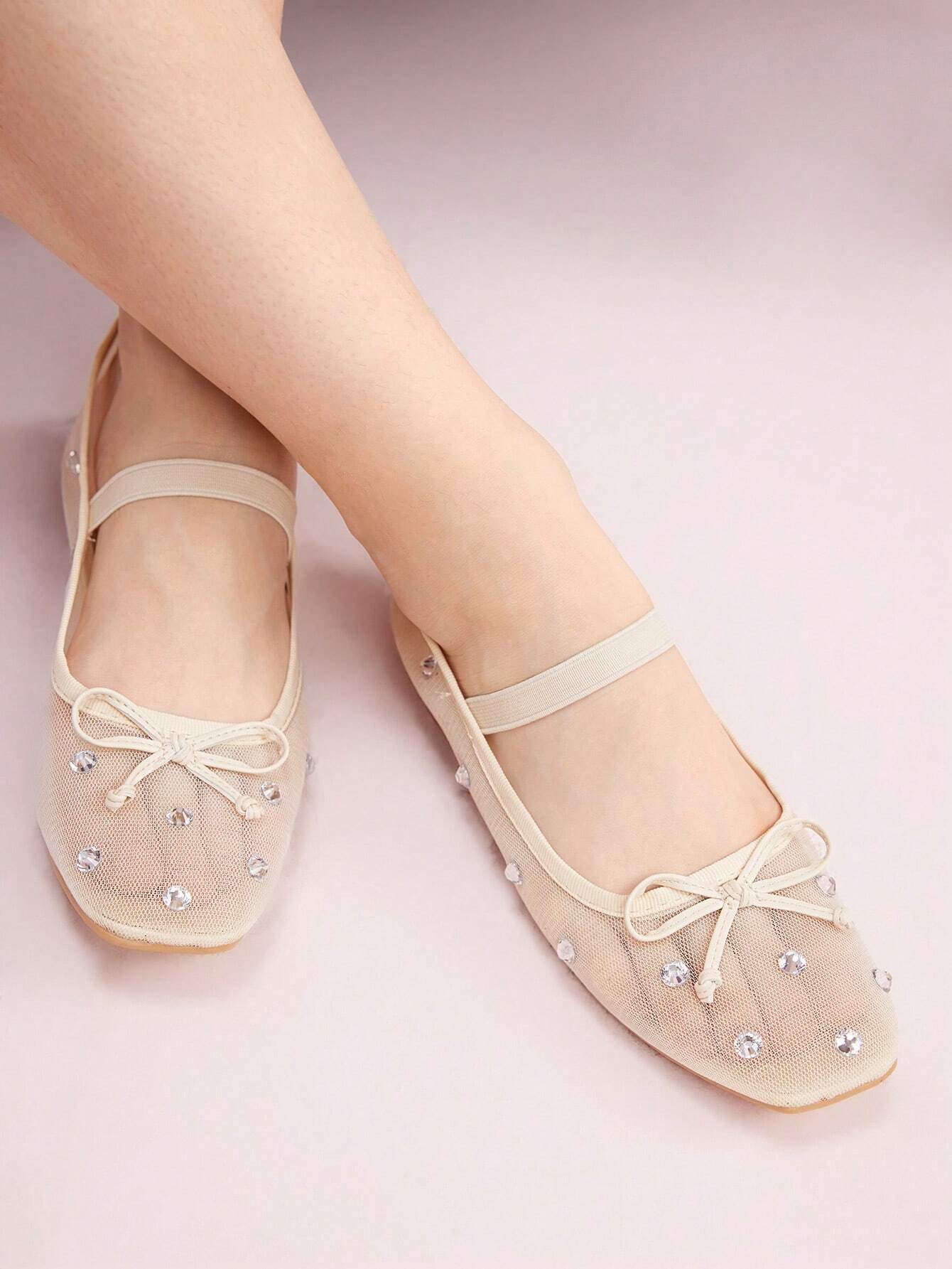 CUCCOO DOLLMOD Burgundy Mesh Rhinestone Bow Ballerina Flats Halloween Christmas Fall