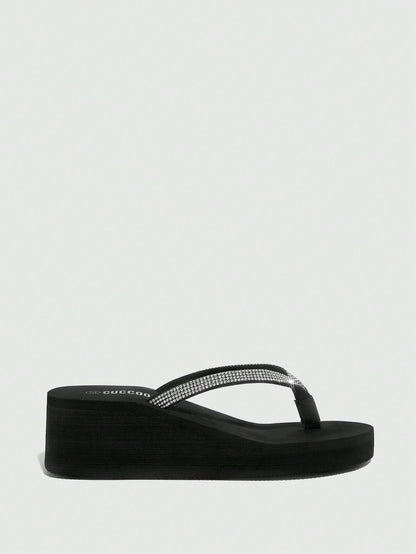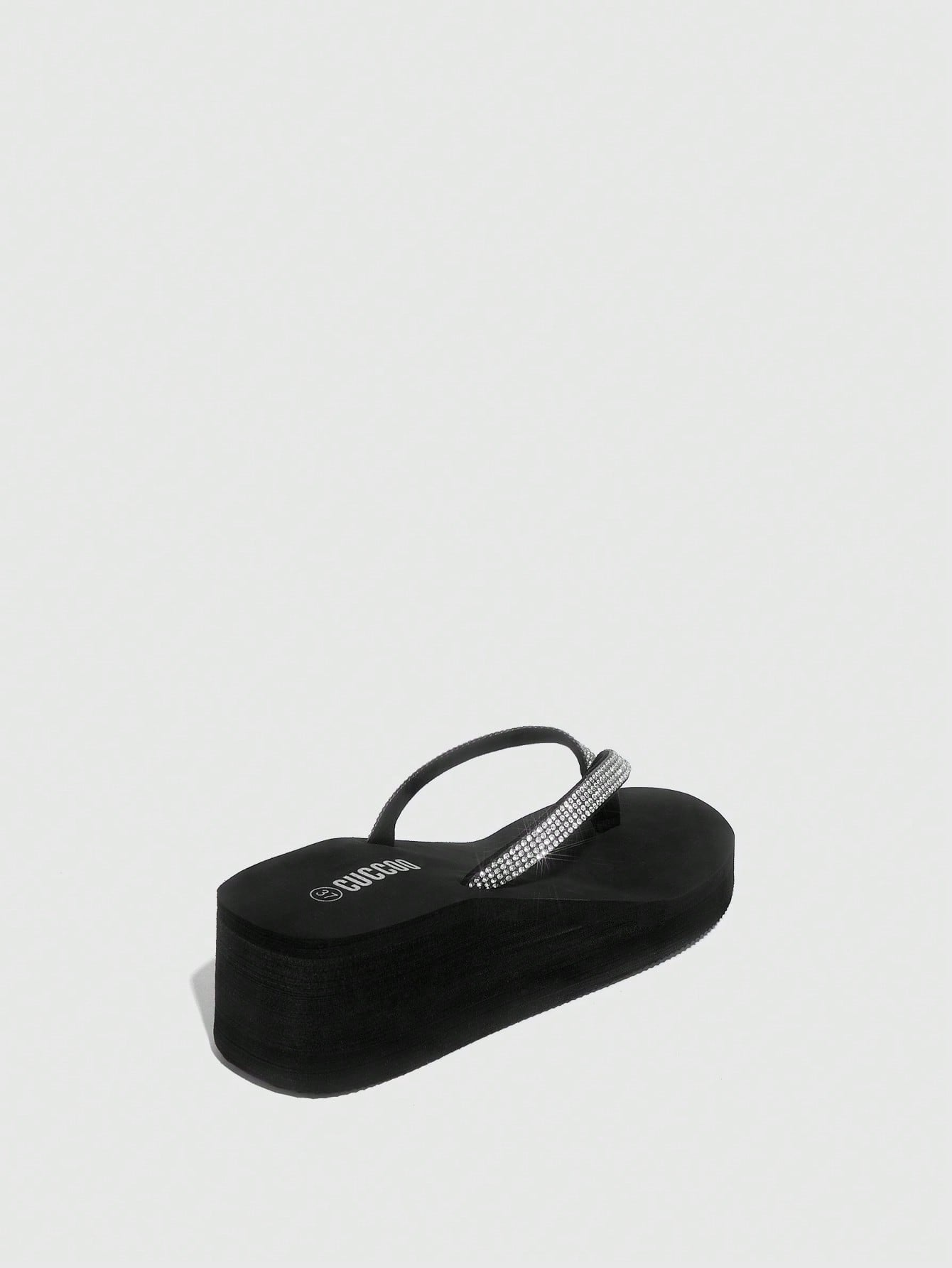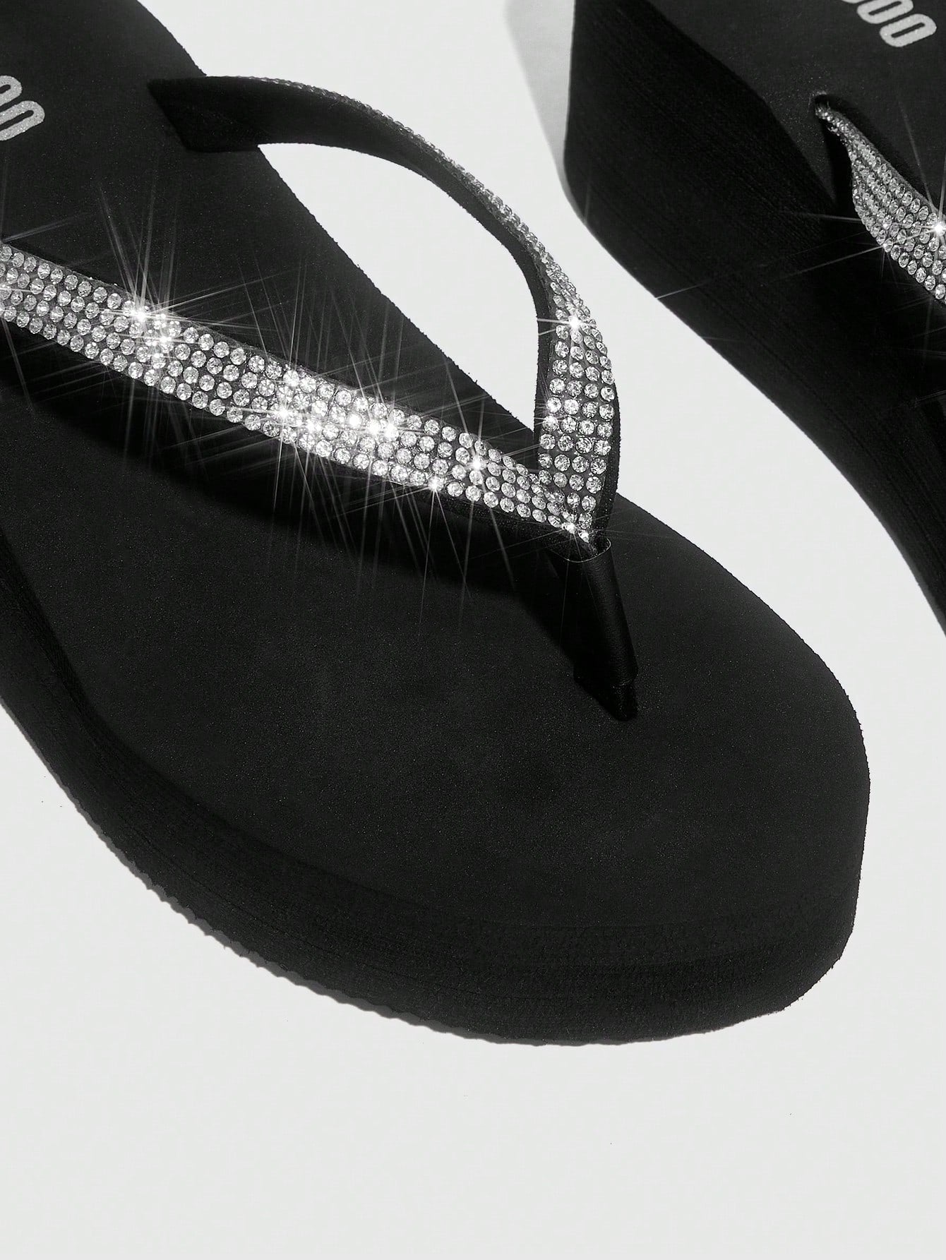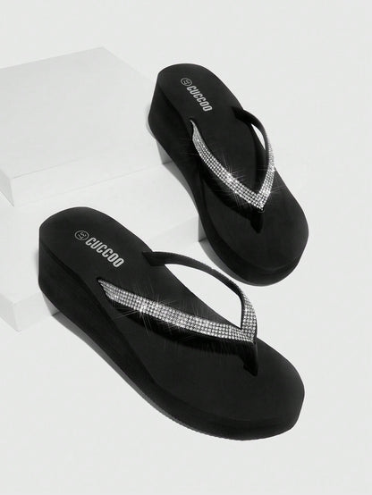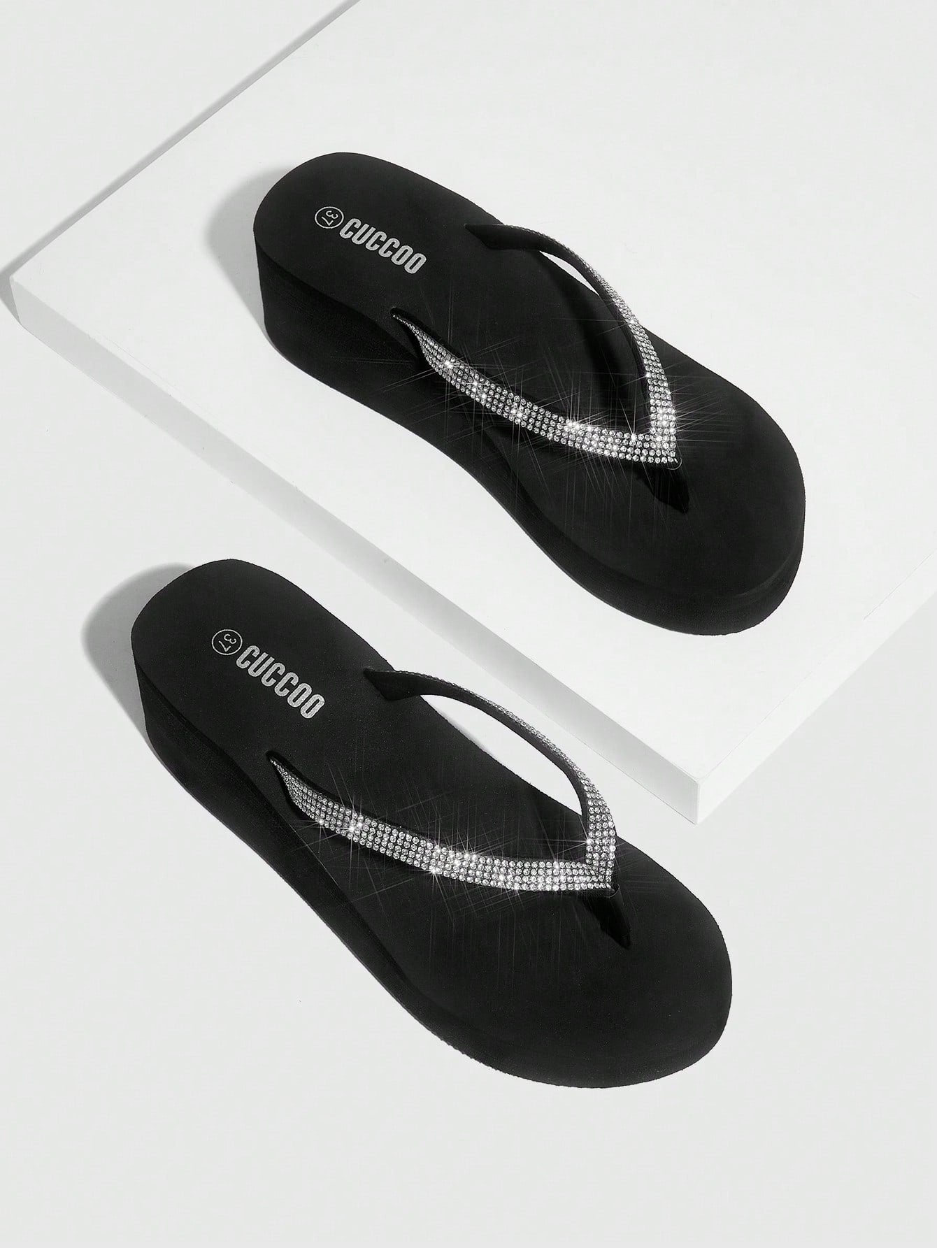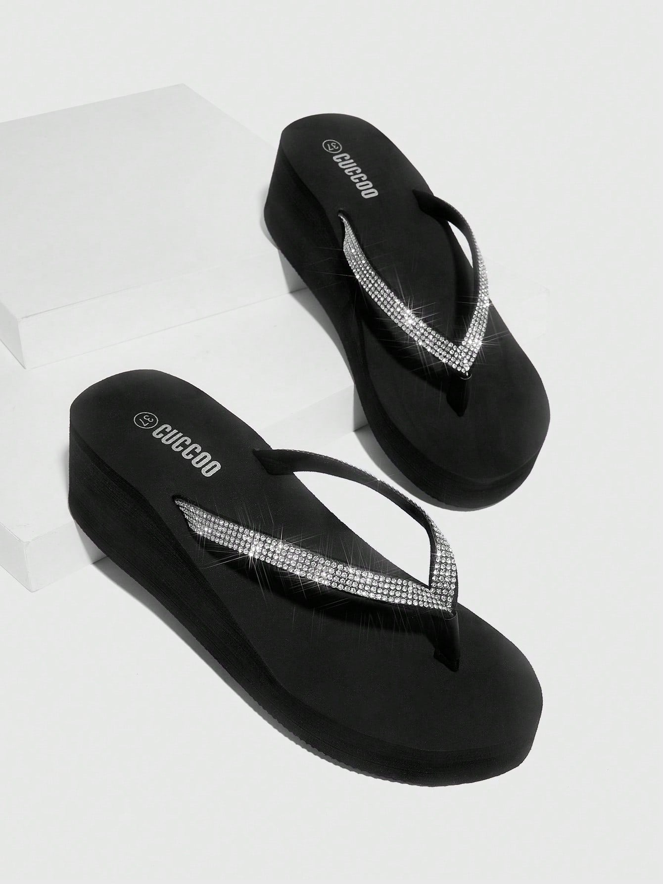 CUCCOO Trending Women Rhinestone Decor Toe Post Flip-Flops