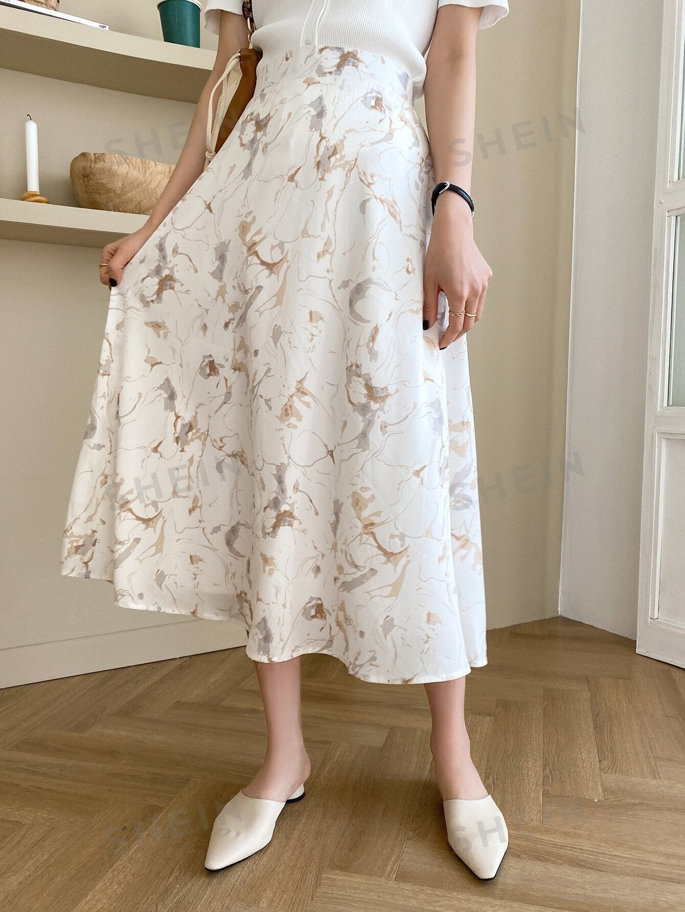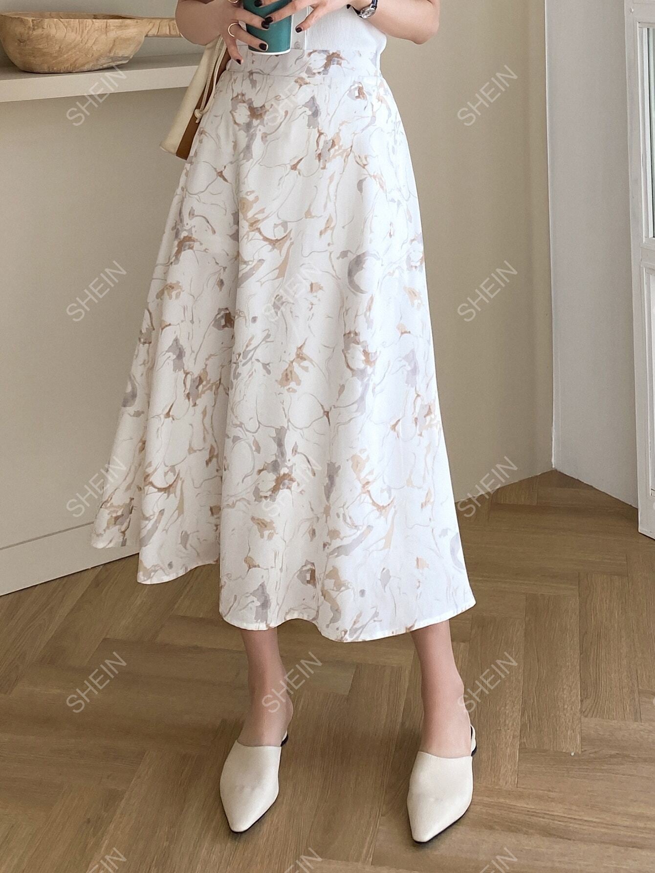 DAZY Allover Print Elastic Waist Skirt