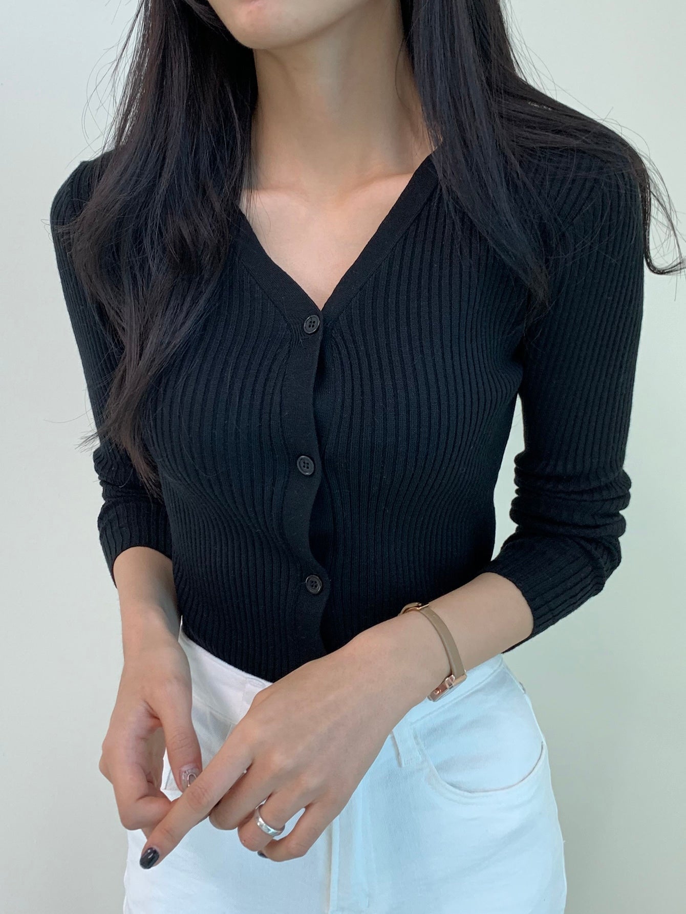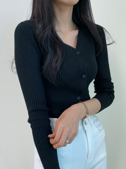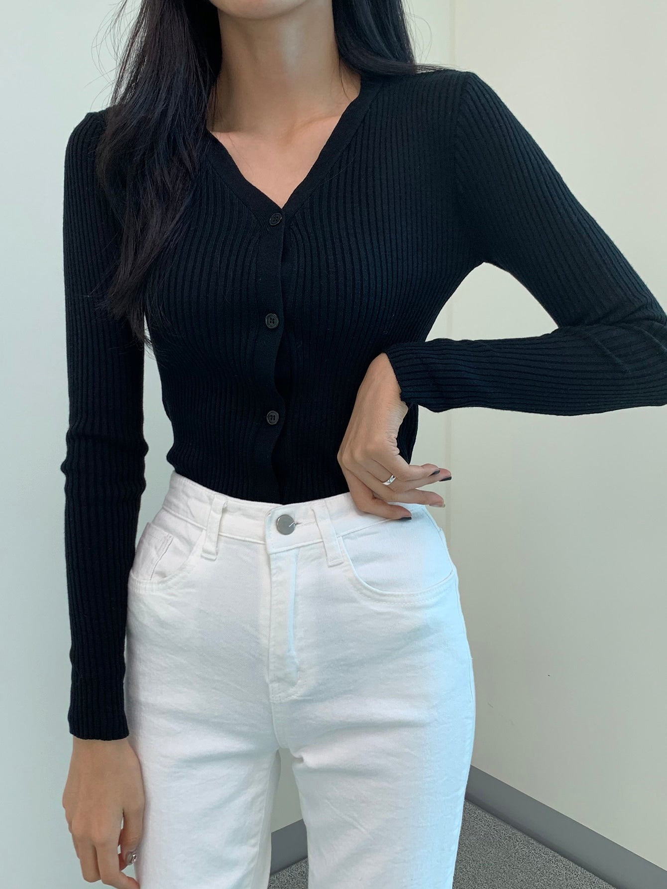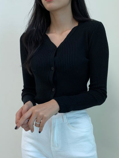 DAZY Ribbed Knit Button Front Slim Fit Cardigan