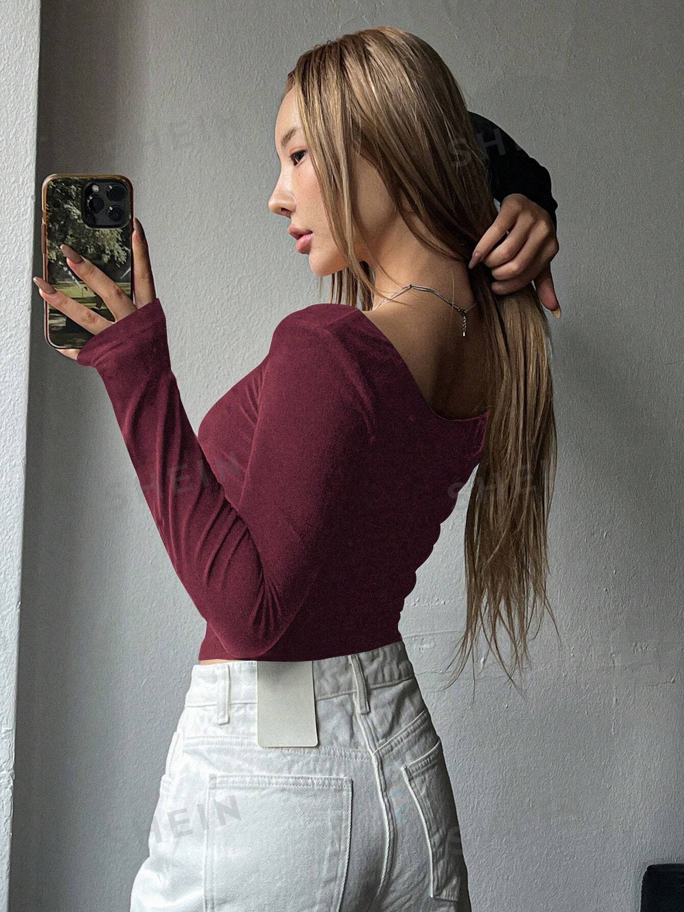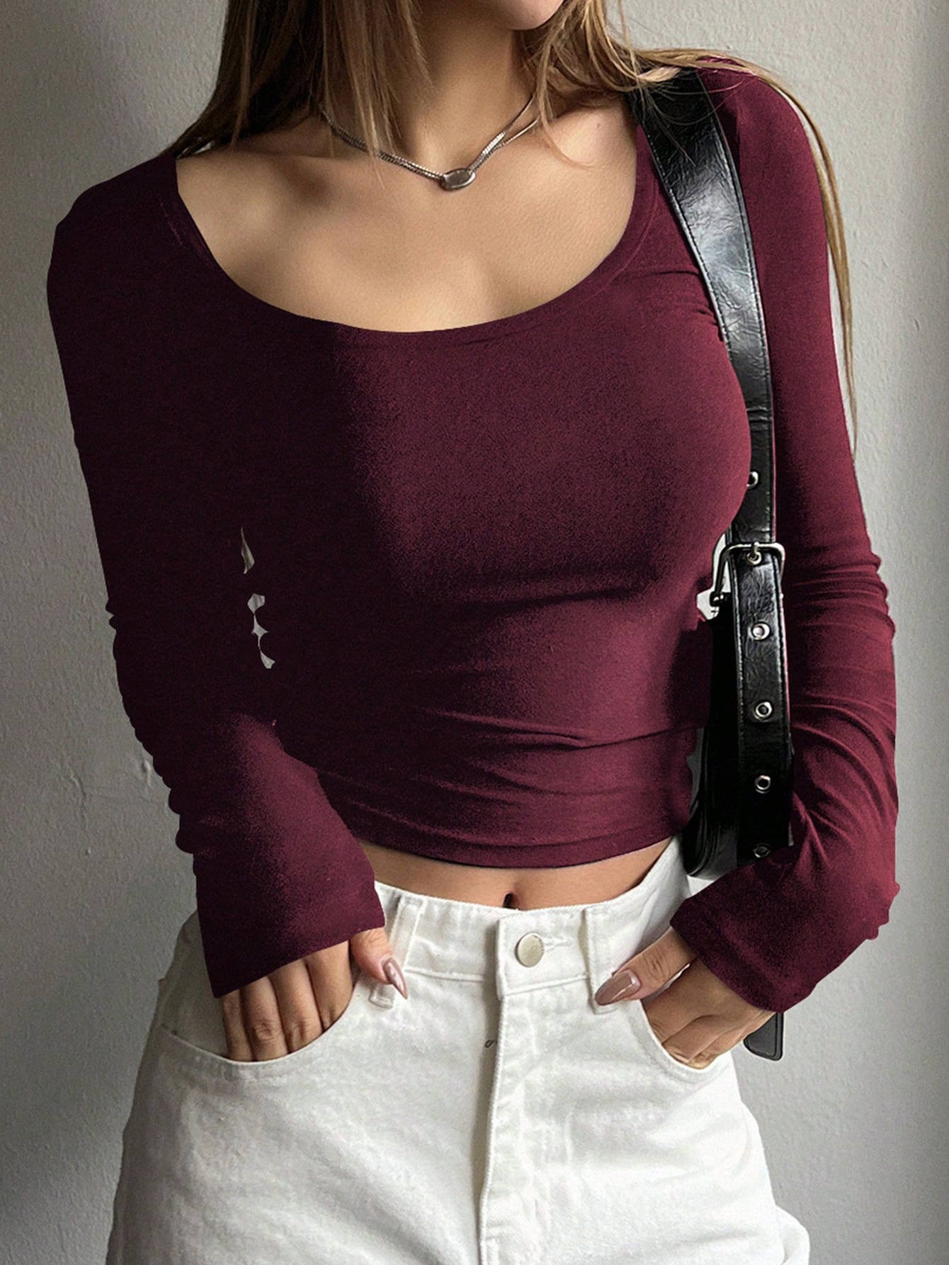 DAZY Solid Color Slim Fit Long Sleeve T-Shirt, Spring And Autumn