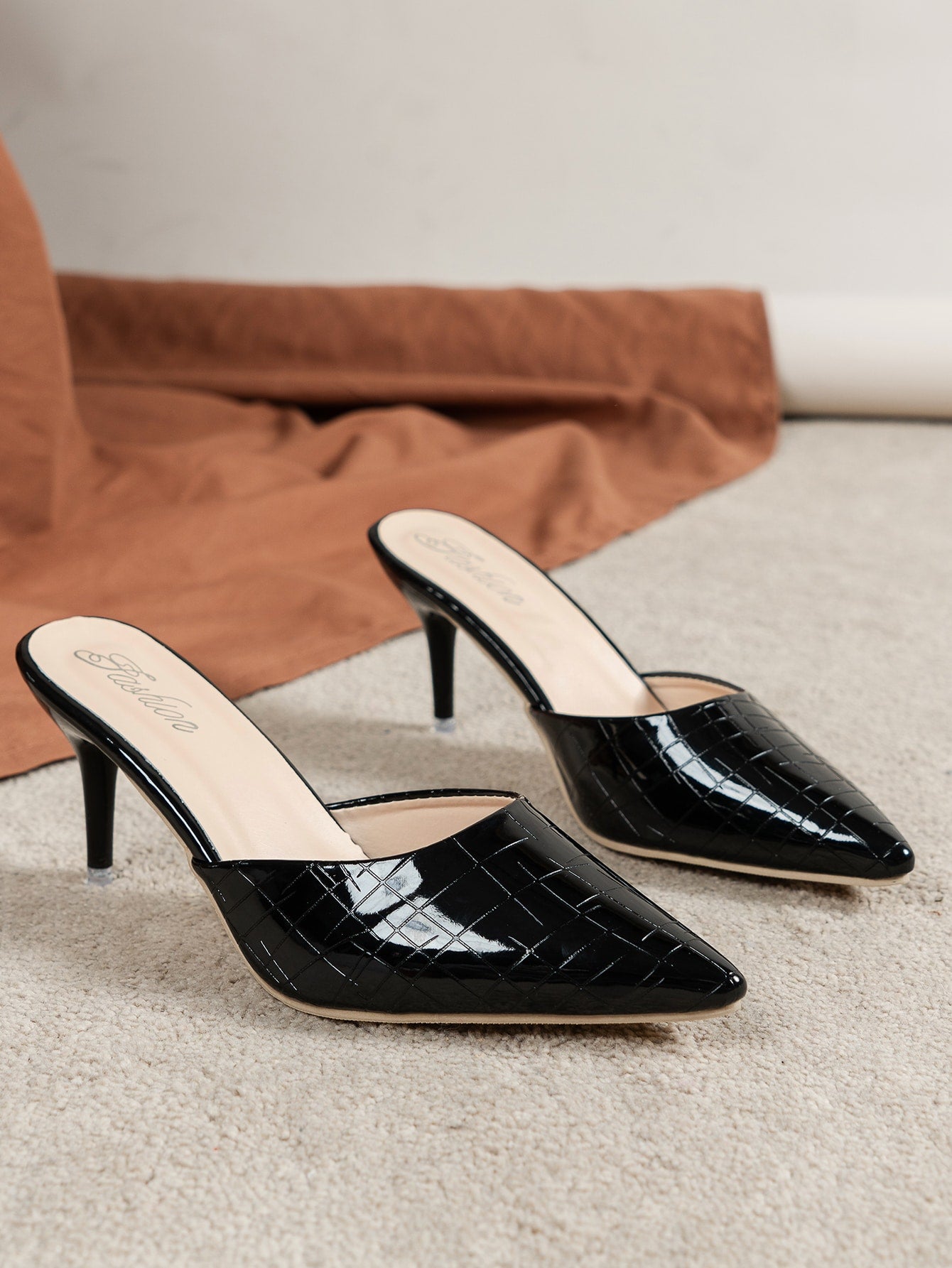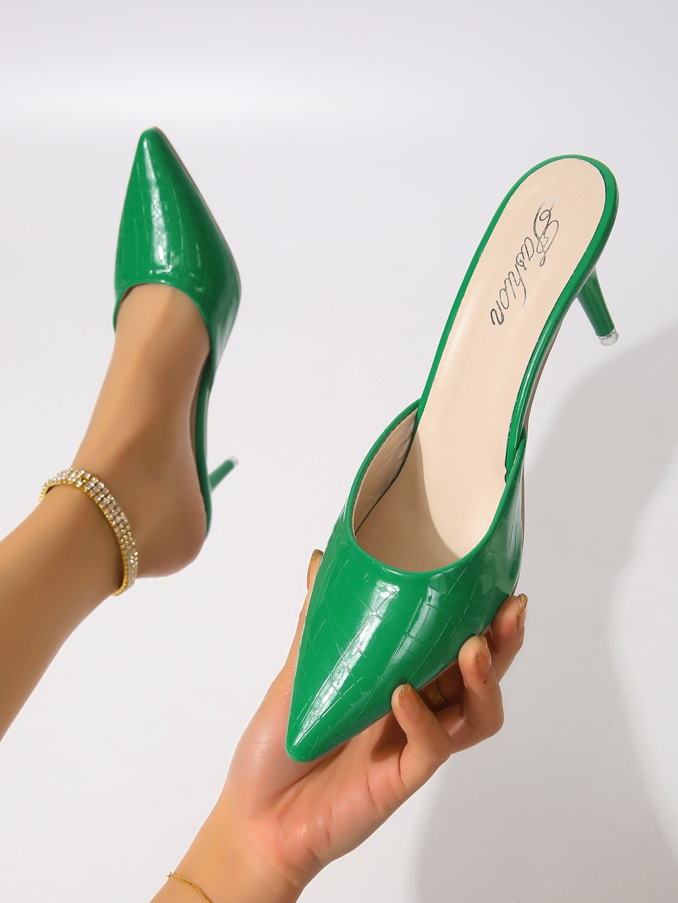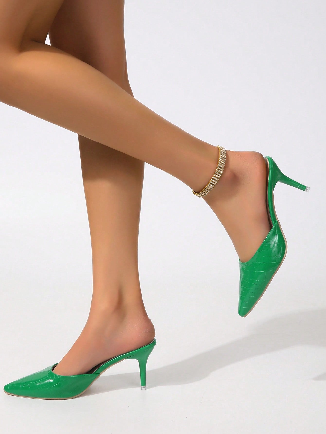Elegant Mule Pumps For Women, Crocodile Embossed Stiletto Heeled Pumps
