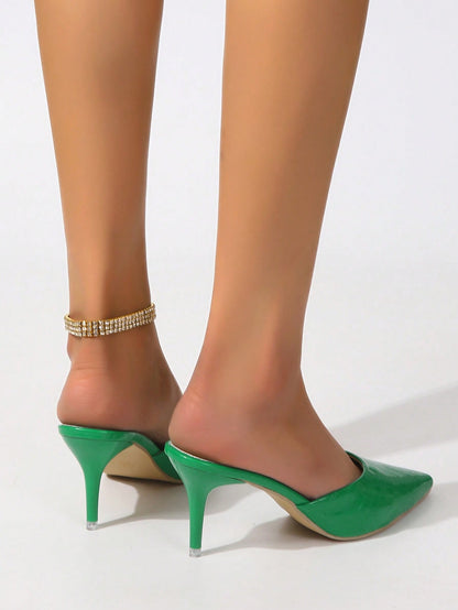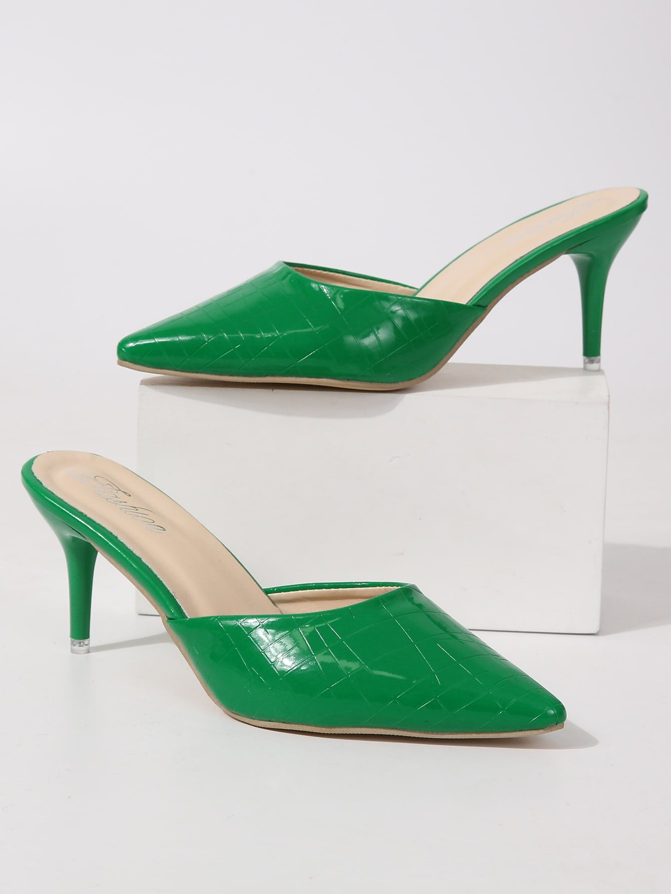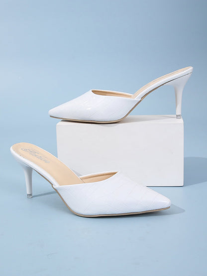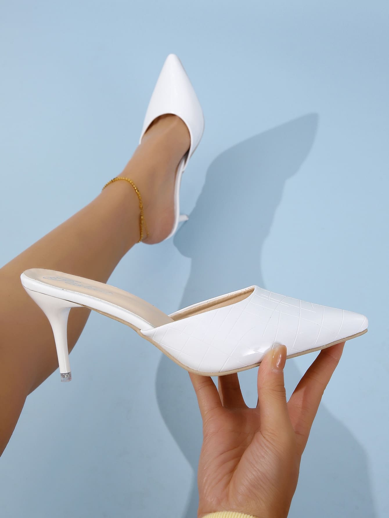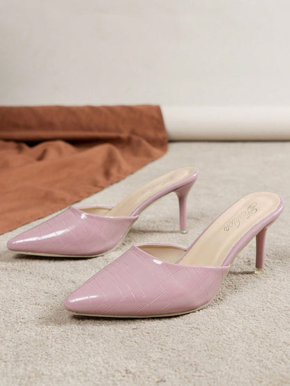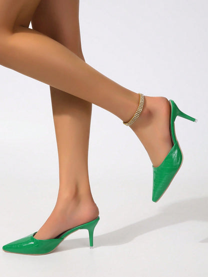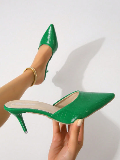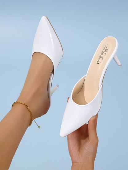 Elegant Mule Pumps For Women, Crocodile Embossed Stiletto Heeled Pumps