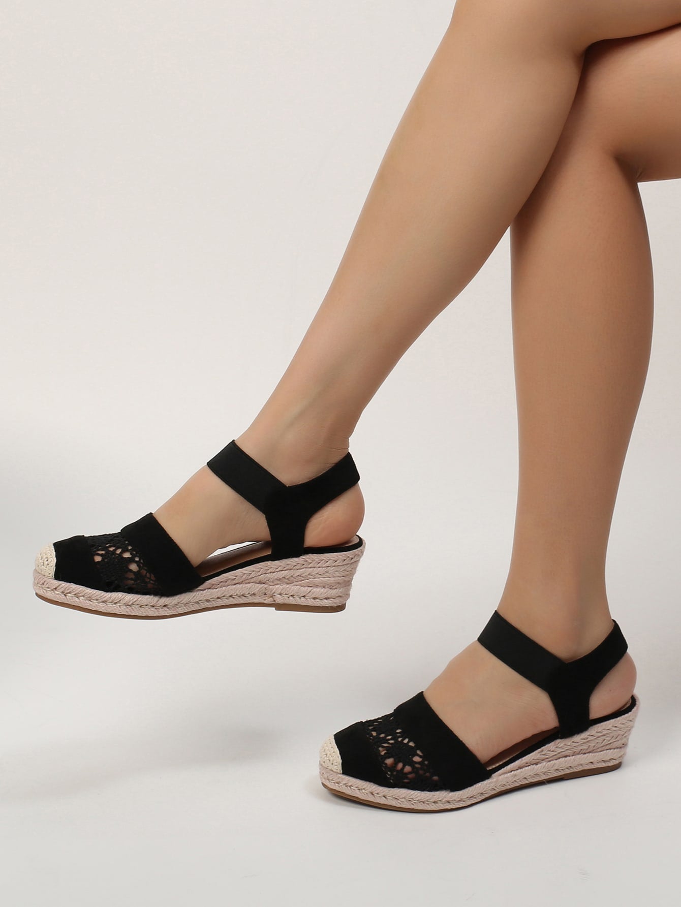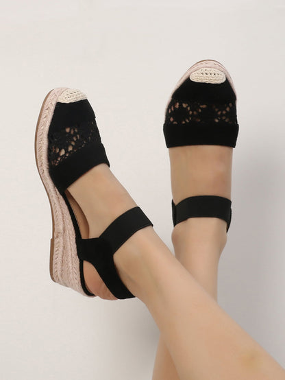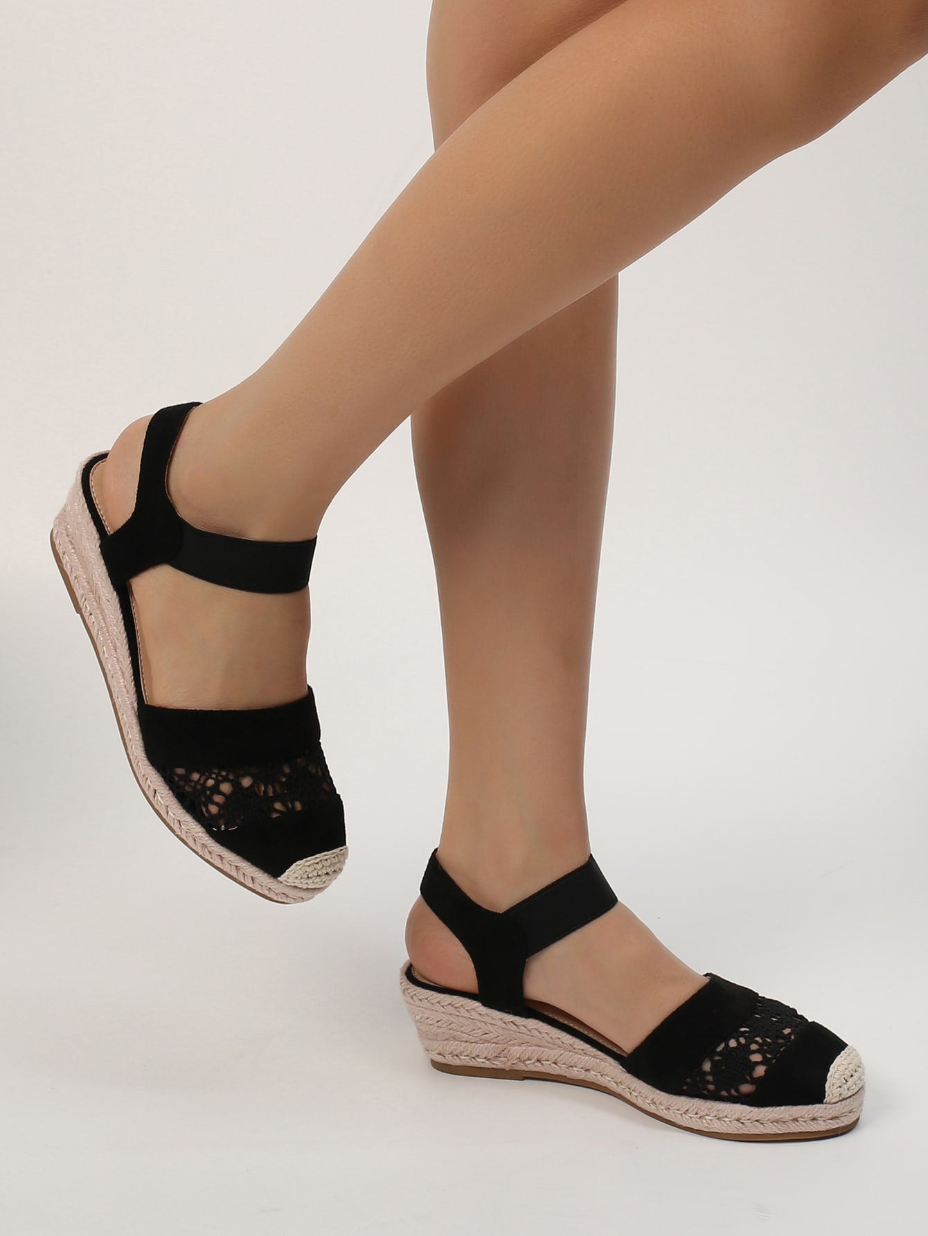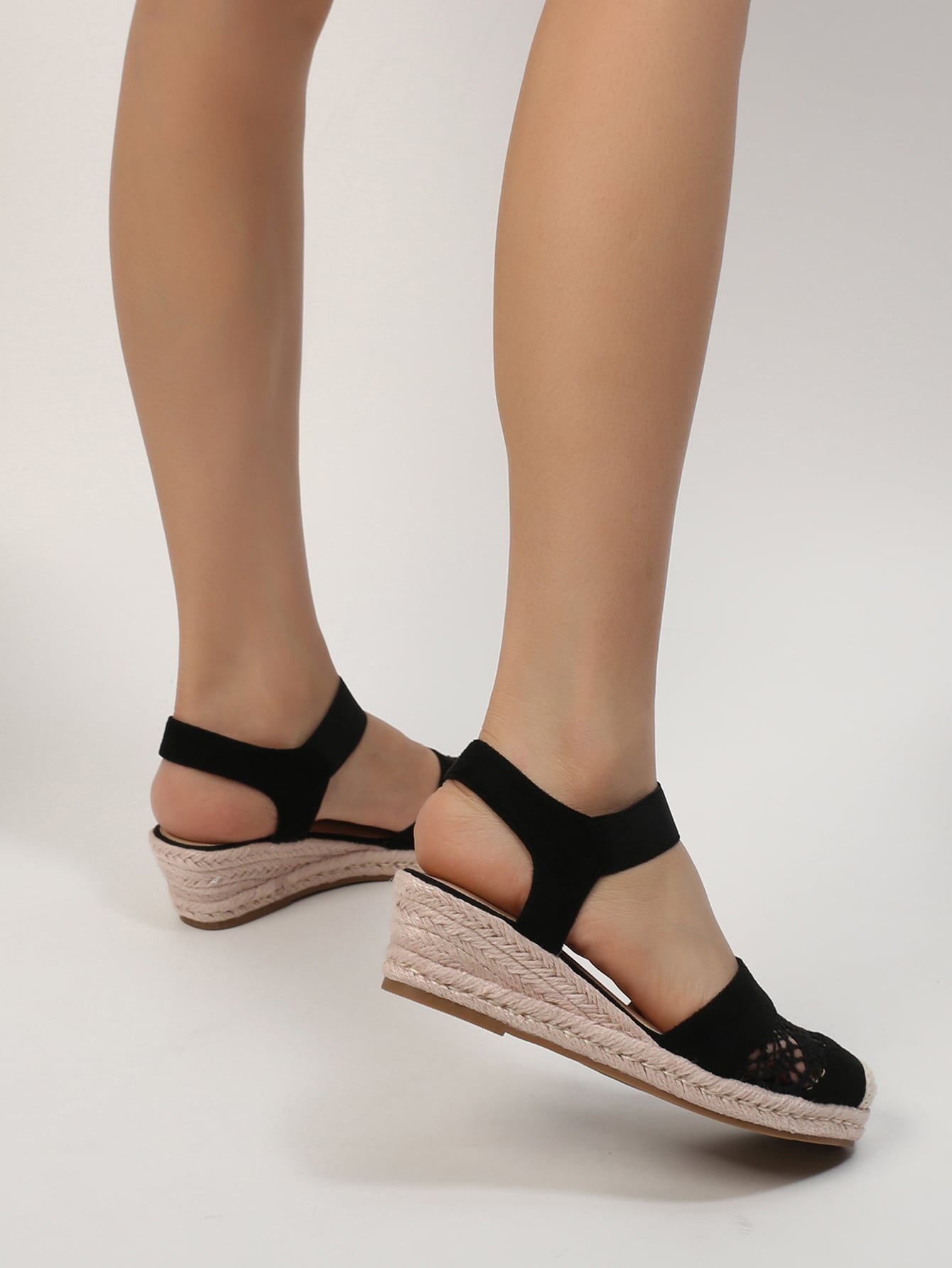 EMERY ROSE Hollow Out Cap Toe Espadrille Wedge Court Shoes