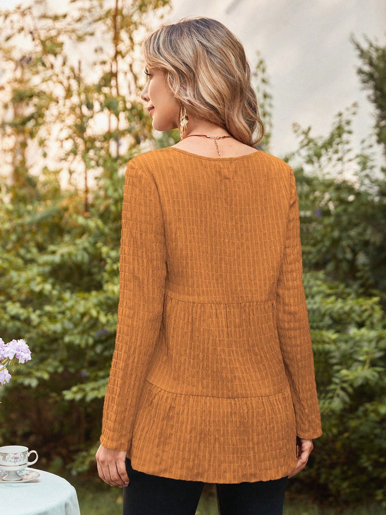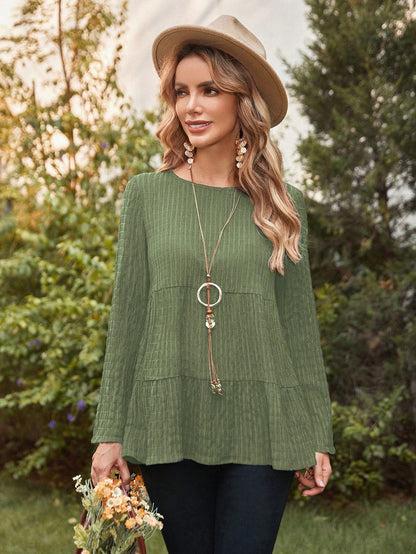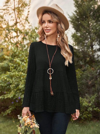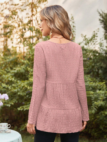 EMERY ROSE Solid Ruffle Hem Smock Blouse