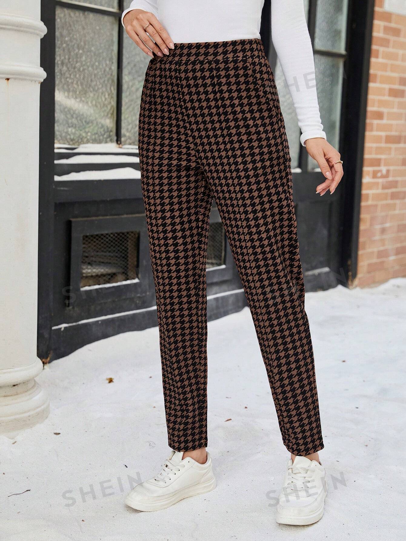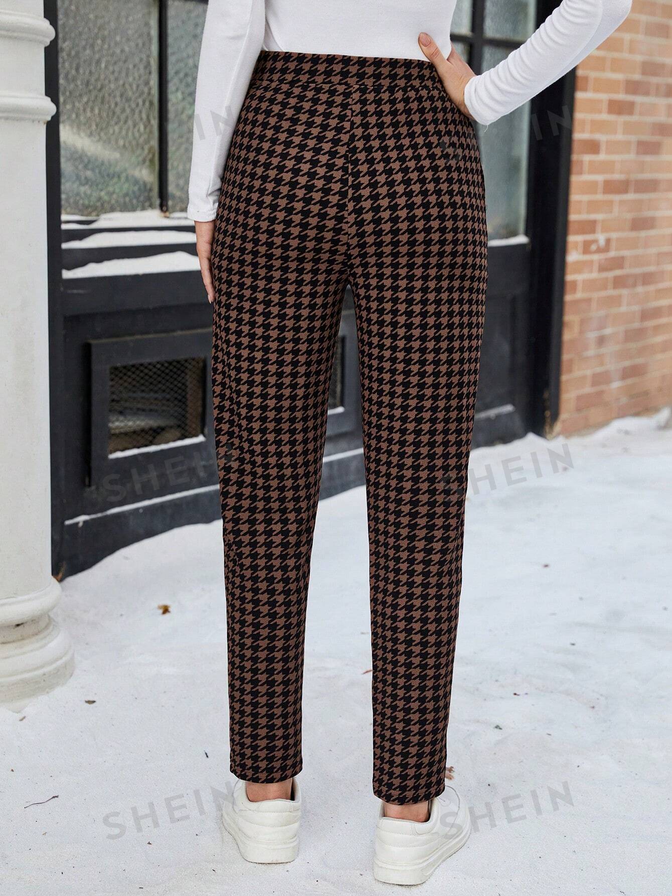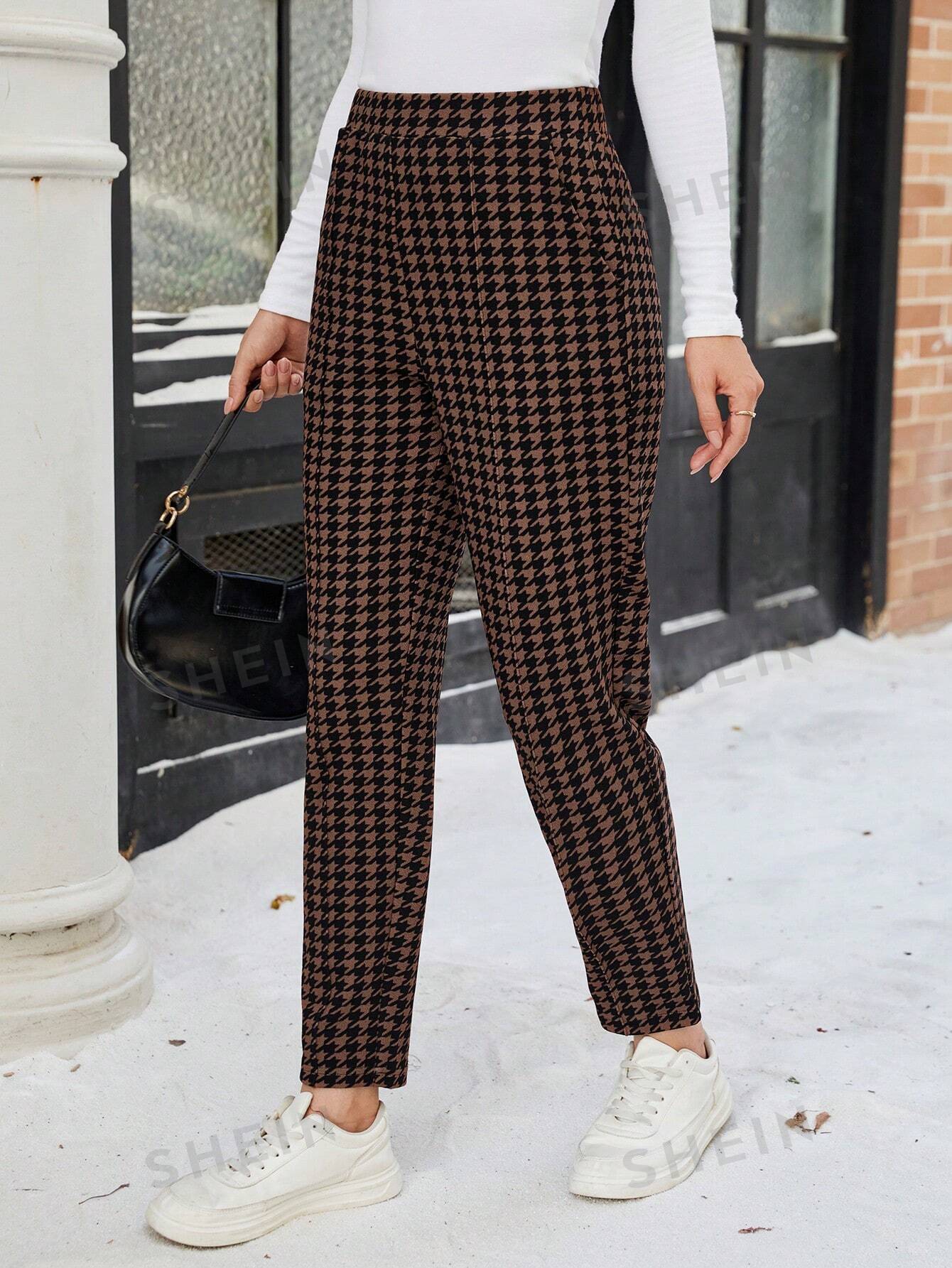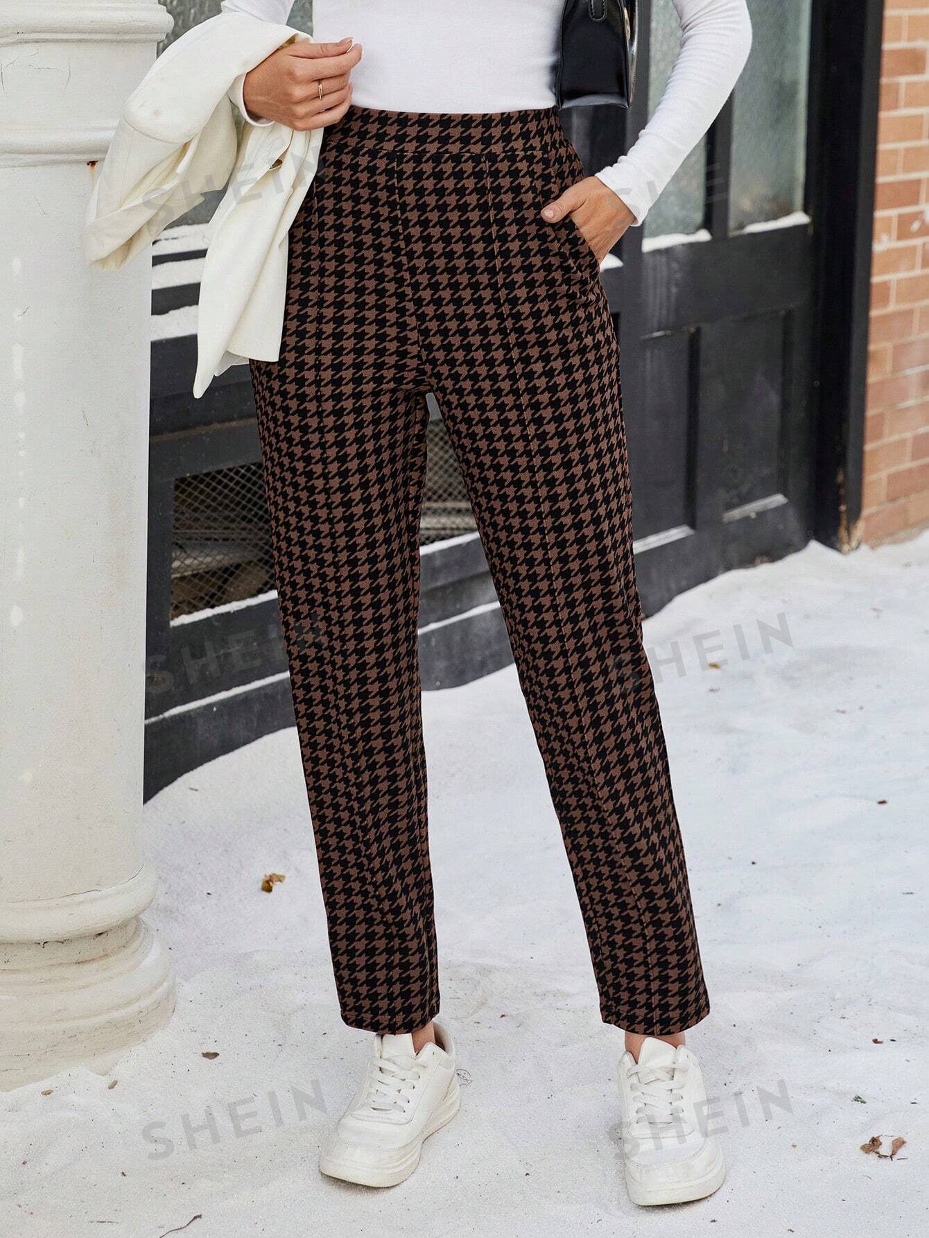EMERY ROSE Women Plaid Pocket Casual Trousers, Everyday Wear