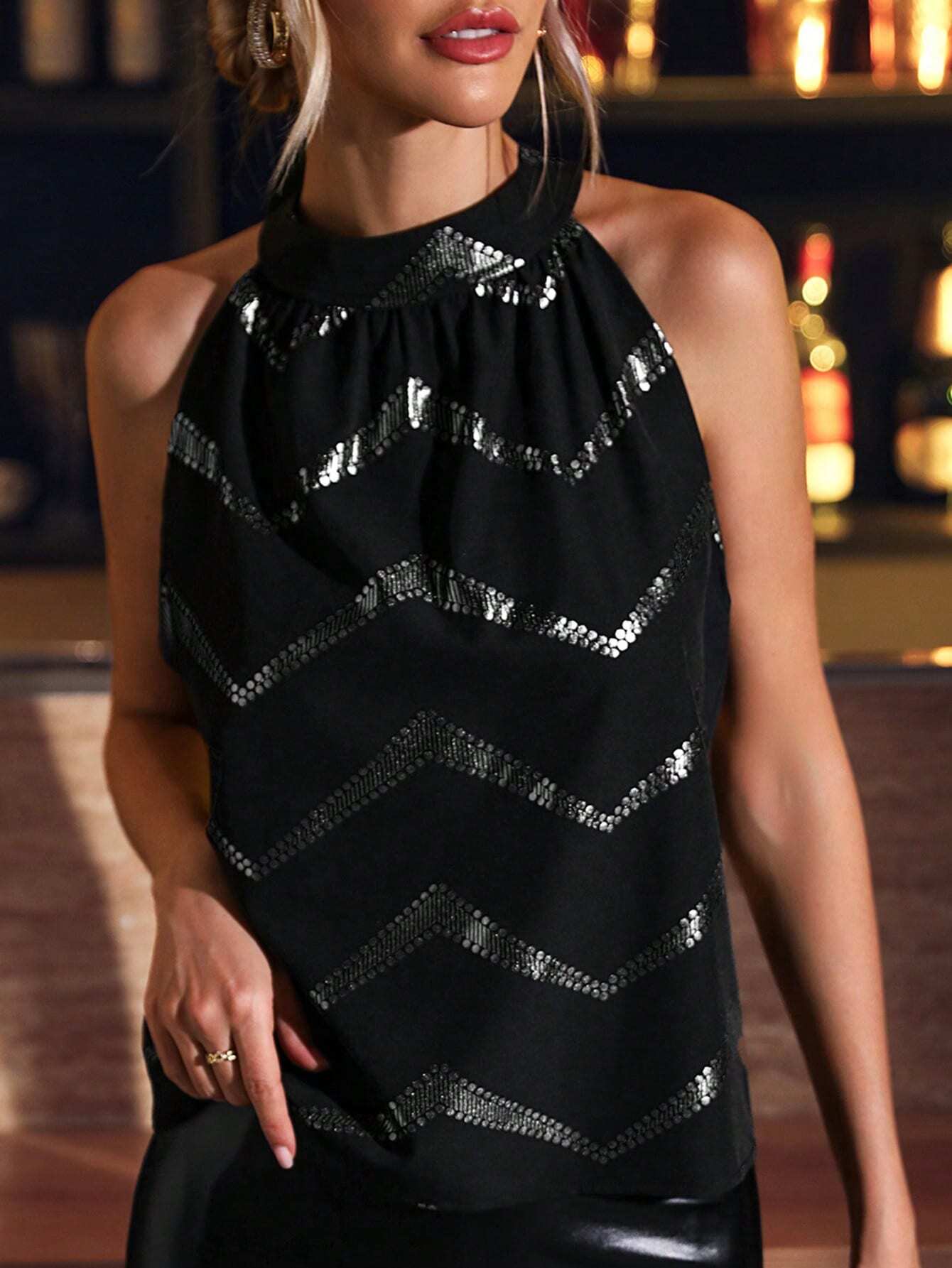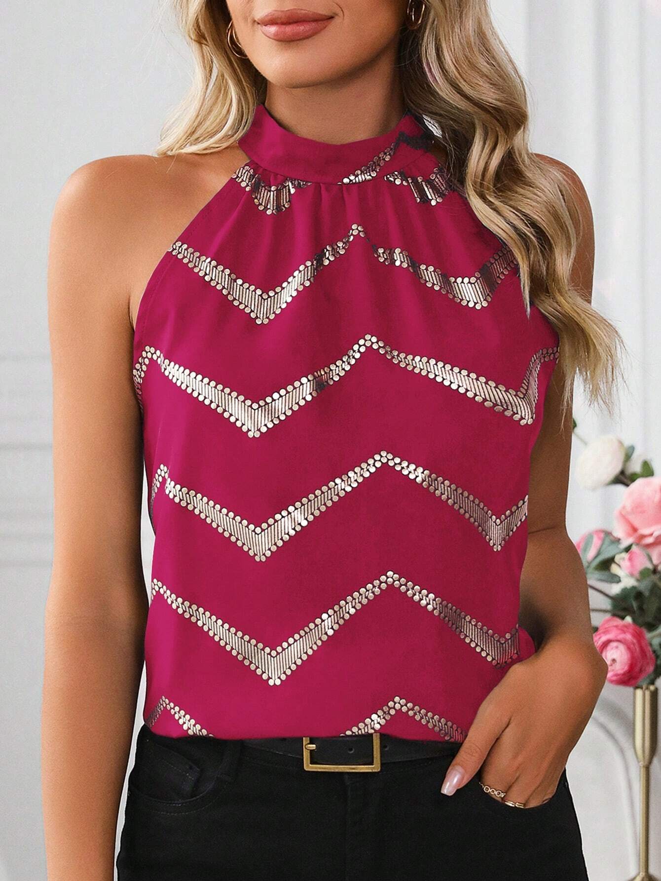 Essnce Ladies' Plaid Gold Foil Print Halter Neck Blouse
