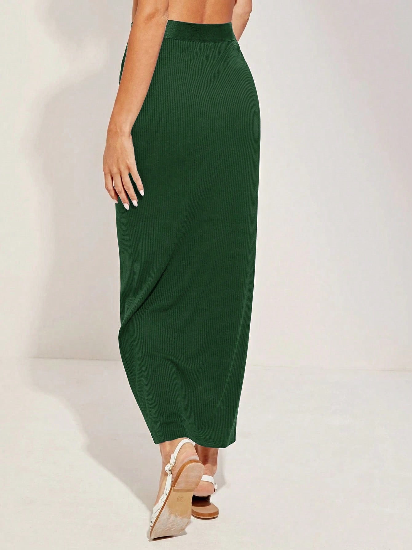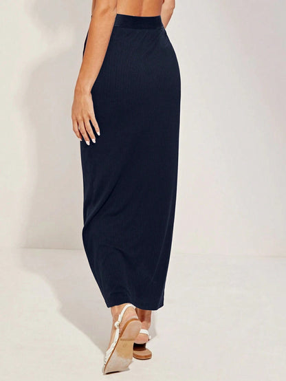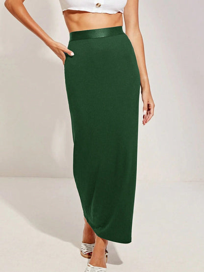 Essnce Wide Band Waist Rib-knit Pencil Skirt