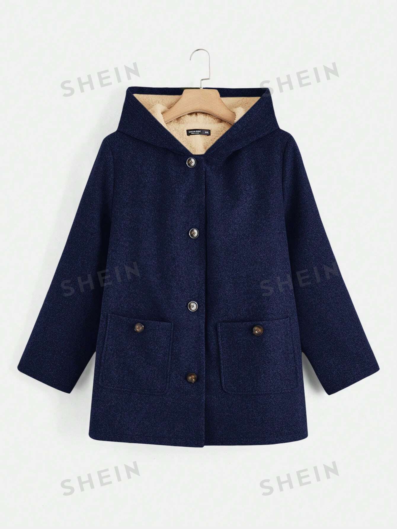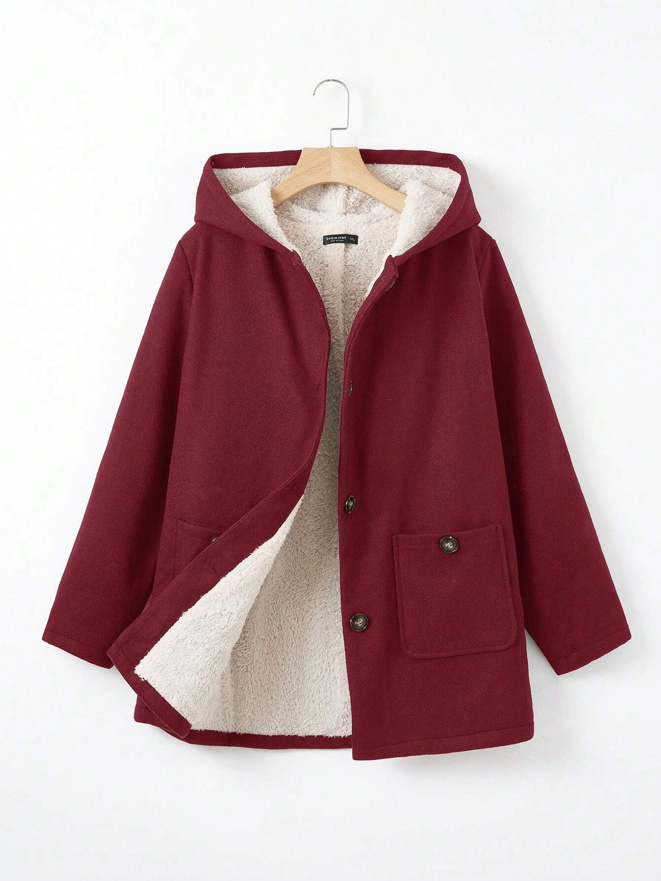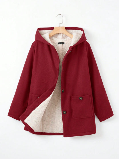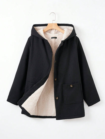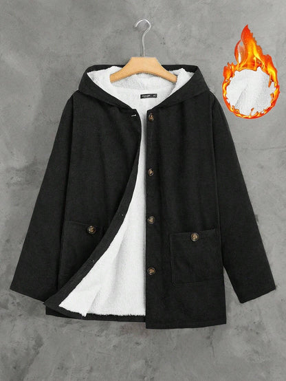 EZwear Plus Size Double Pockets Warm Lined Hooded Jacket