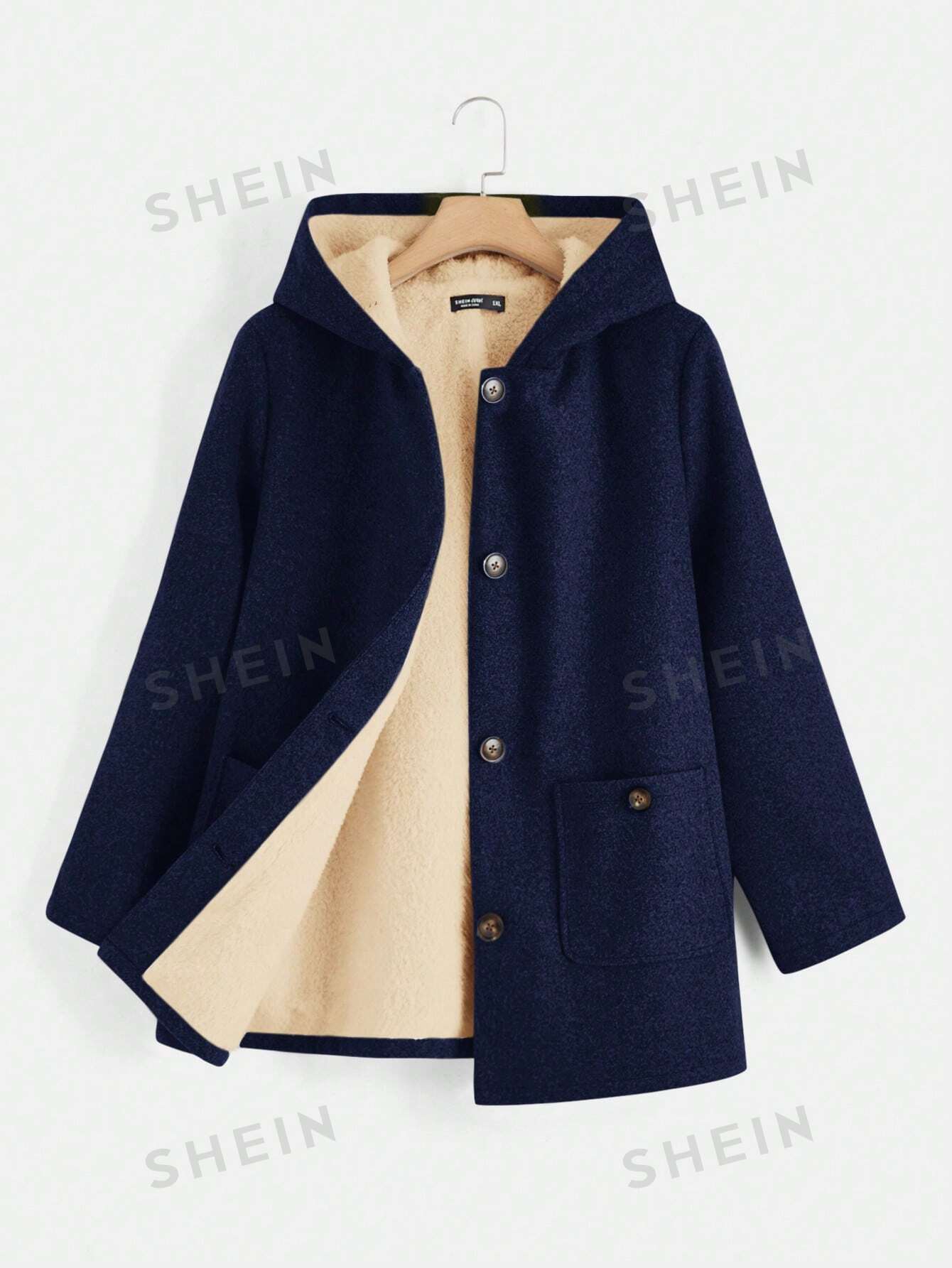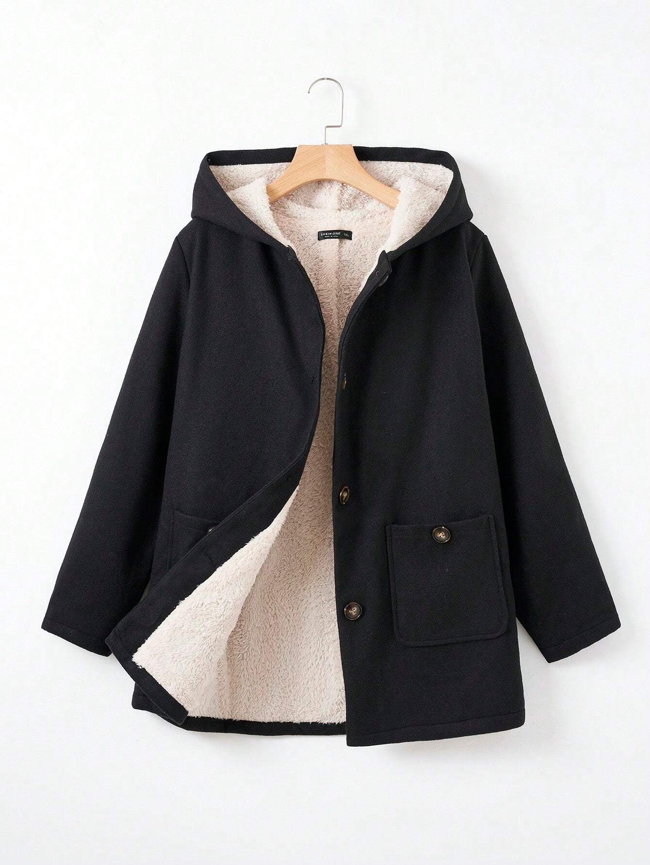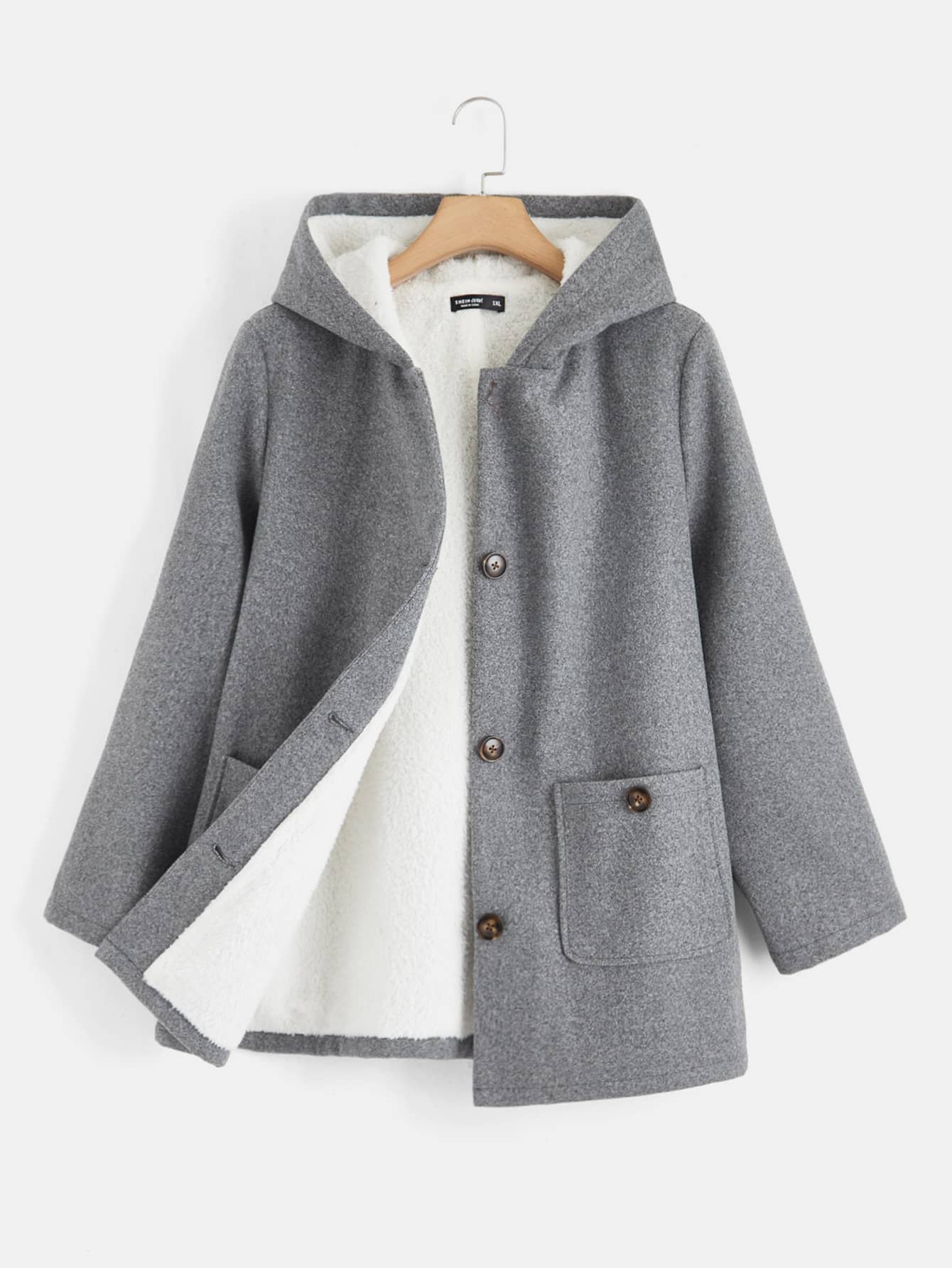EZwear Plus Size Double Pockets Warm Lined Hooded Jacket