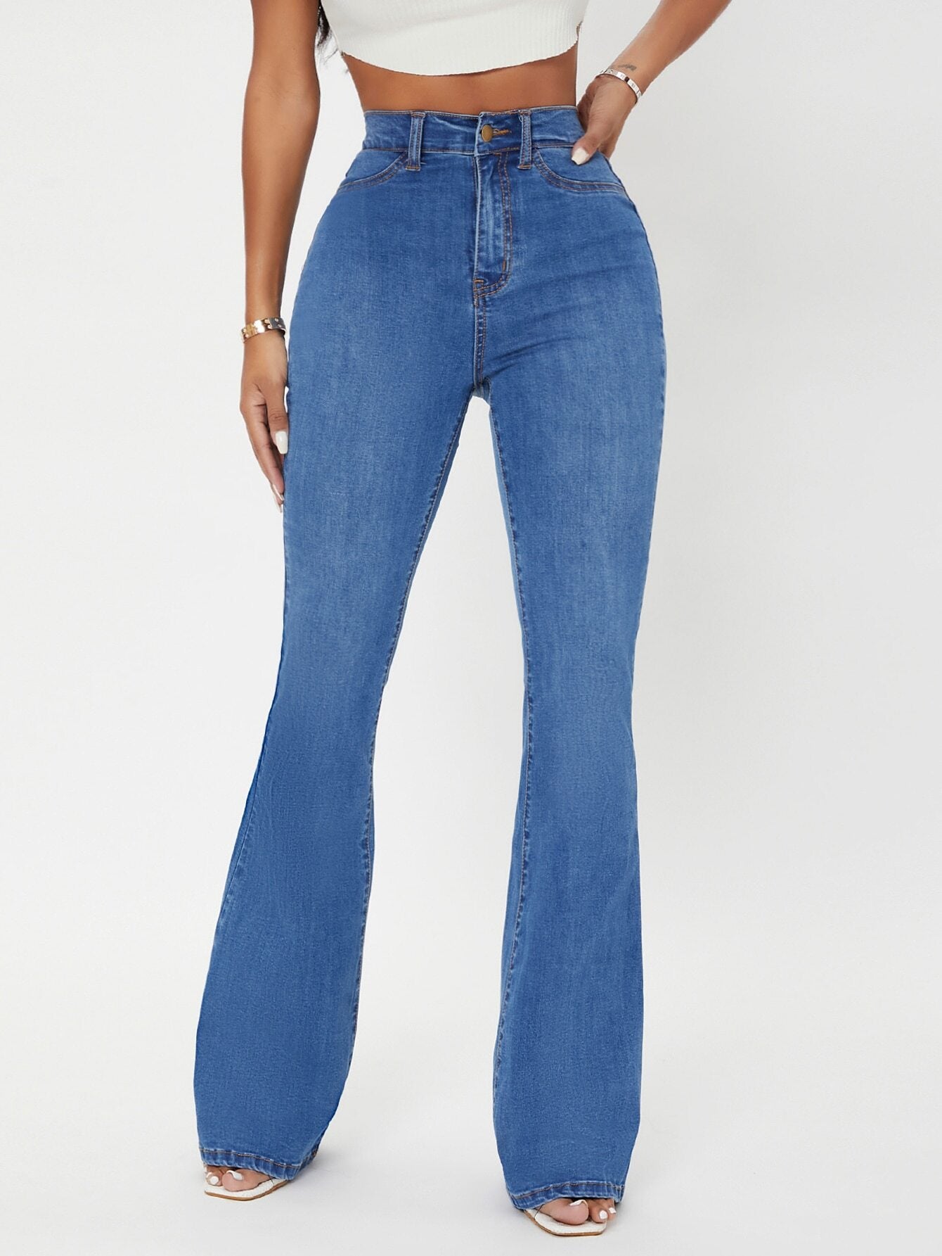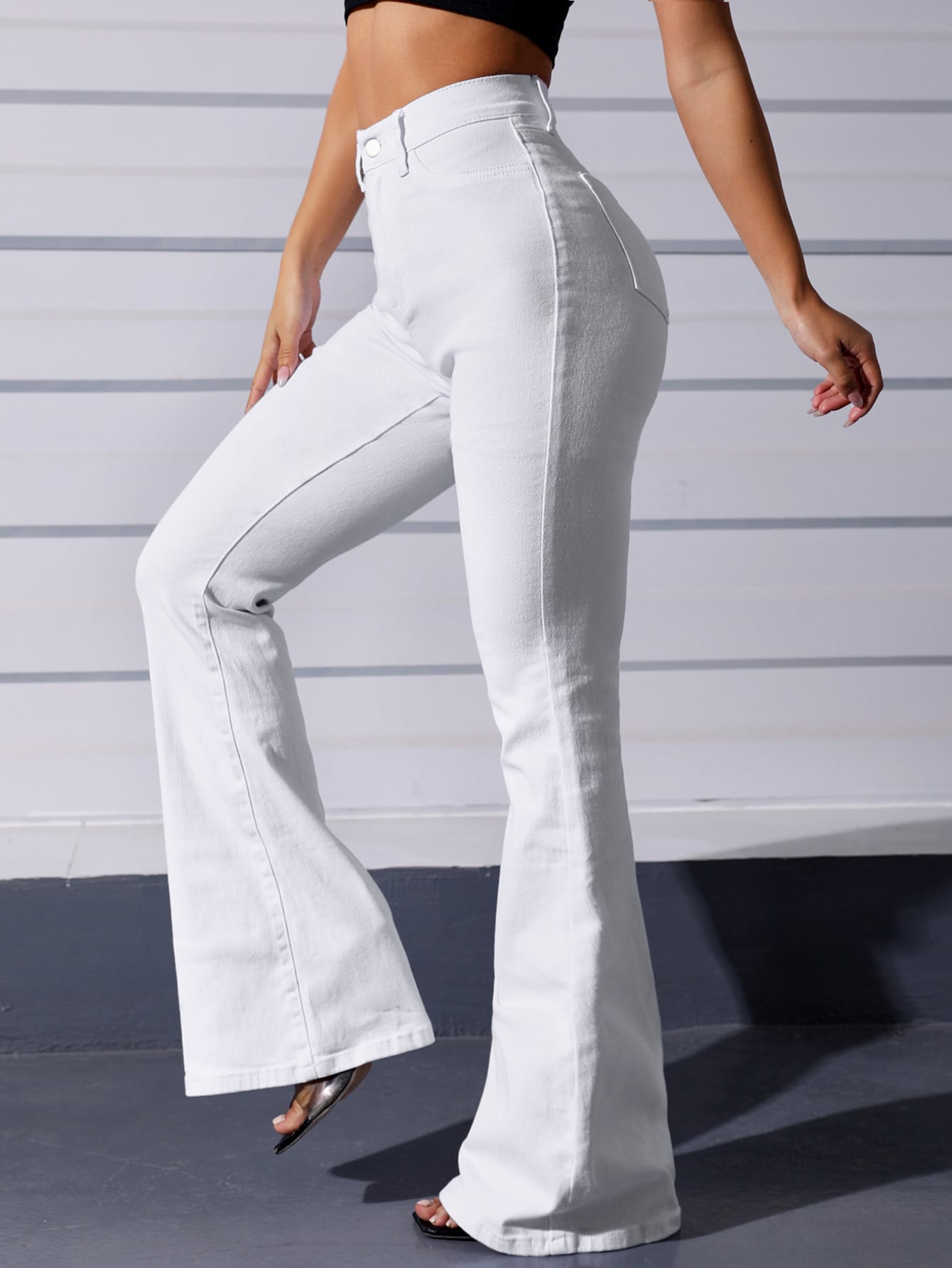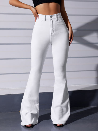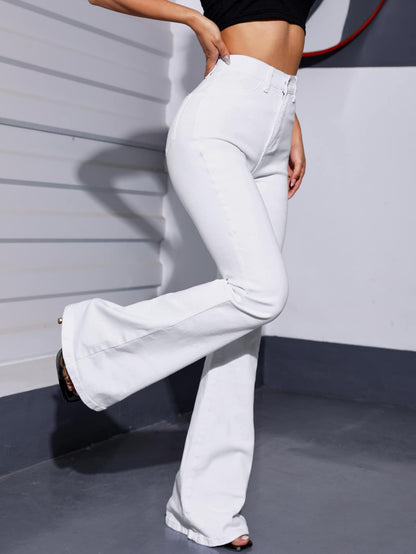 EZwear White Casual Curvy High Waist Flare Leg Jeans
