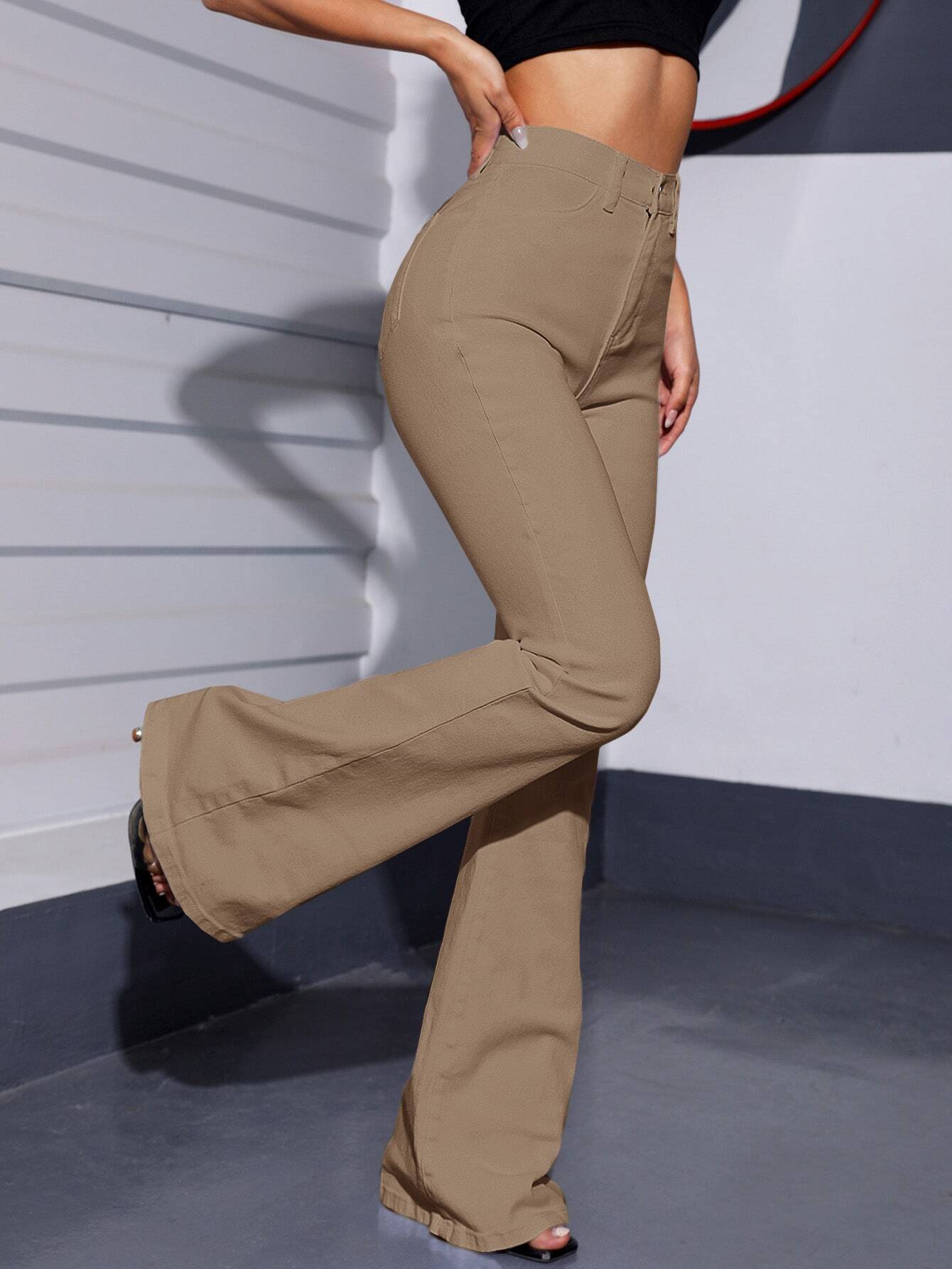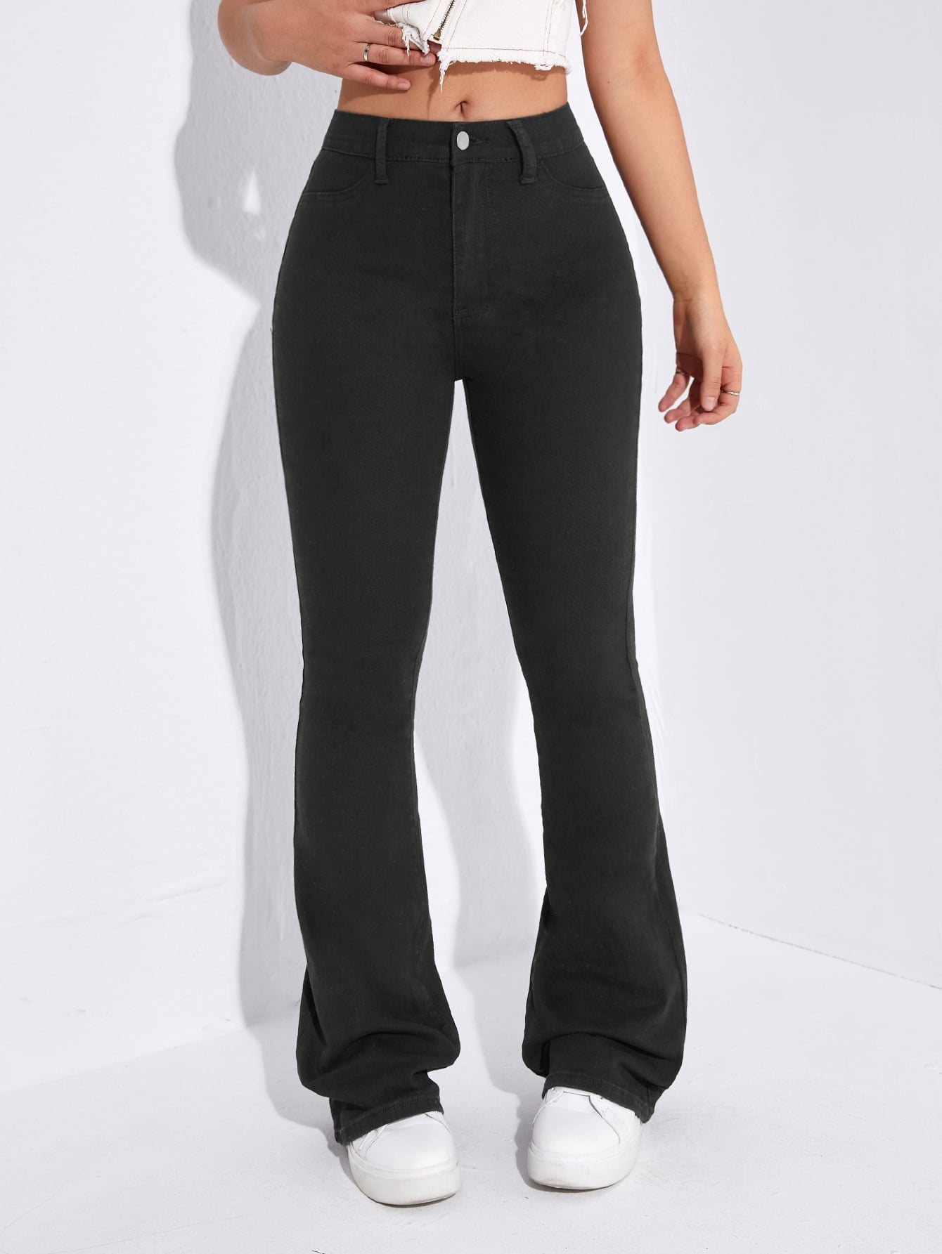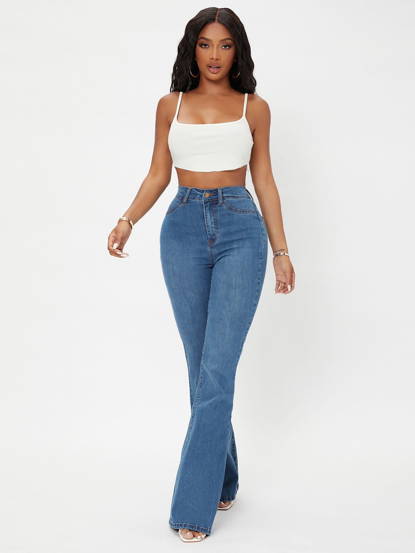 EZwear White Casual Curvy High Waist Flare Leg Jeans