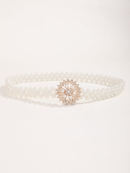 Faux Pearl & Rhinestone Decor Belt