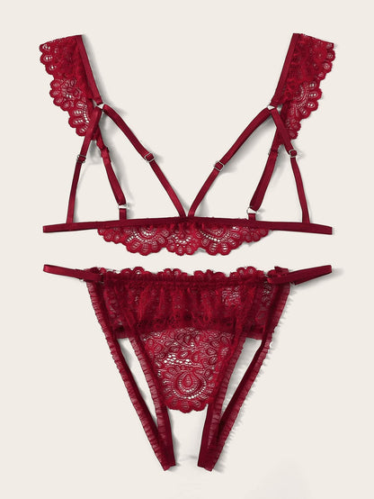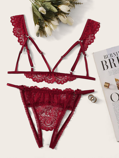 Floral Lace Cutout Lingerie Set
