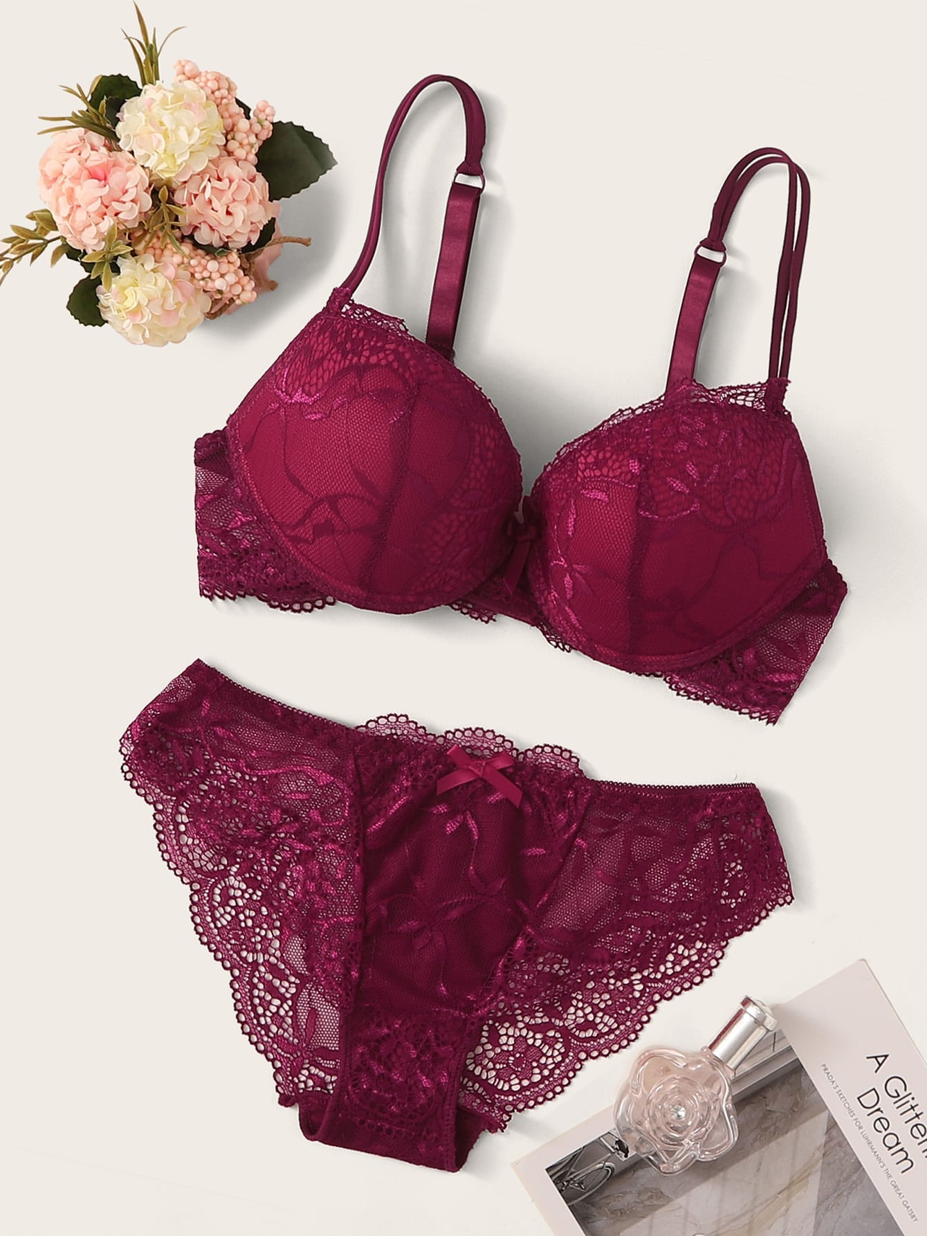 Floral Lace Underwire Lingerie Set