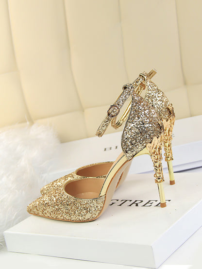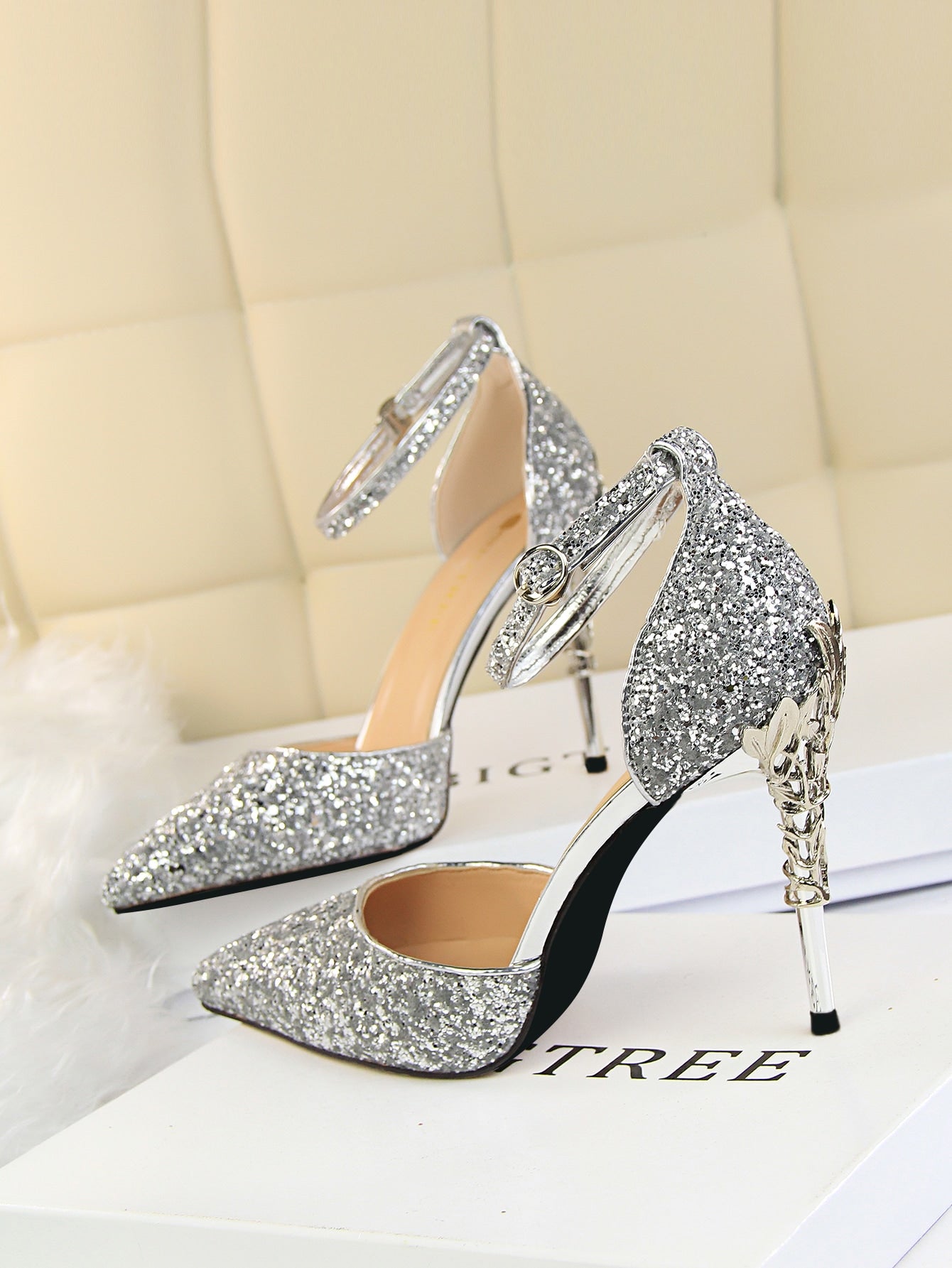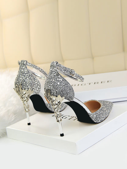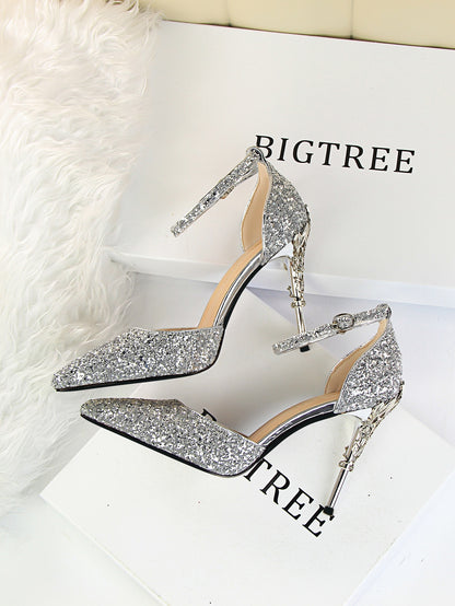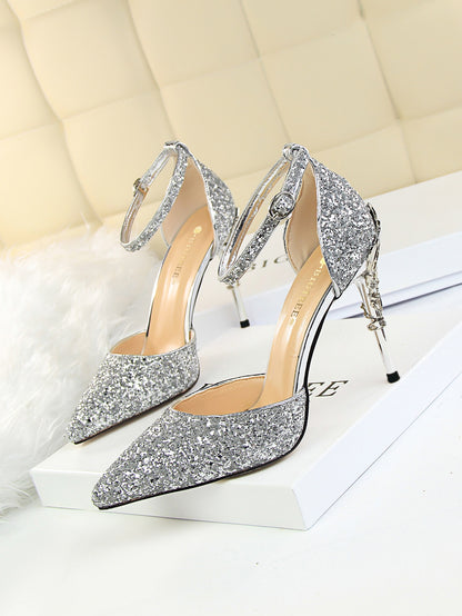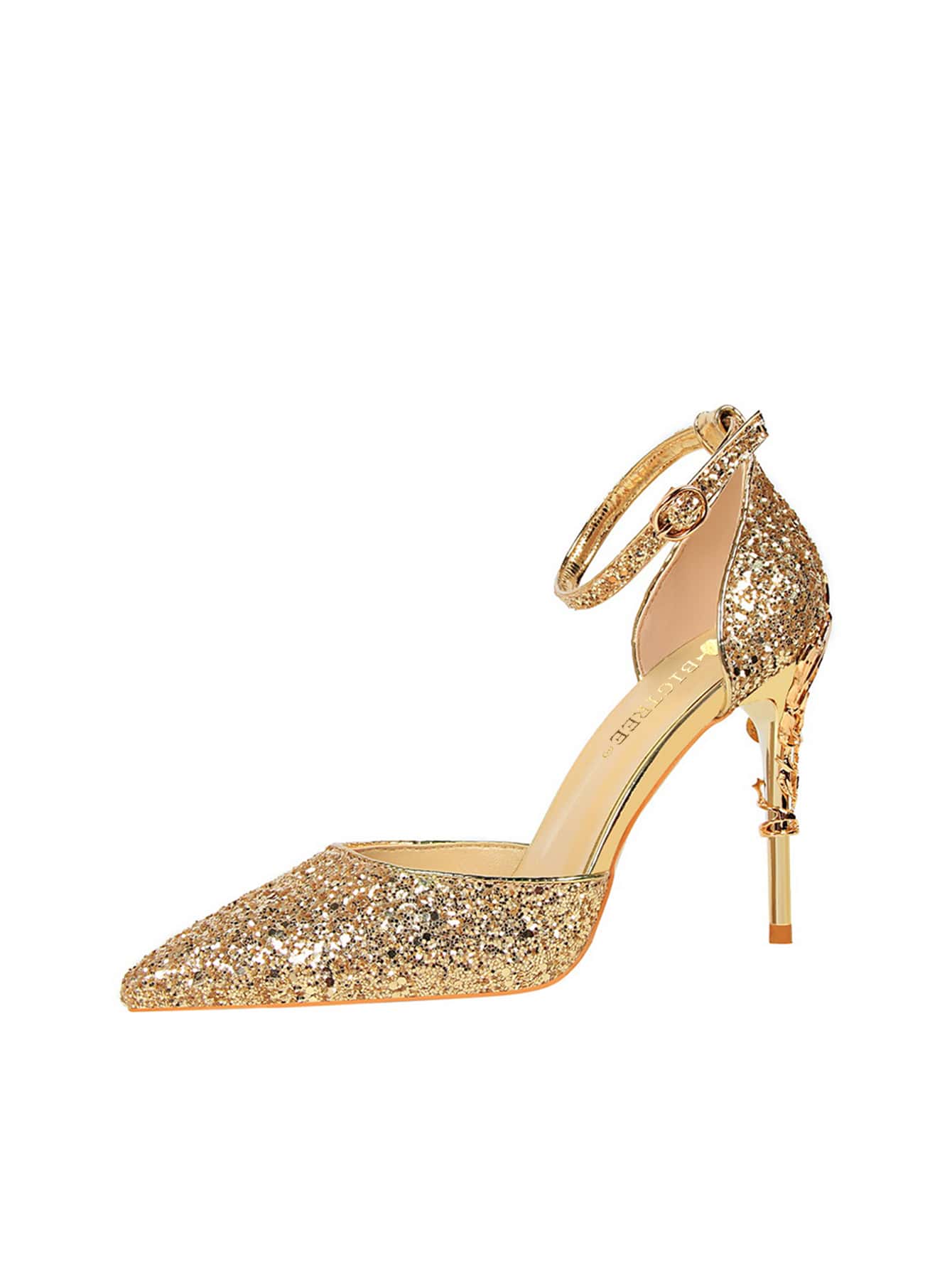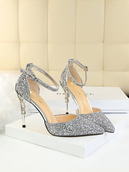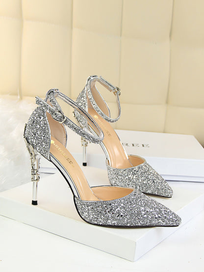 Glitter Ankle Strap Stiletto Heeled Pumps