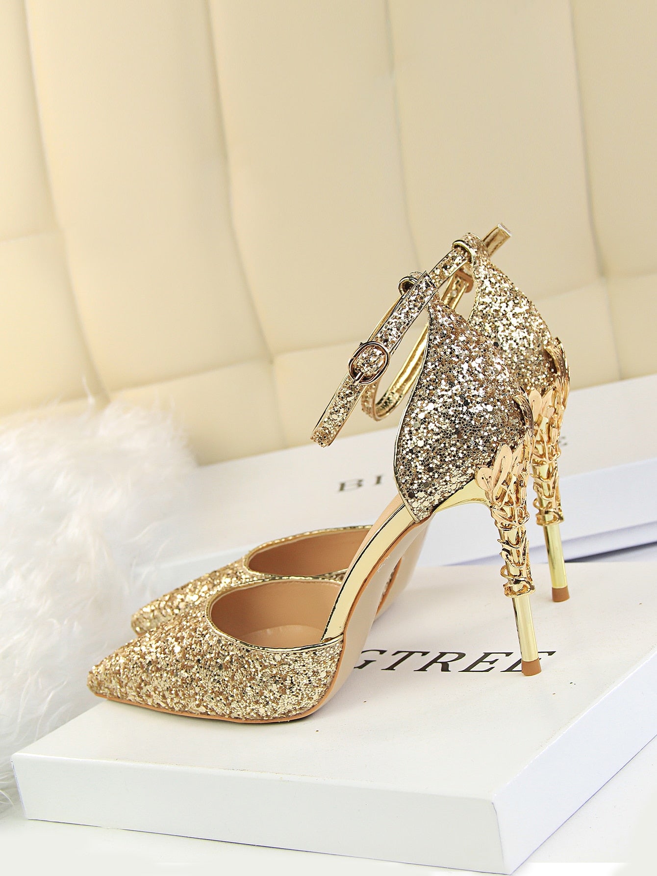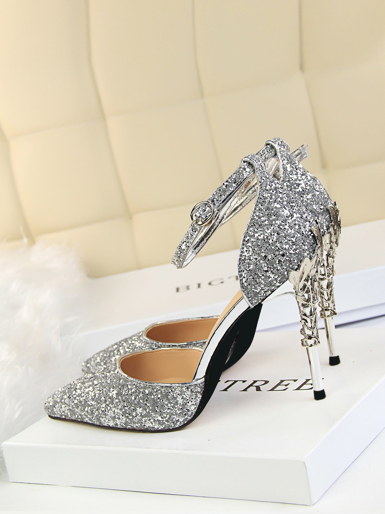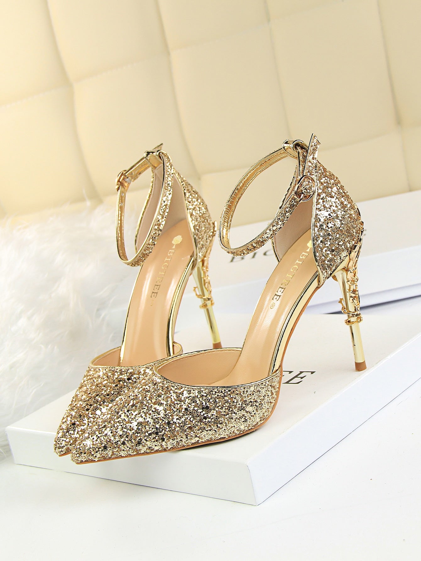 Glitter Ankle Strap Stiletto Heeled Pumps