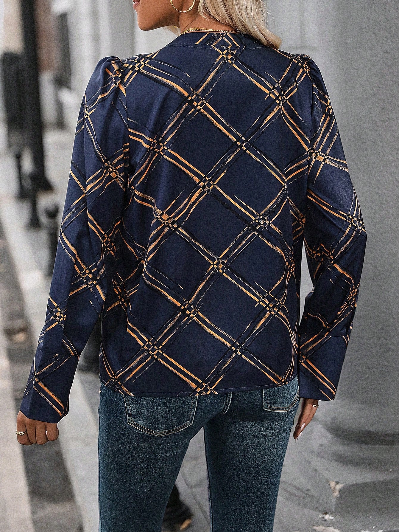 Graphic Print Puff Sleeve Blouse