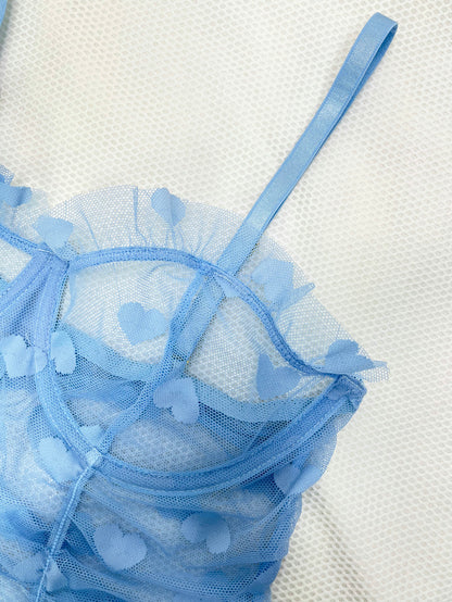 Heart Mesh Frill Trim Underwire Slips & Thong