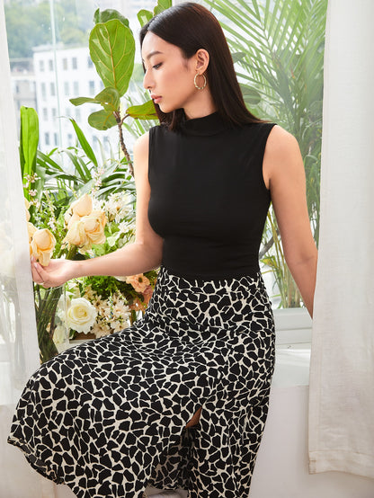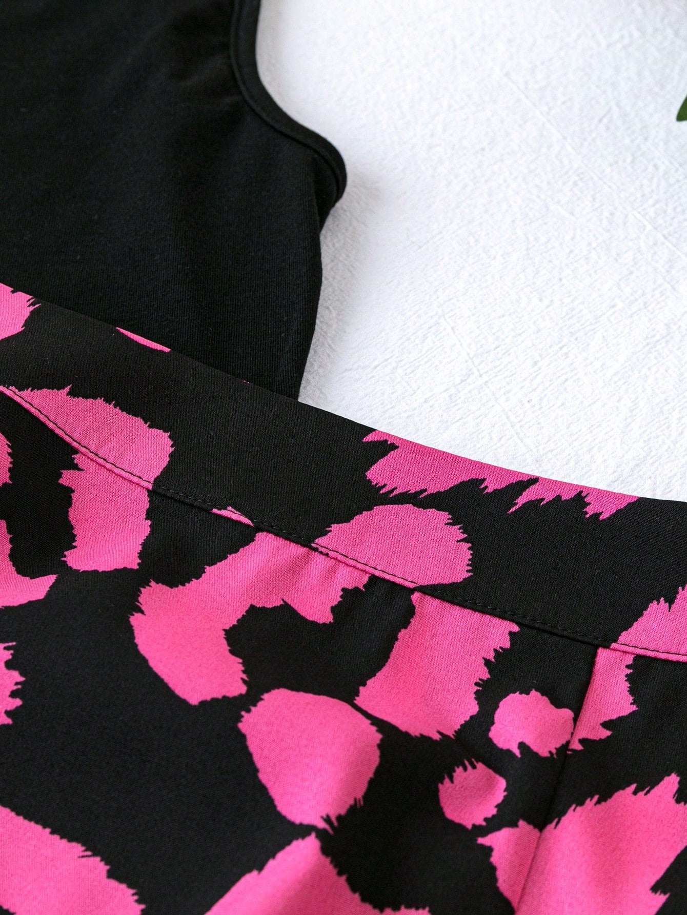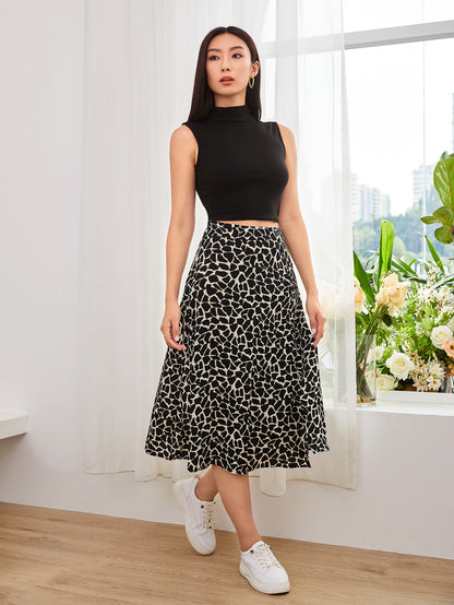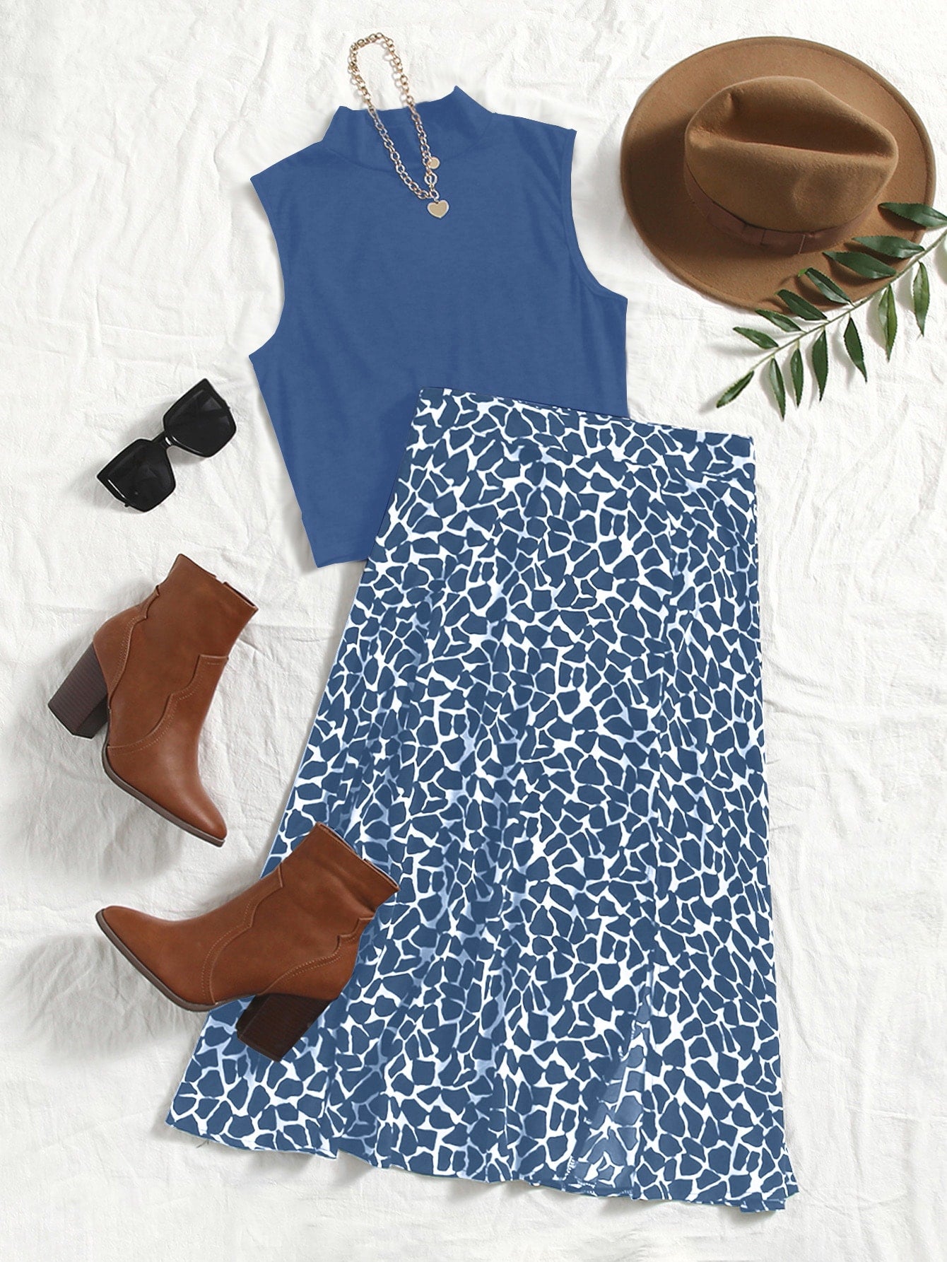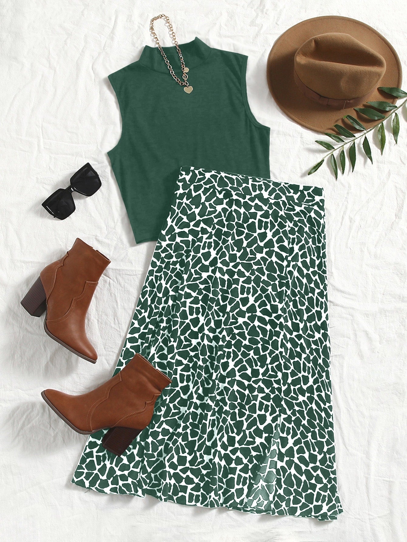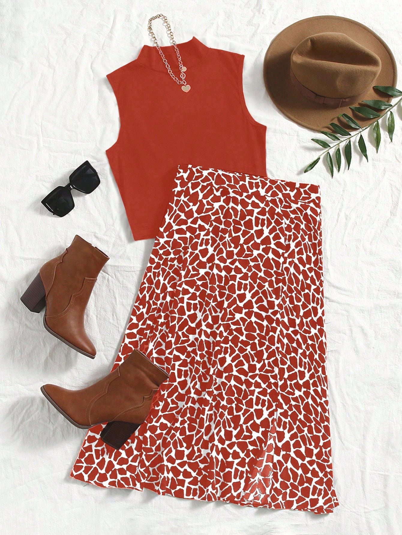 LUNE 2pcs/set Solid Color Vest And Printed Half Skirt