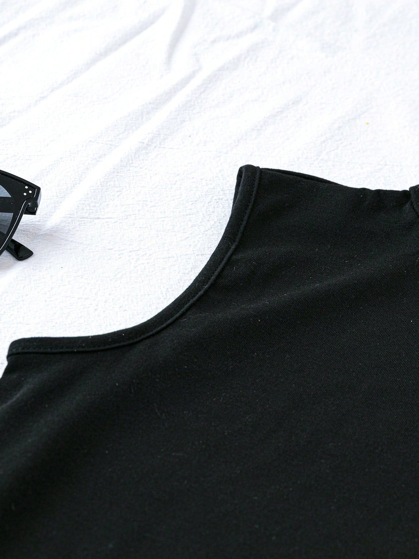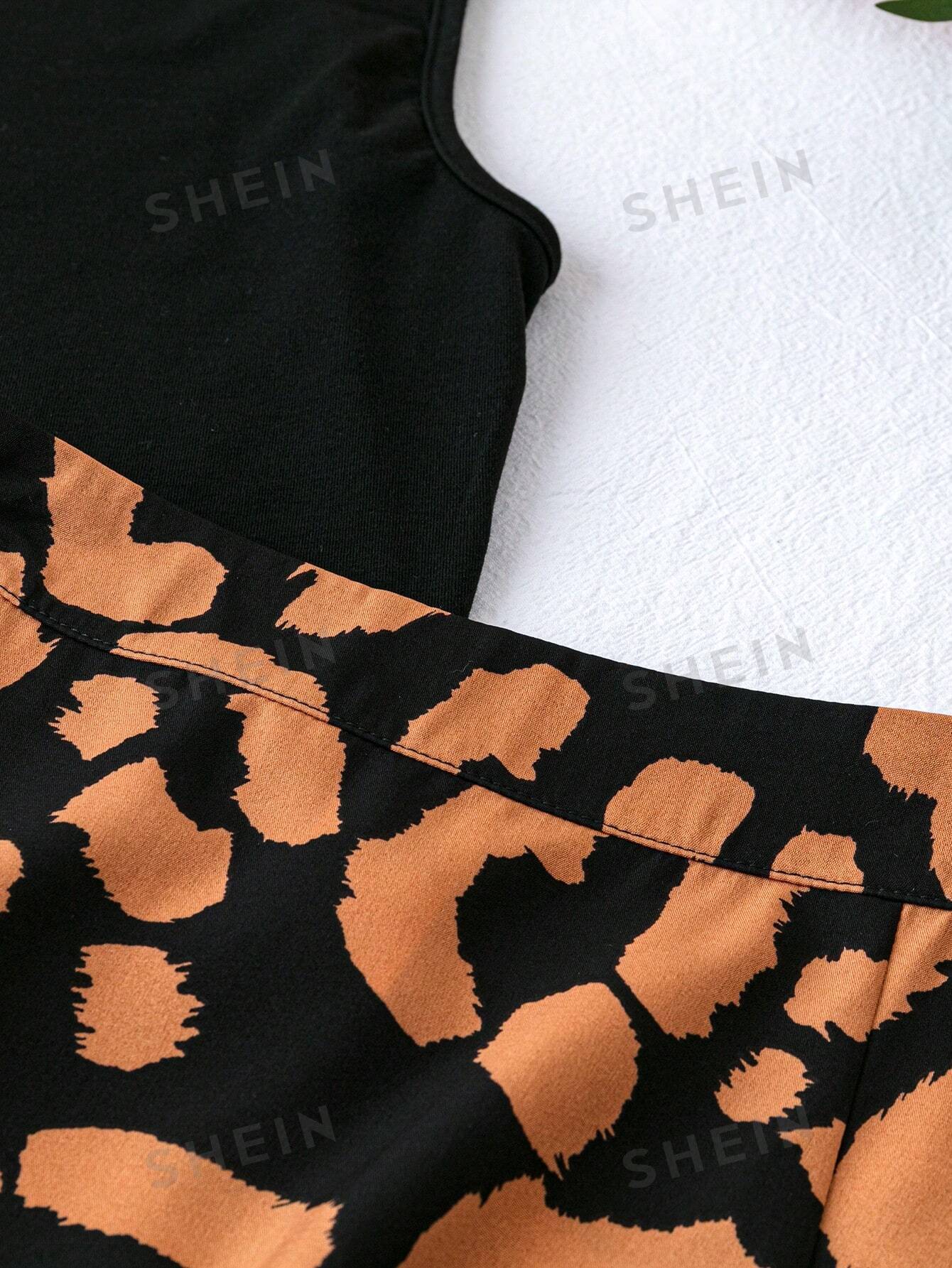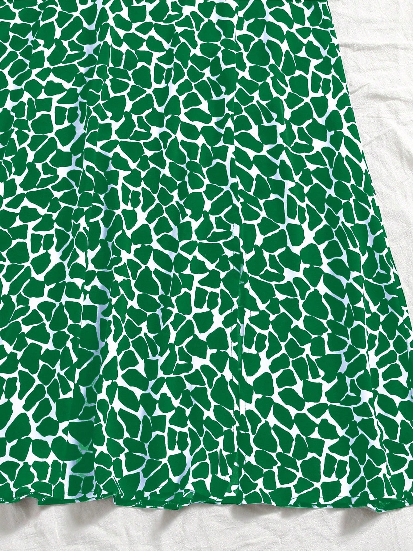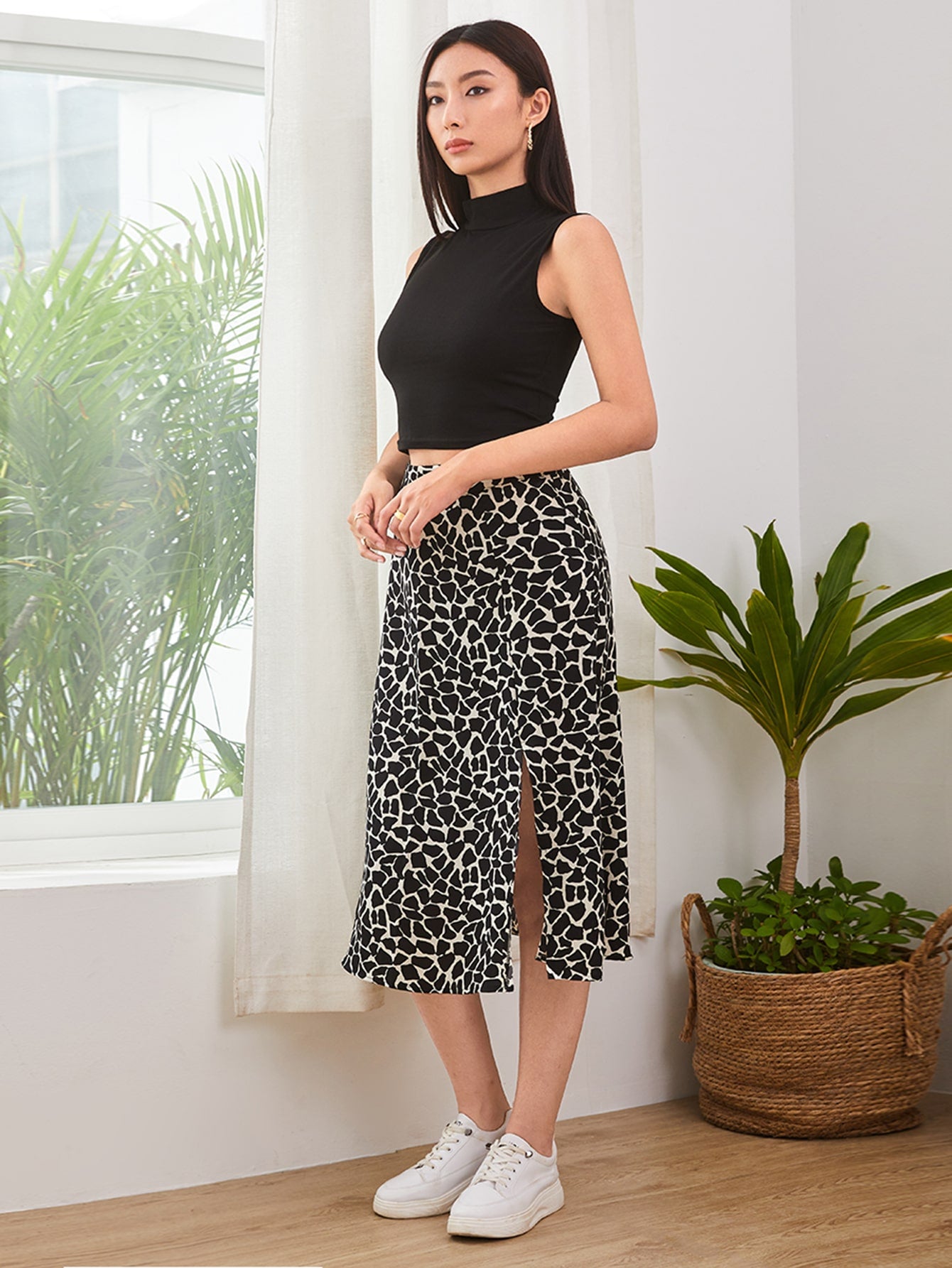 LUNE 2pcs/set Solid Color Vest And Printed Half Skirt