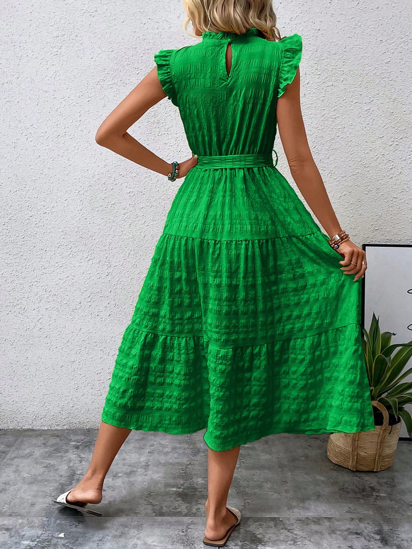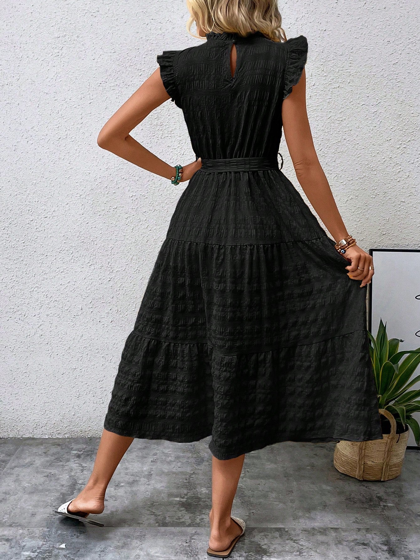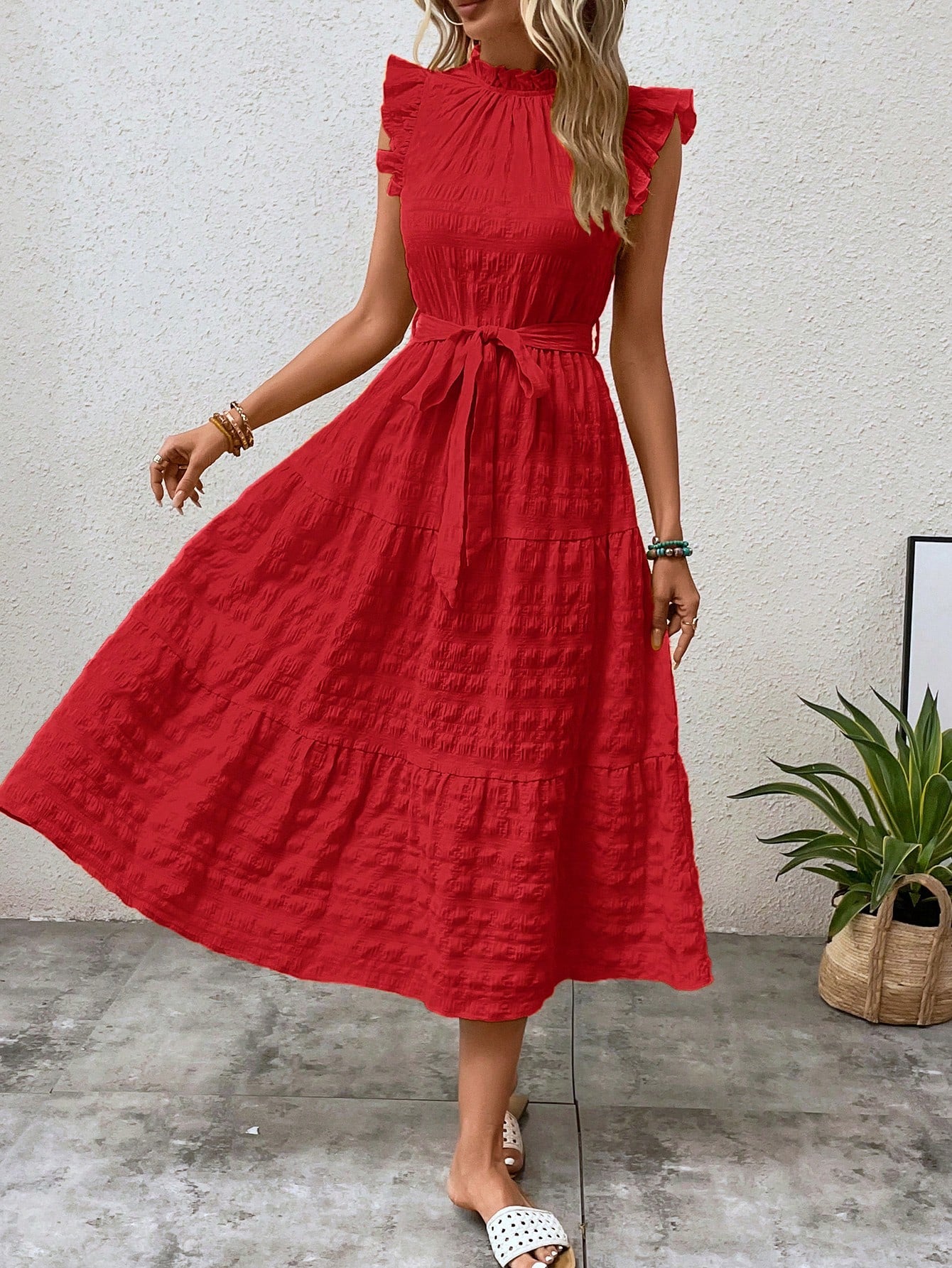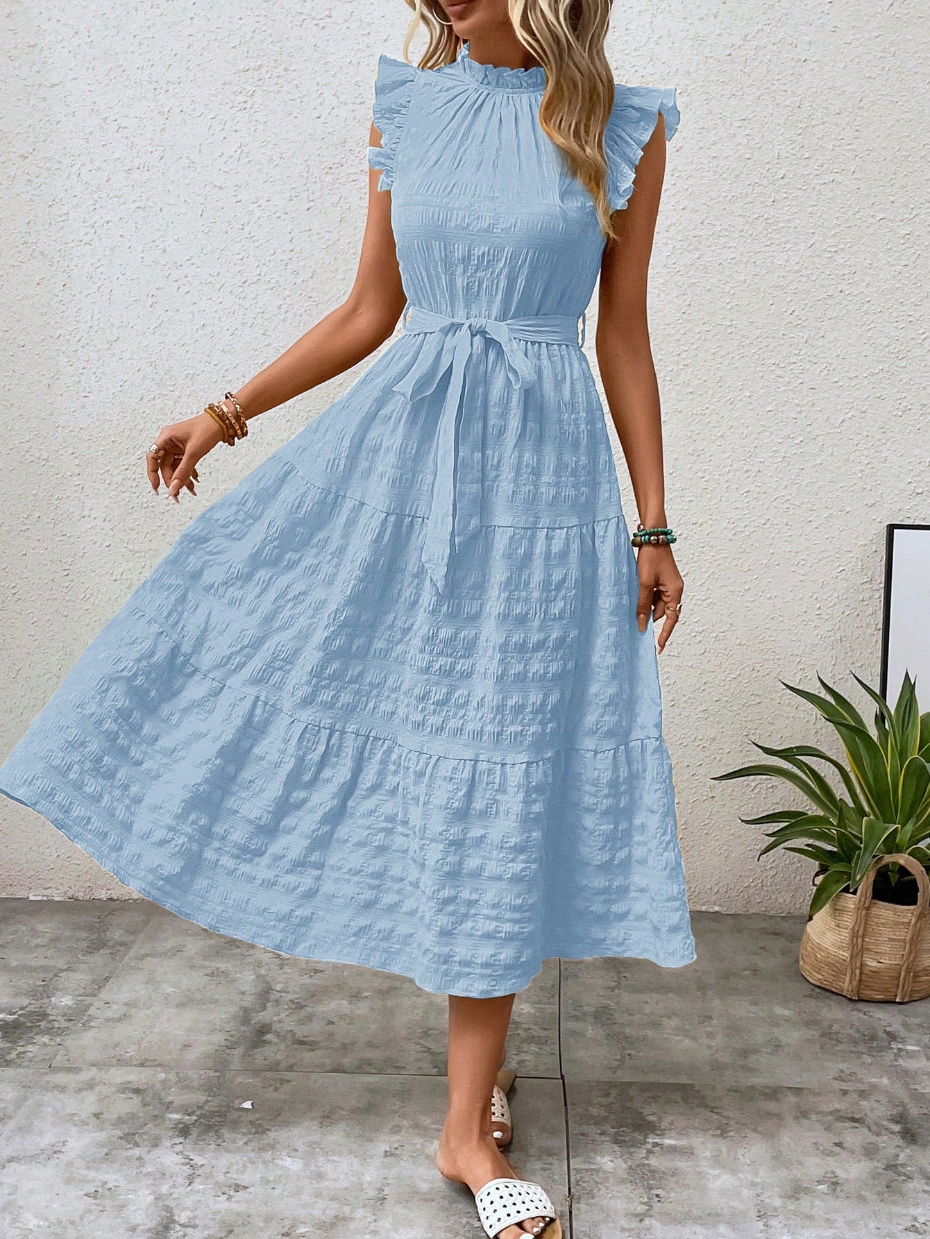 LUNE Frill Trim Ruffle Hem Belted Dress