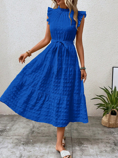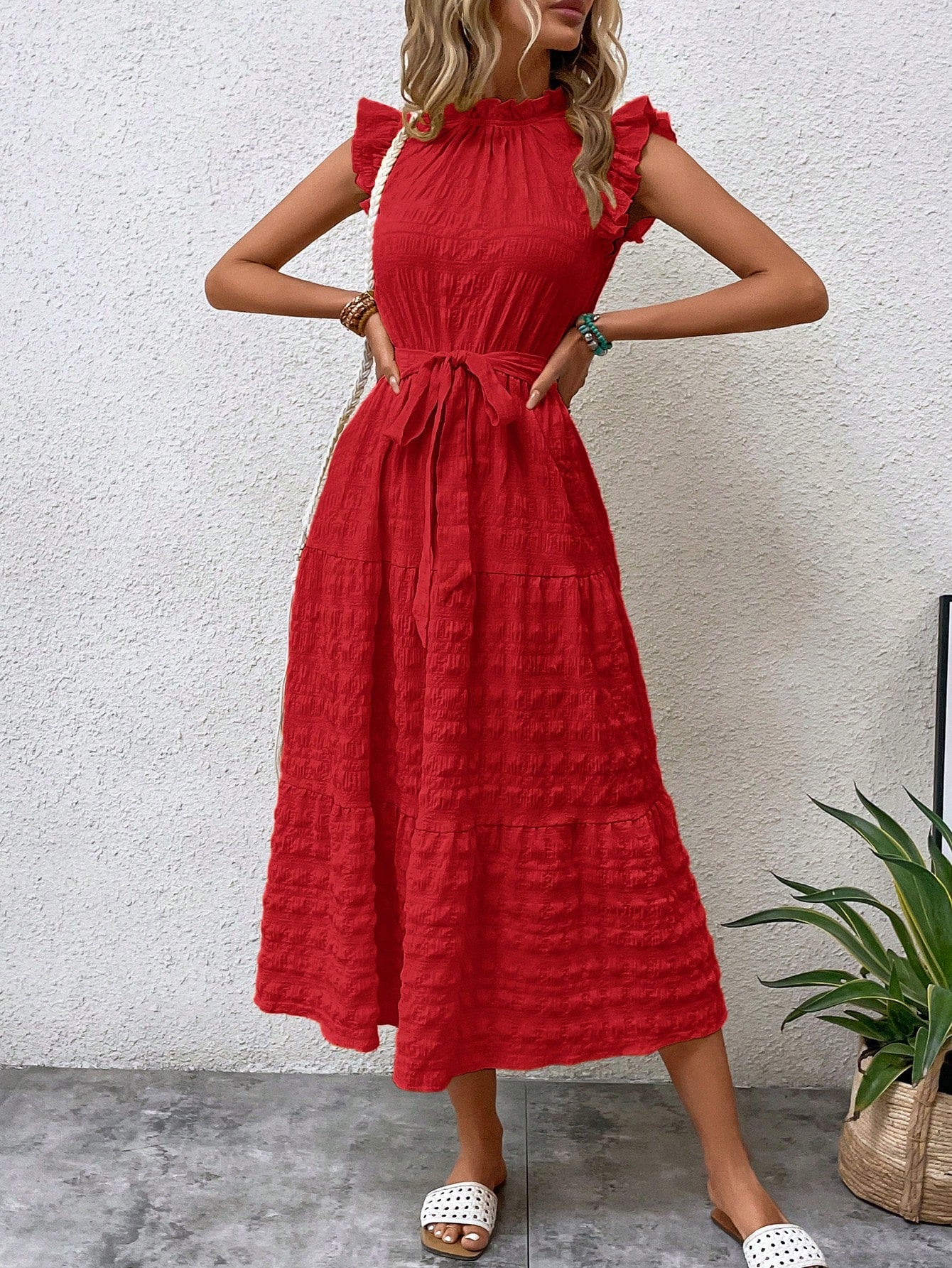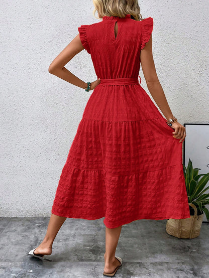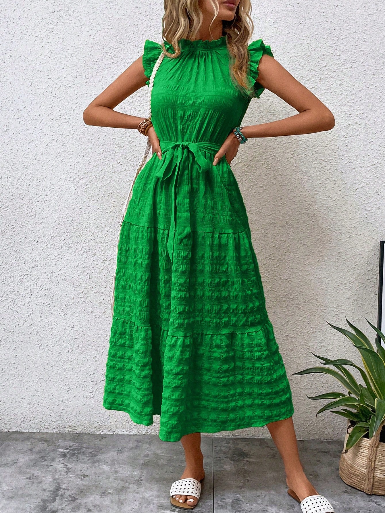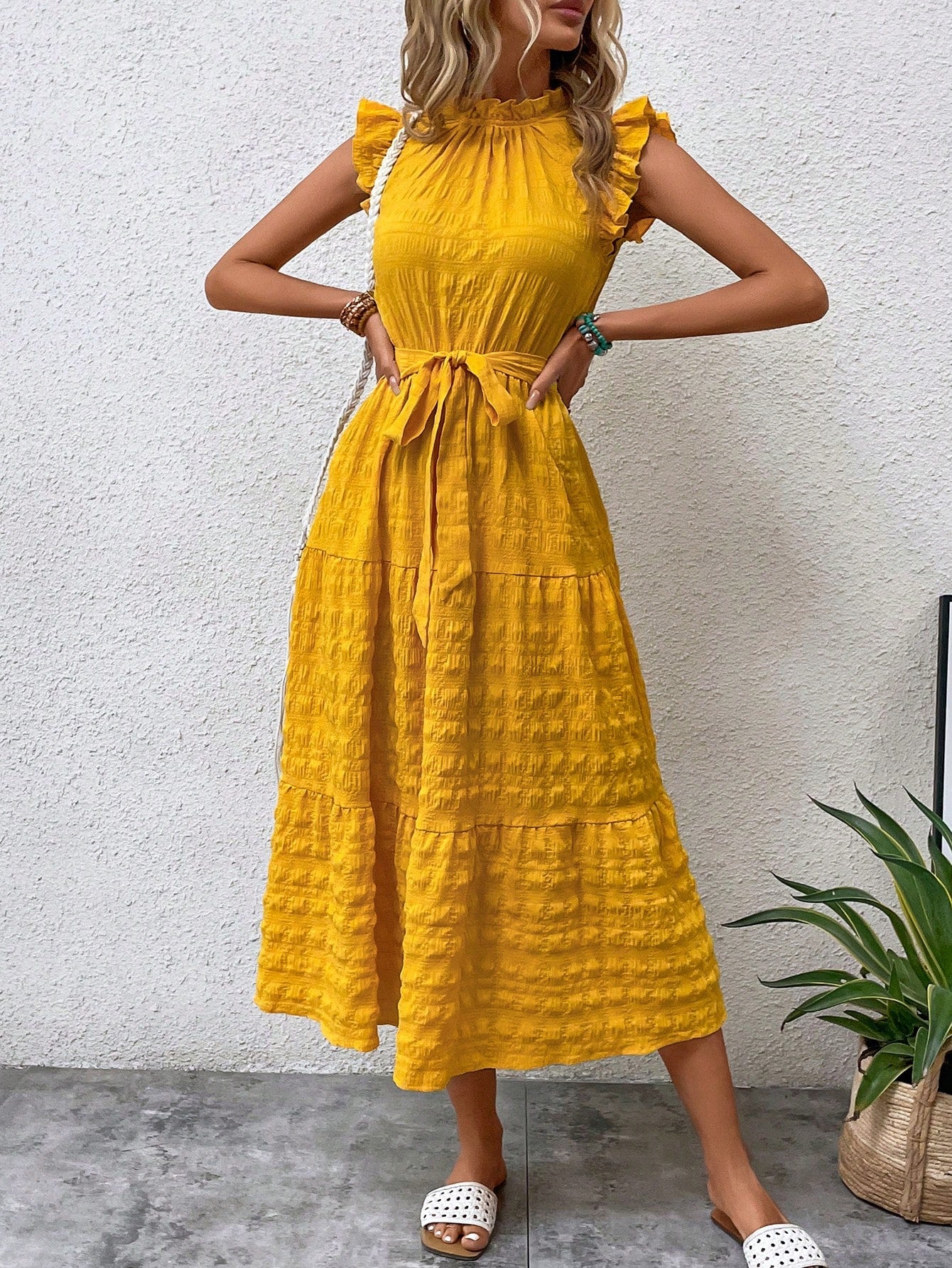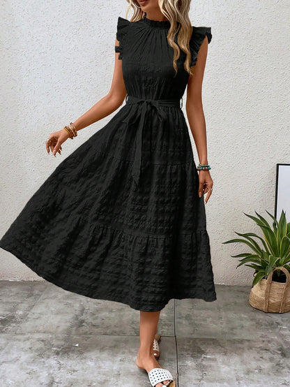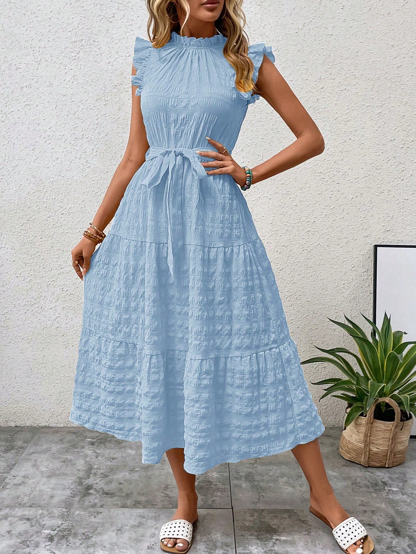 LUNE Frill Trim Ruffle Hem Belted Dress