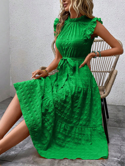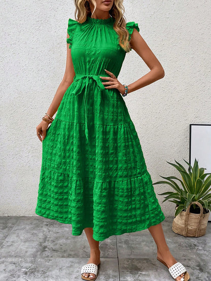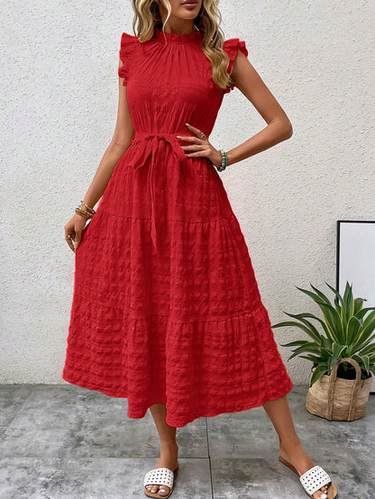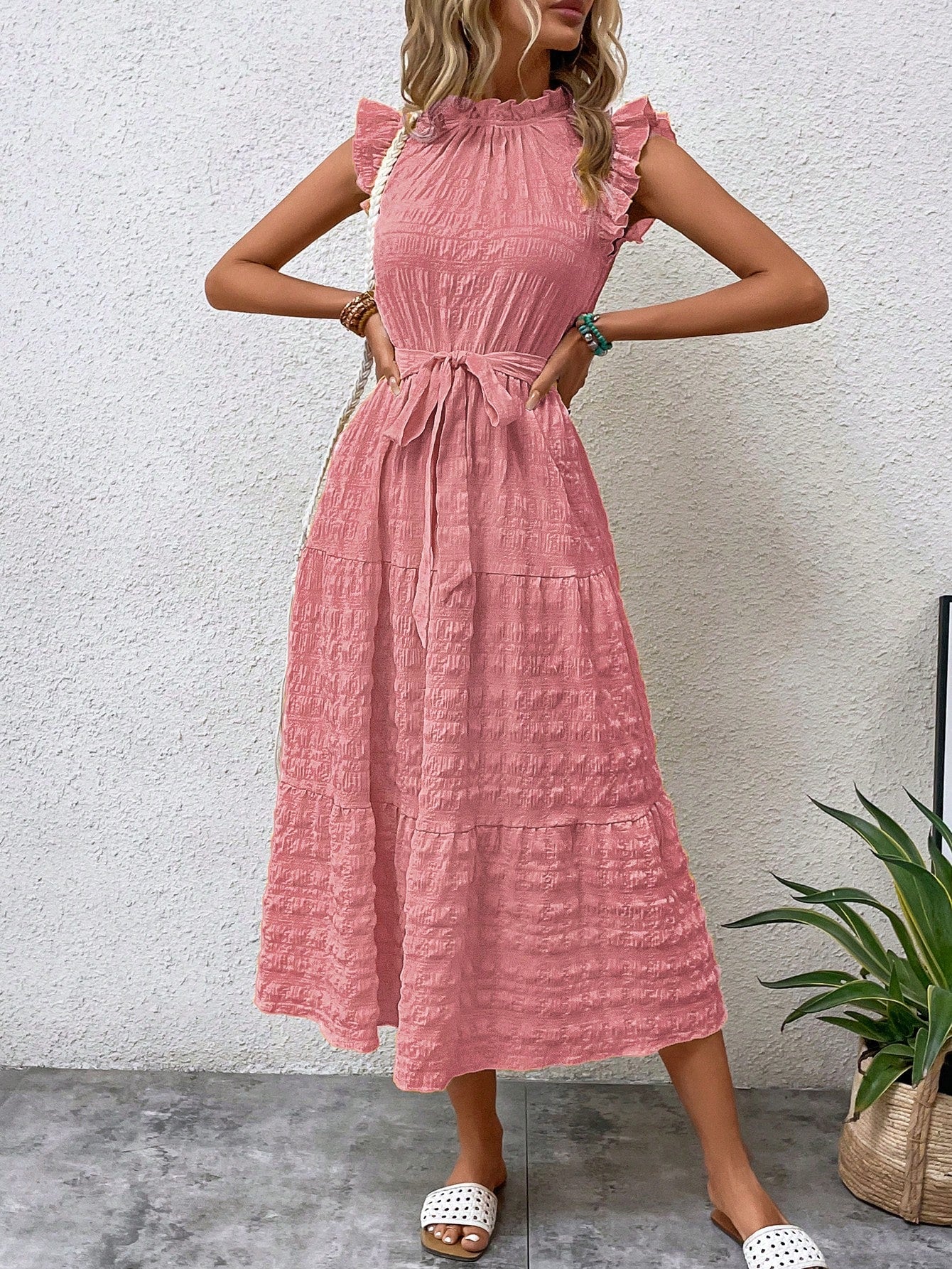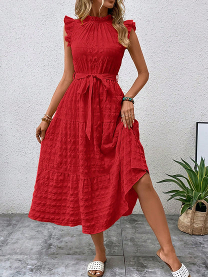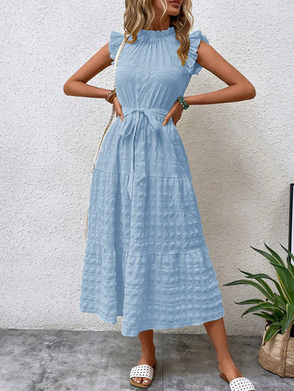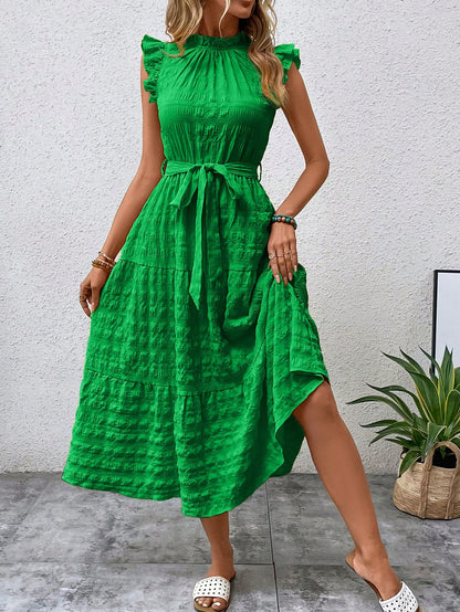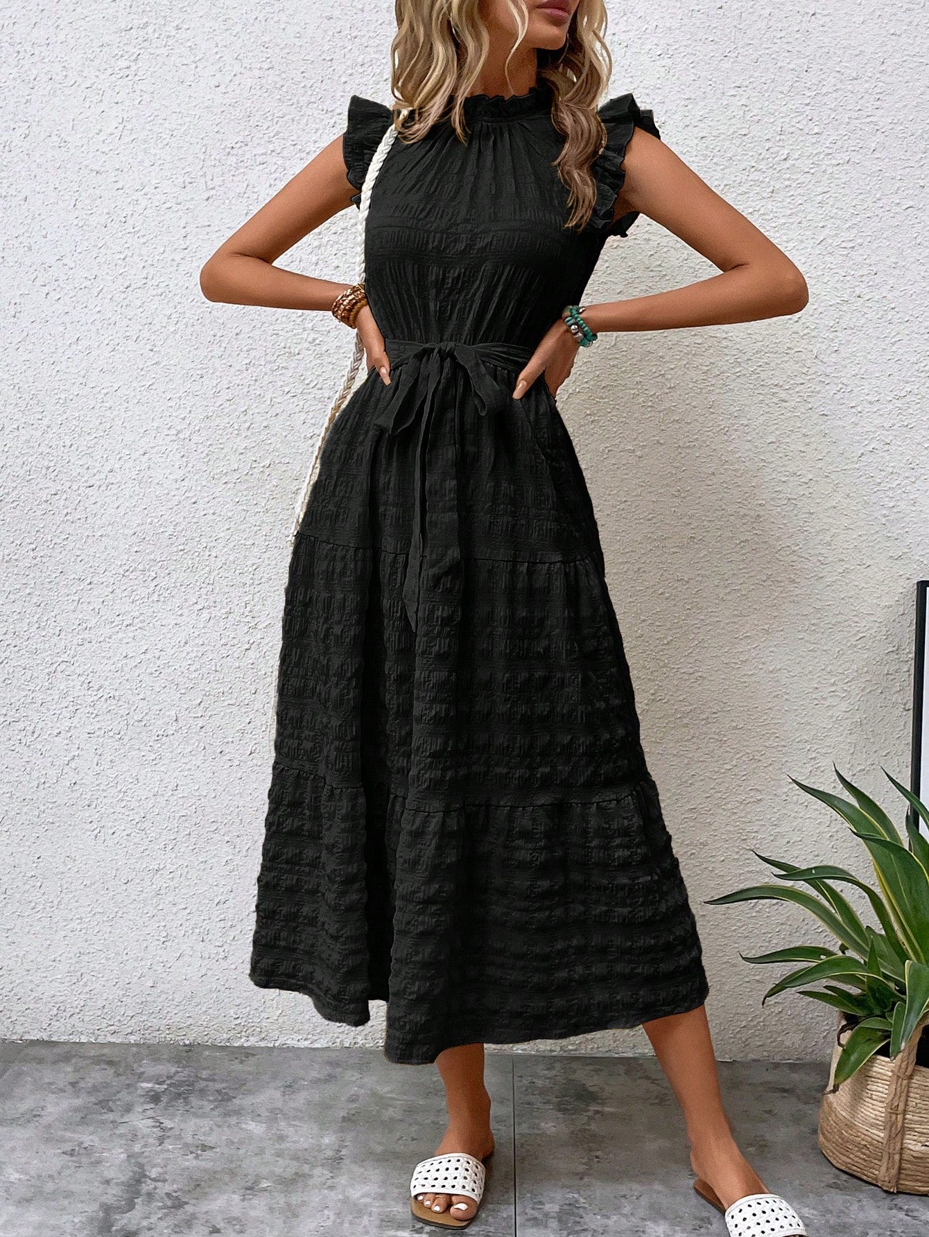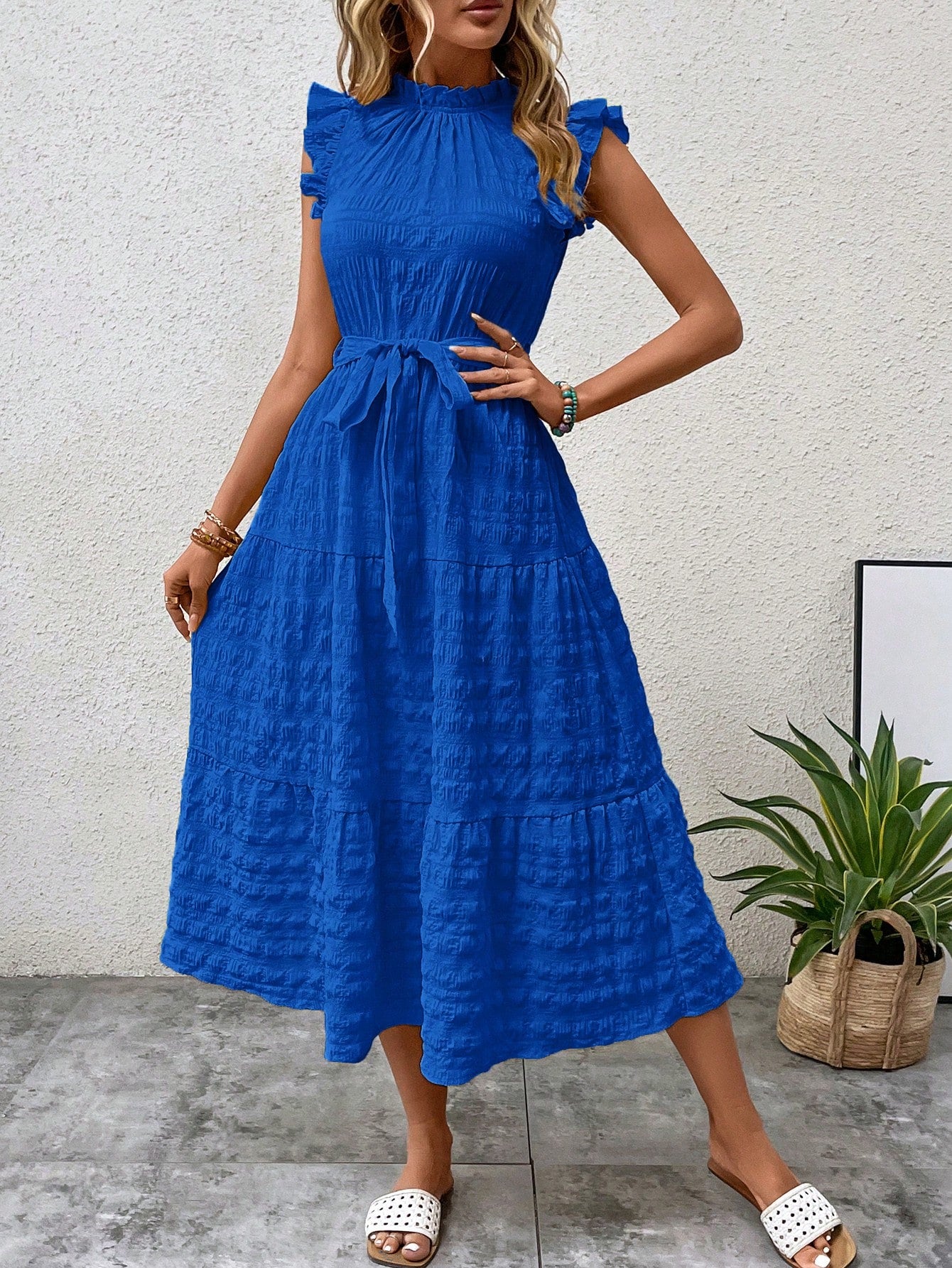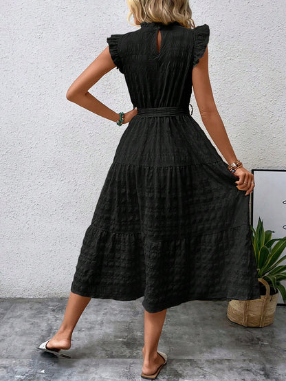 LUNE Frill Trim Ruffle Hem Belted Dress