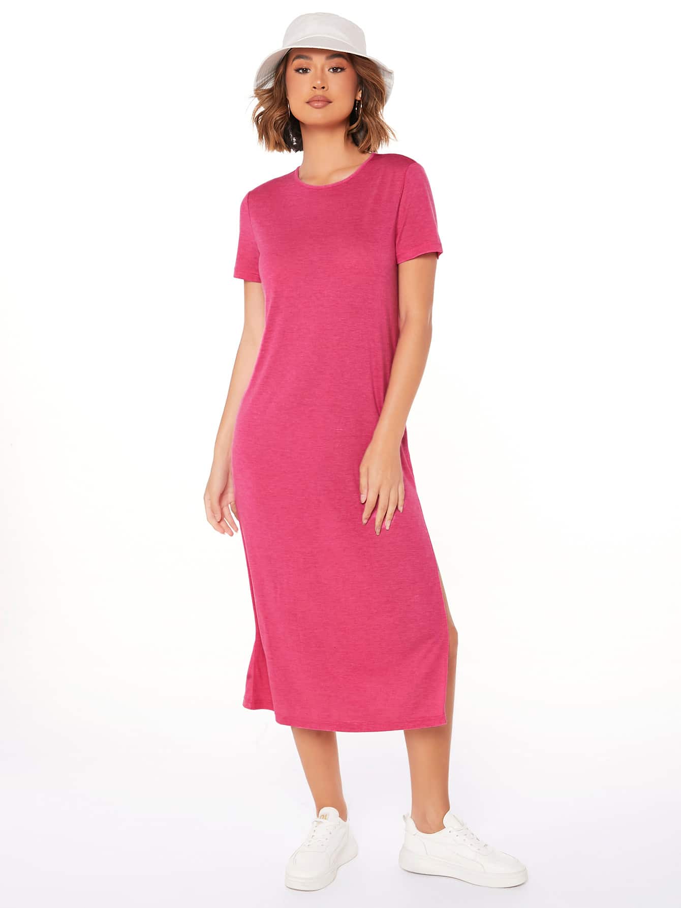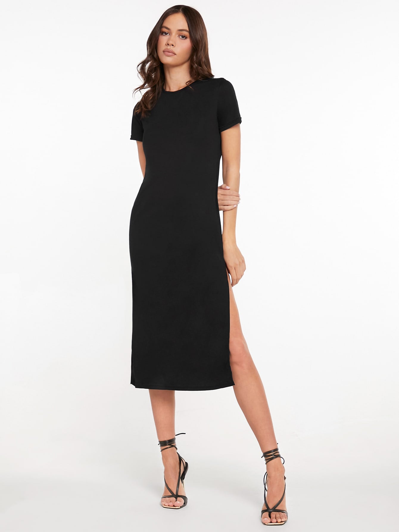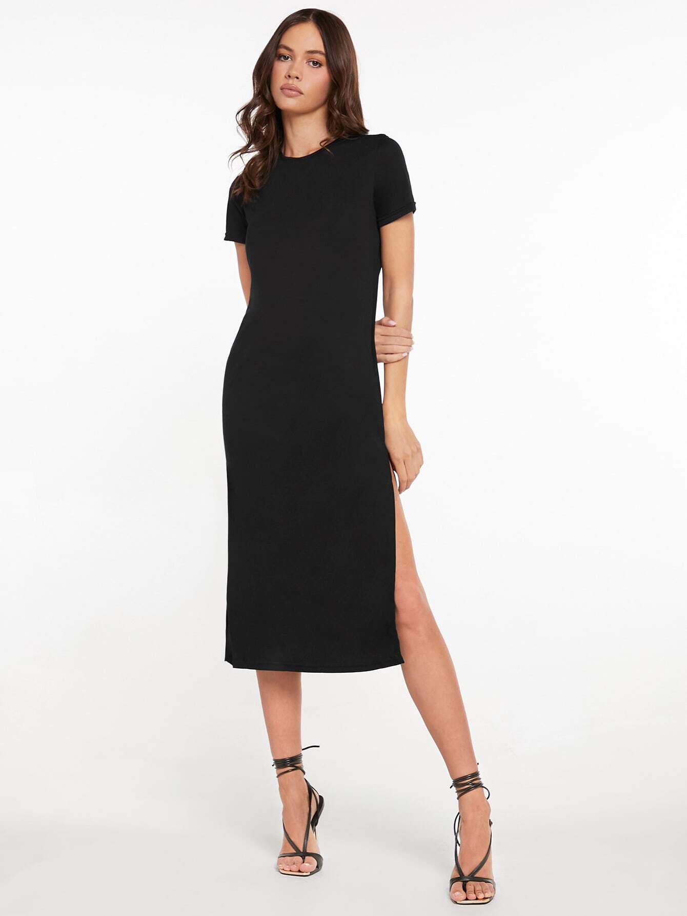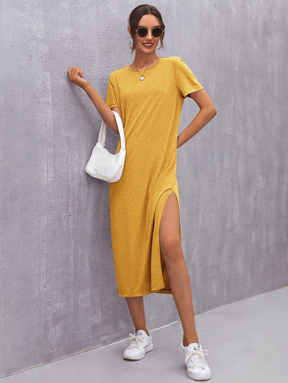 LUNE High Split Solid Dress