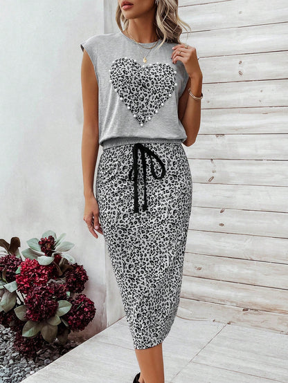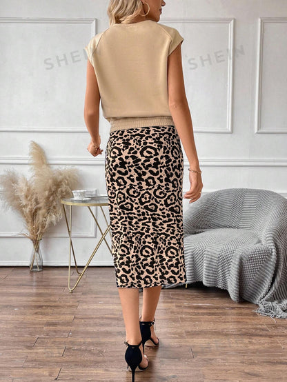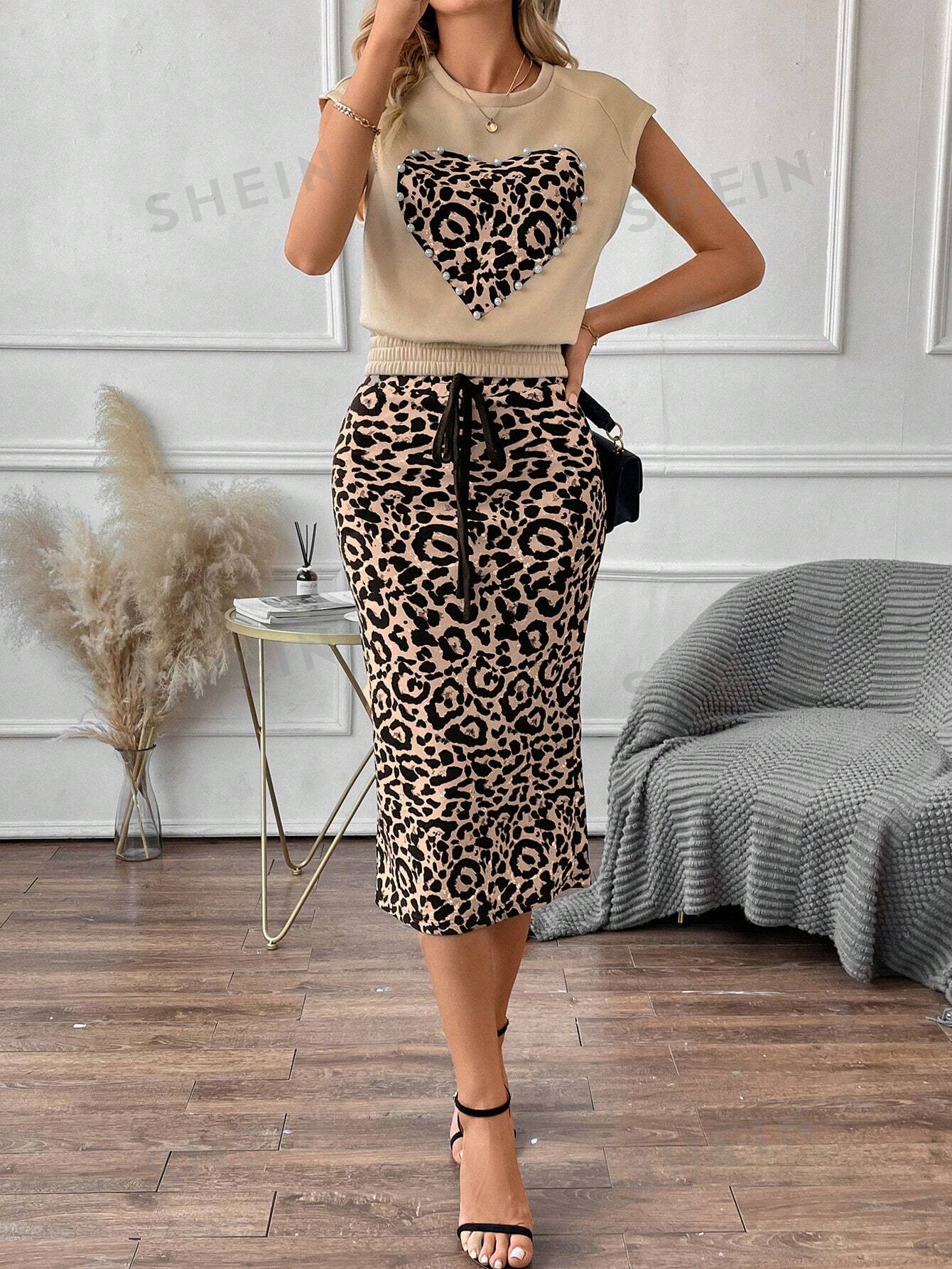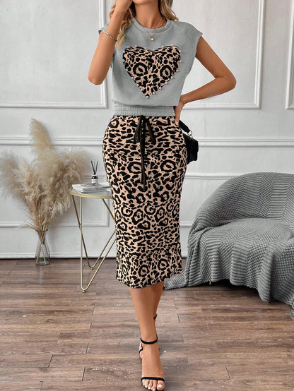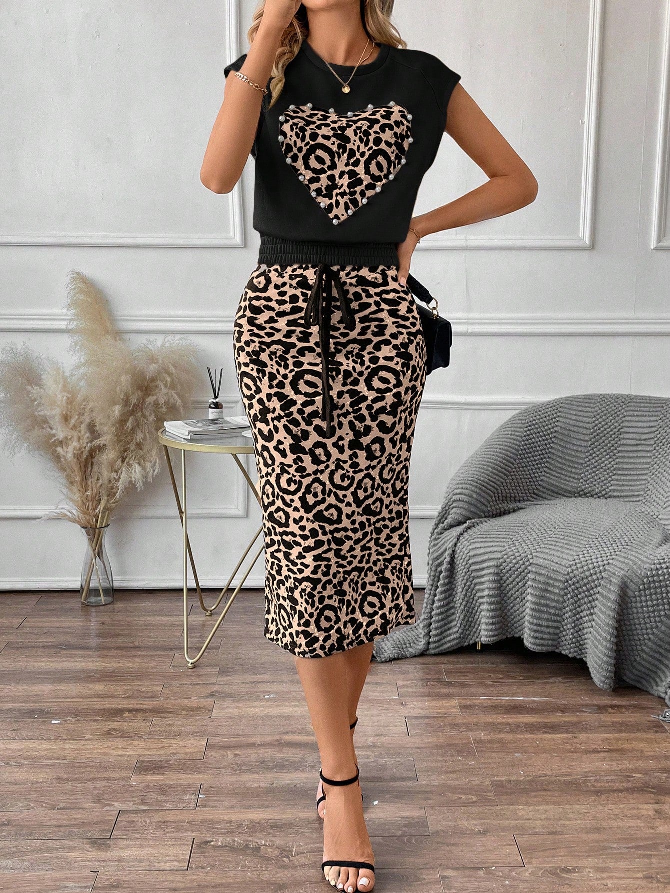 LUNE Leopard Print Top & Drawstring Waist Skirt