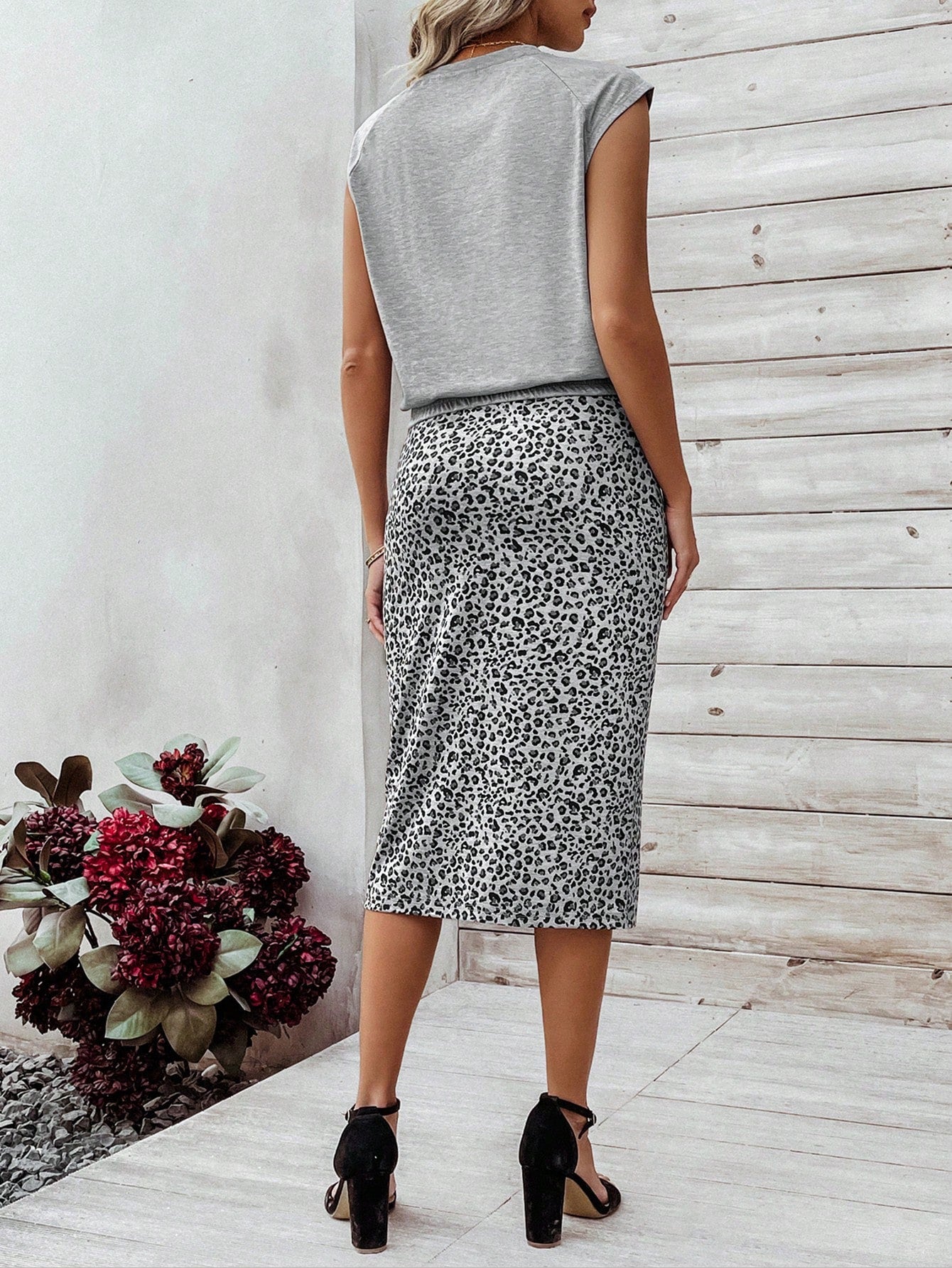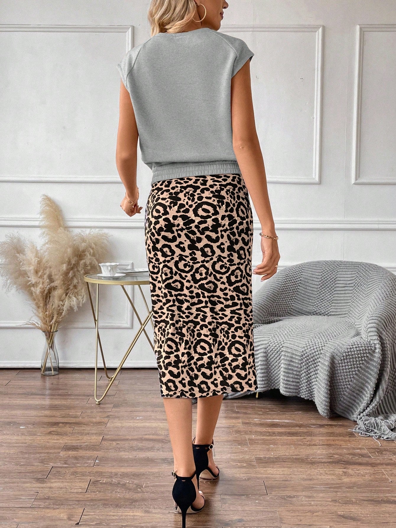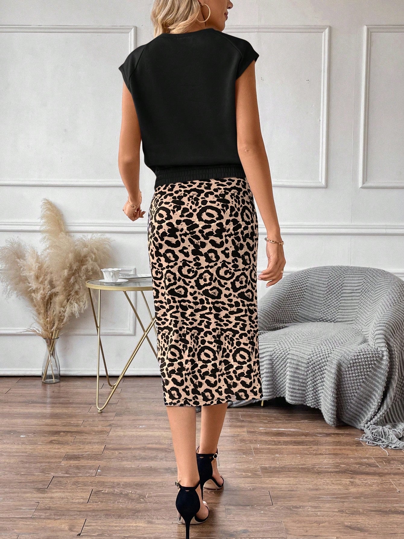 LUNE Leopard Print Top & Drawstring Waist Skirt