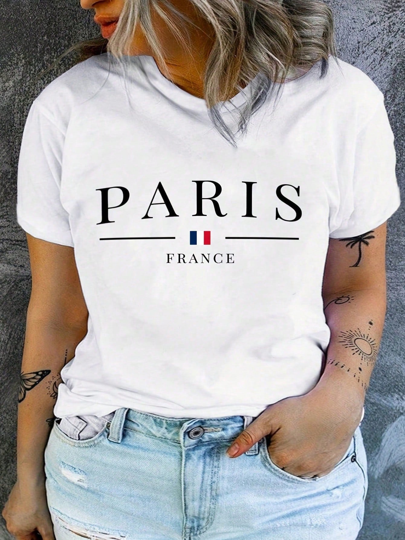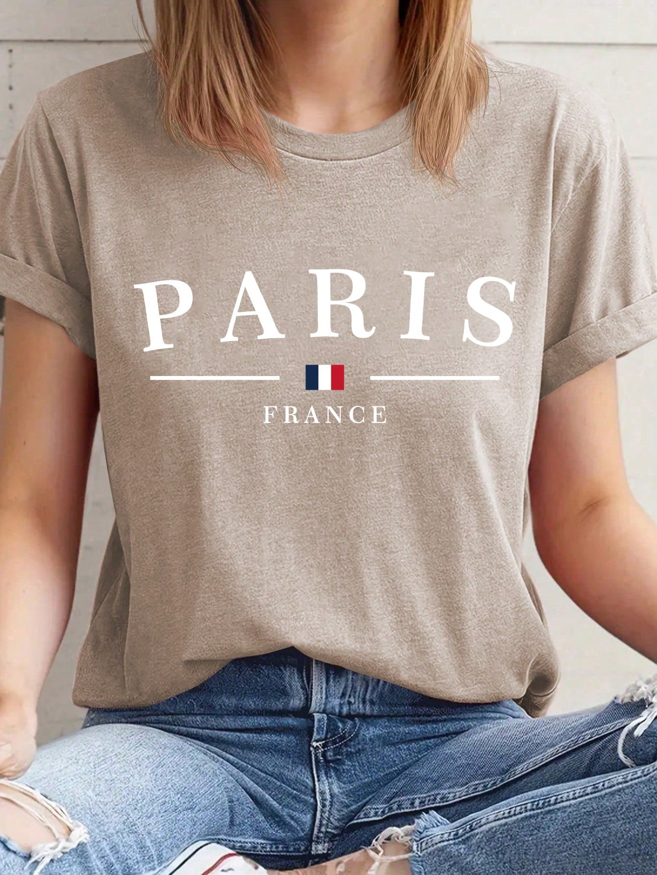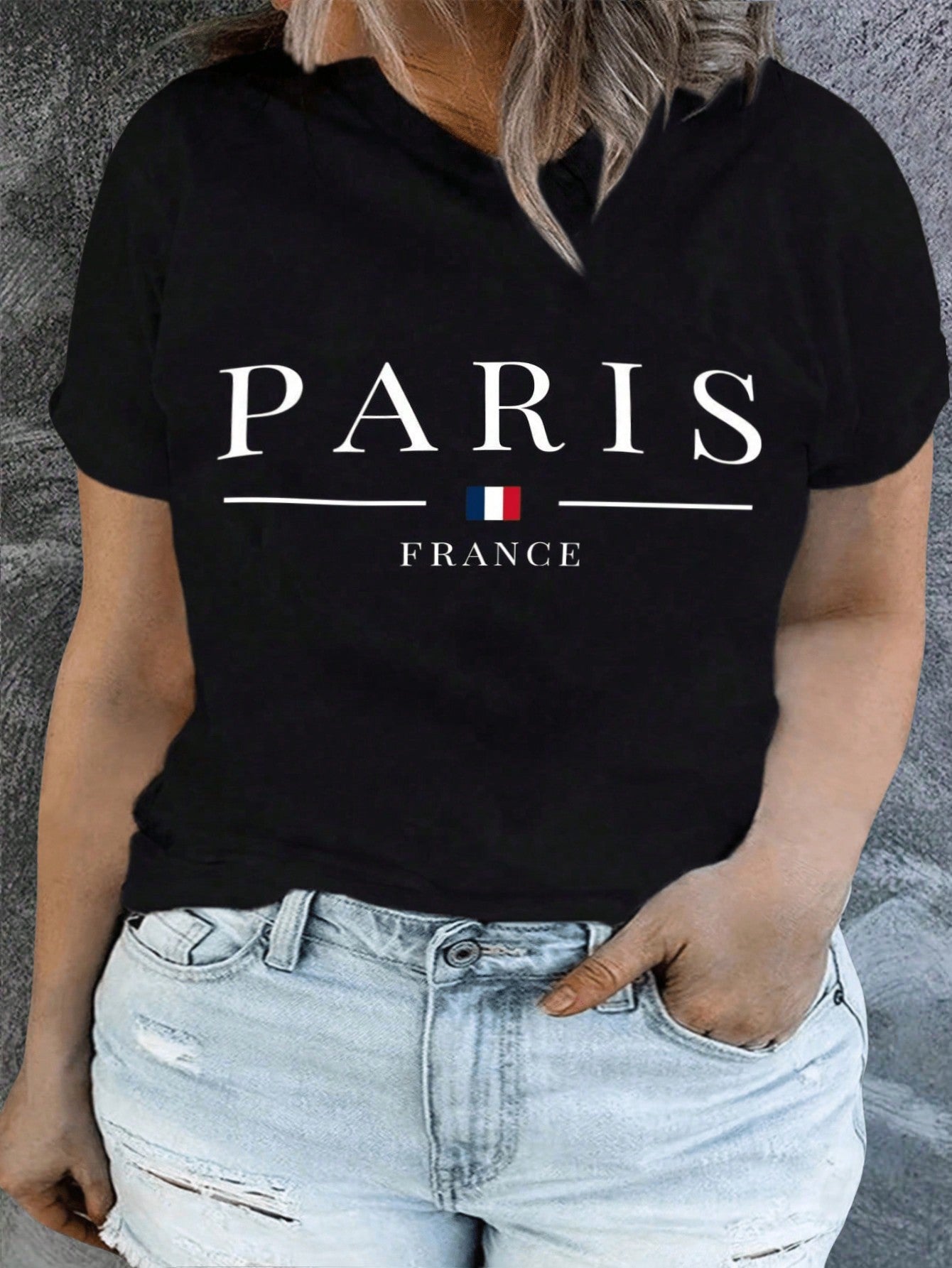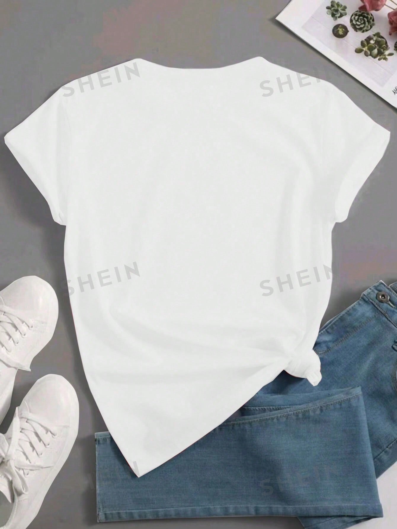 LUNE Plus Size Women Summer Round Neck Short Sleeve Casual T-Shirt With Letter Print