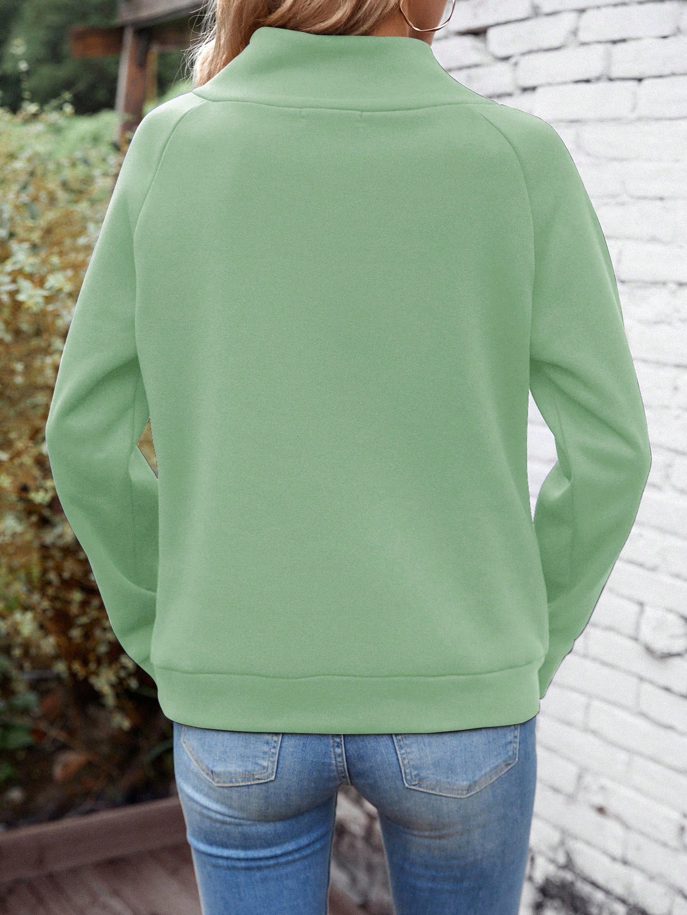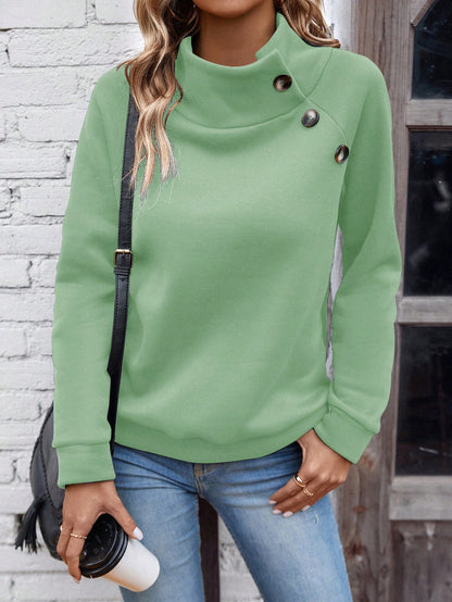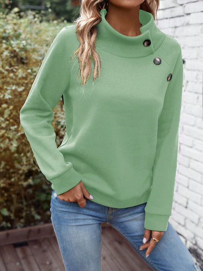 LUNE Women's Solid Color Stand Collar Raglan Sleeve Button Design Casual Fleece Hooded Sweatshirt, Autumn/Winter