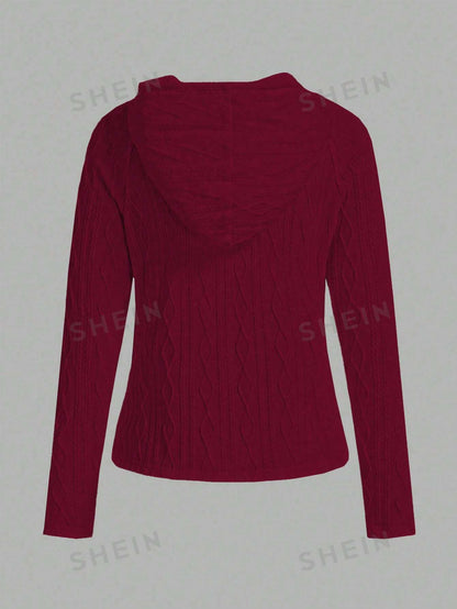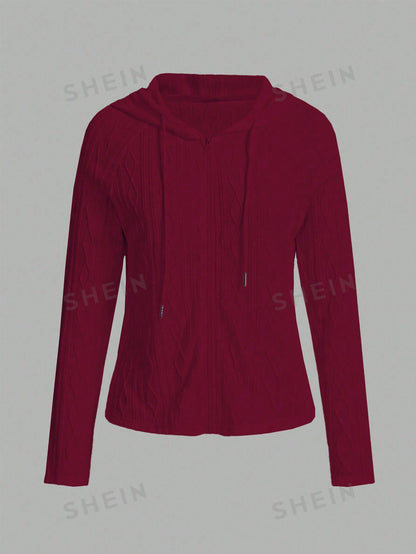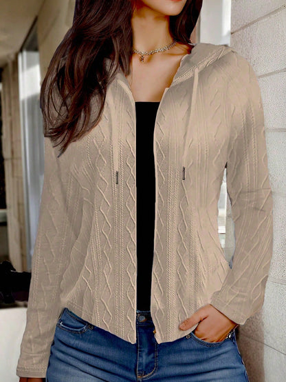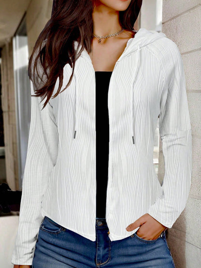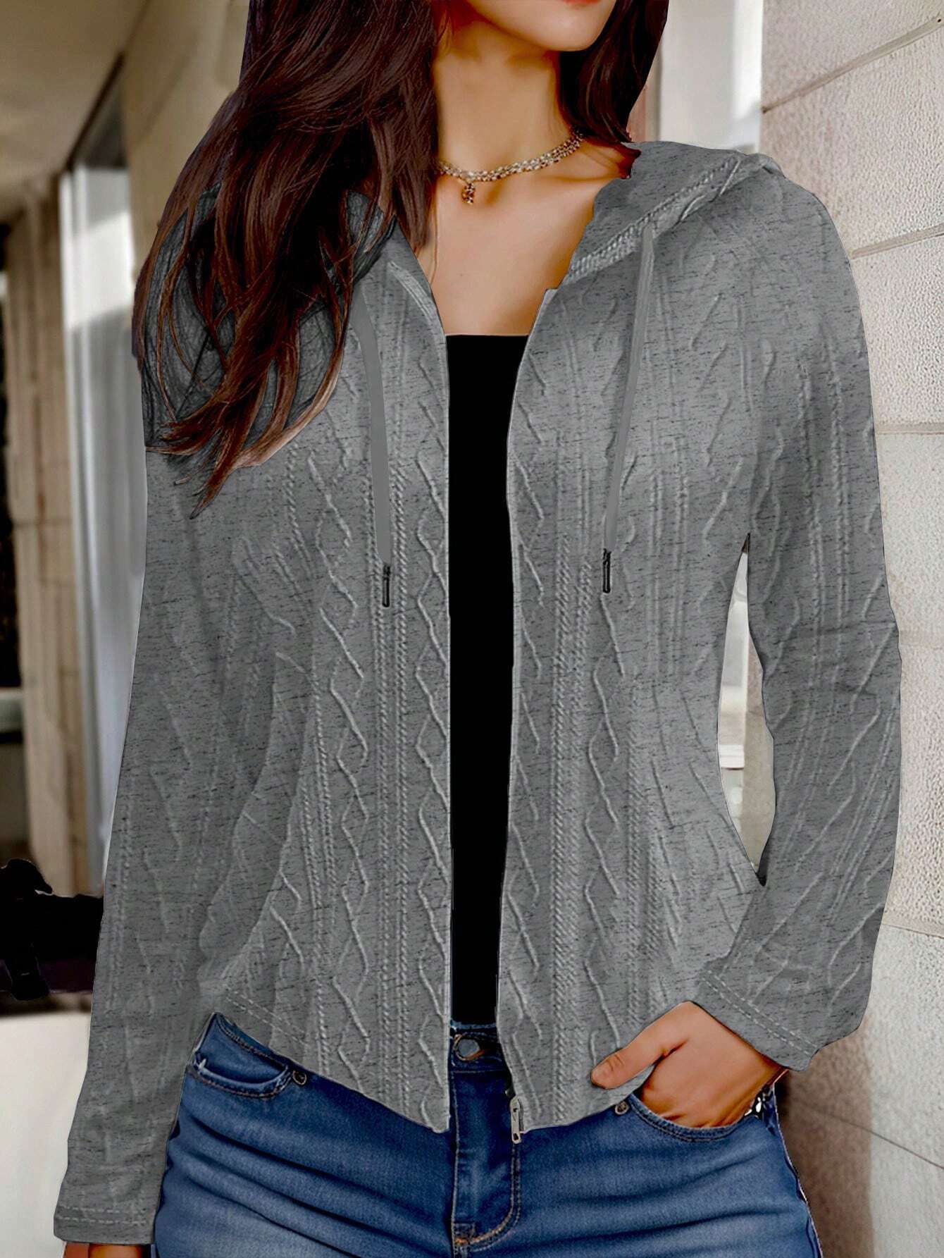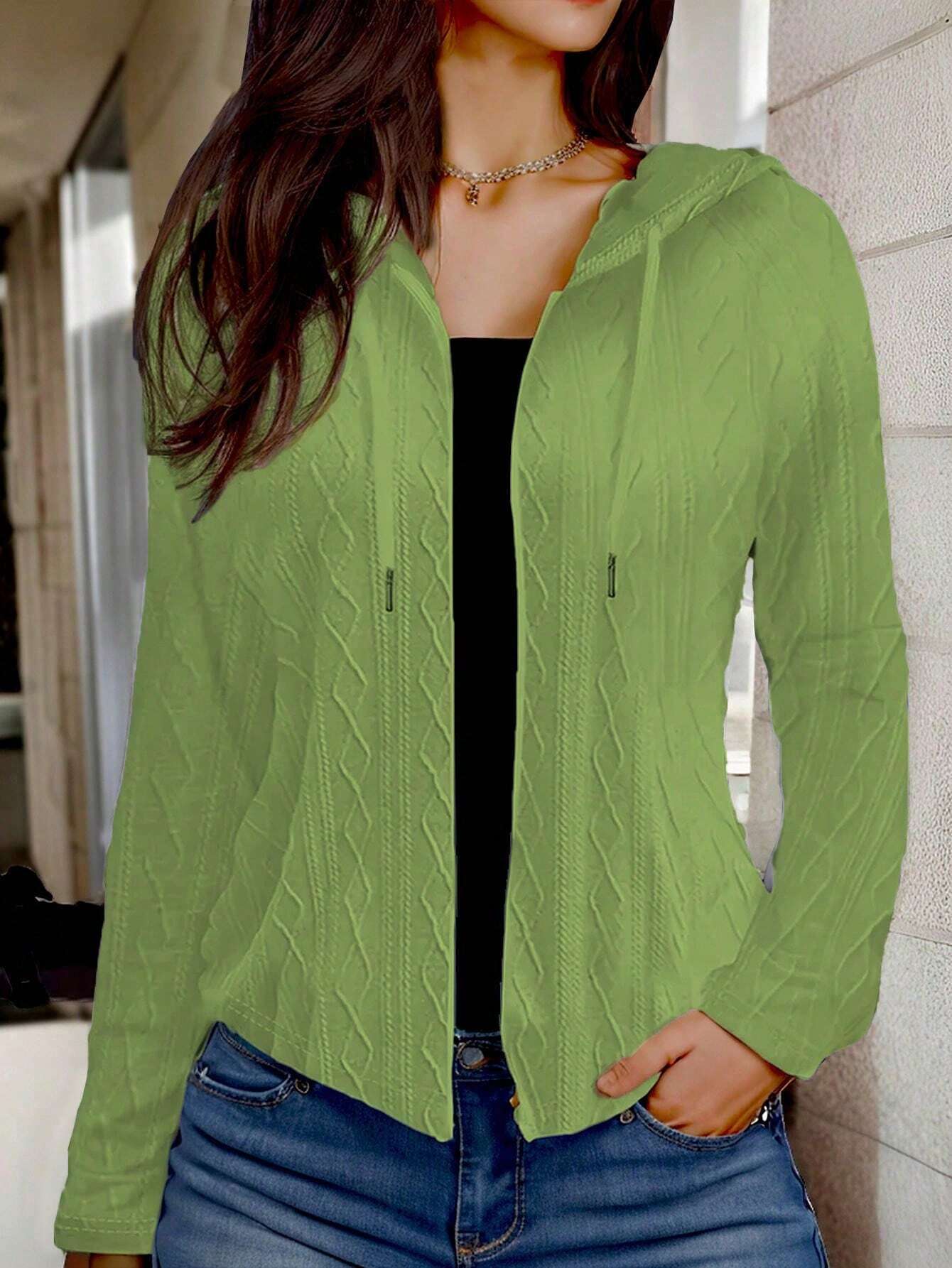 LUNE Women's Zipper Solid Color Drawstring Hooded Long Sleeve Regular Jacket