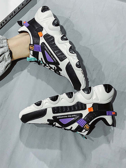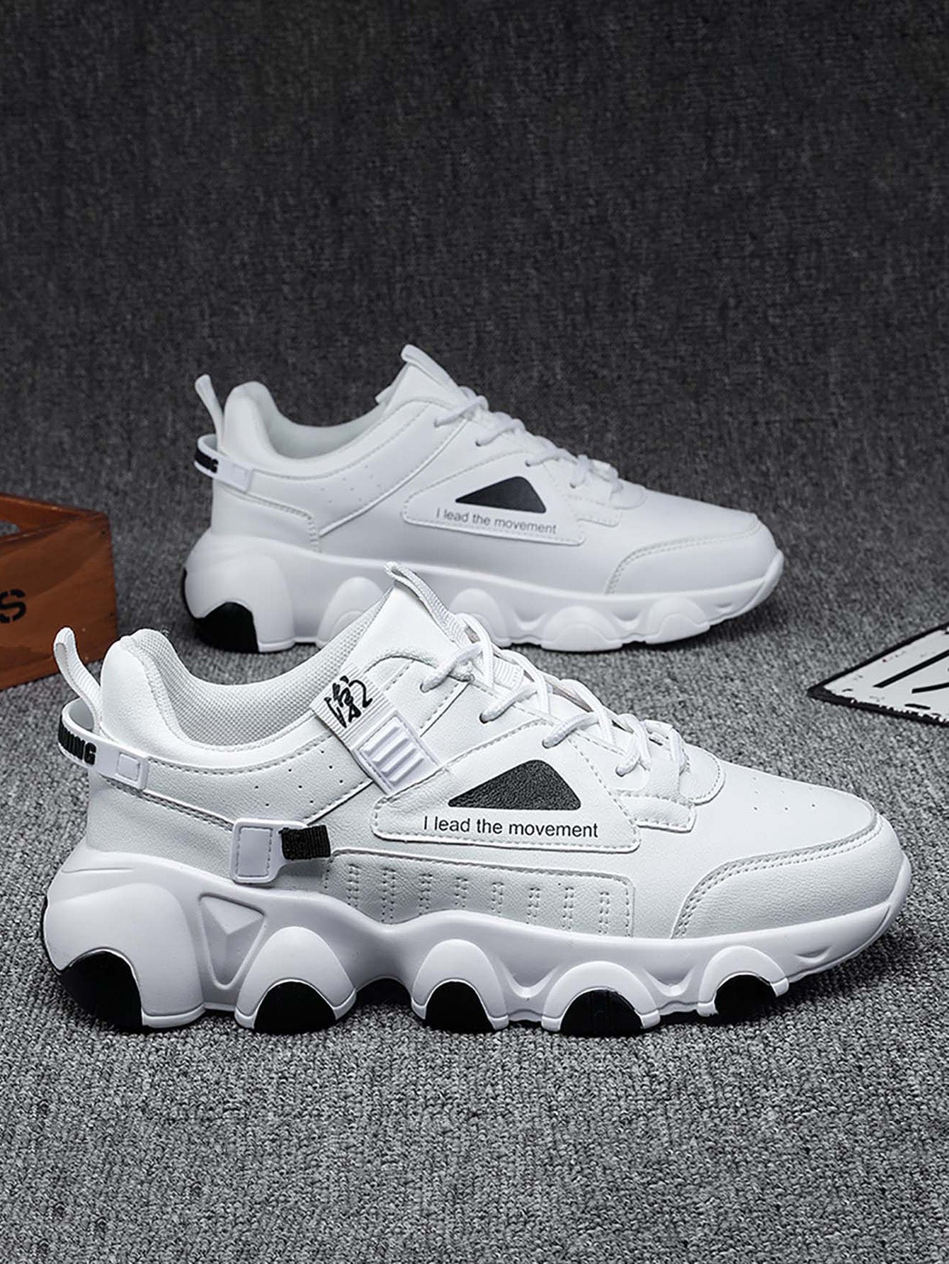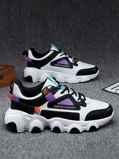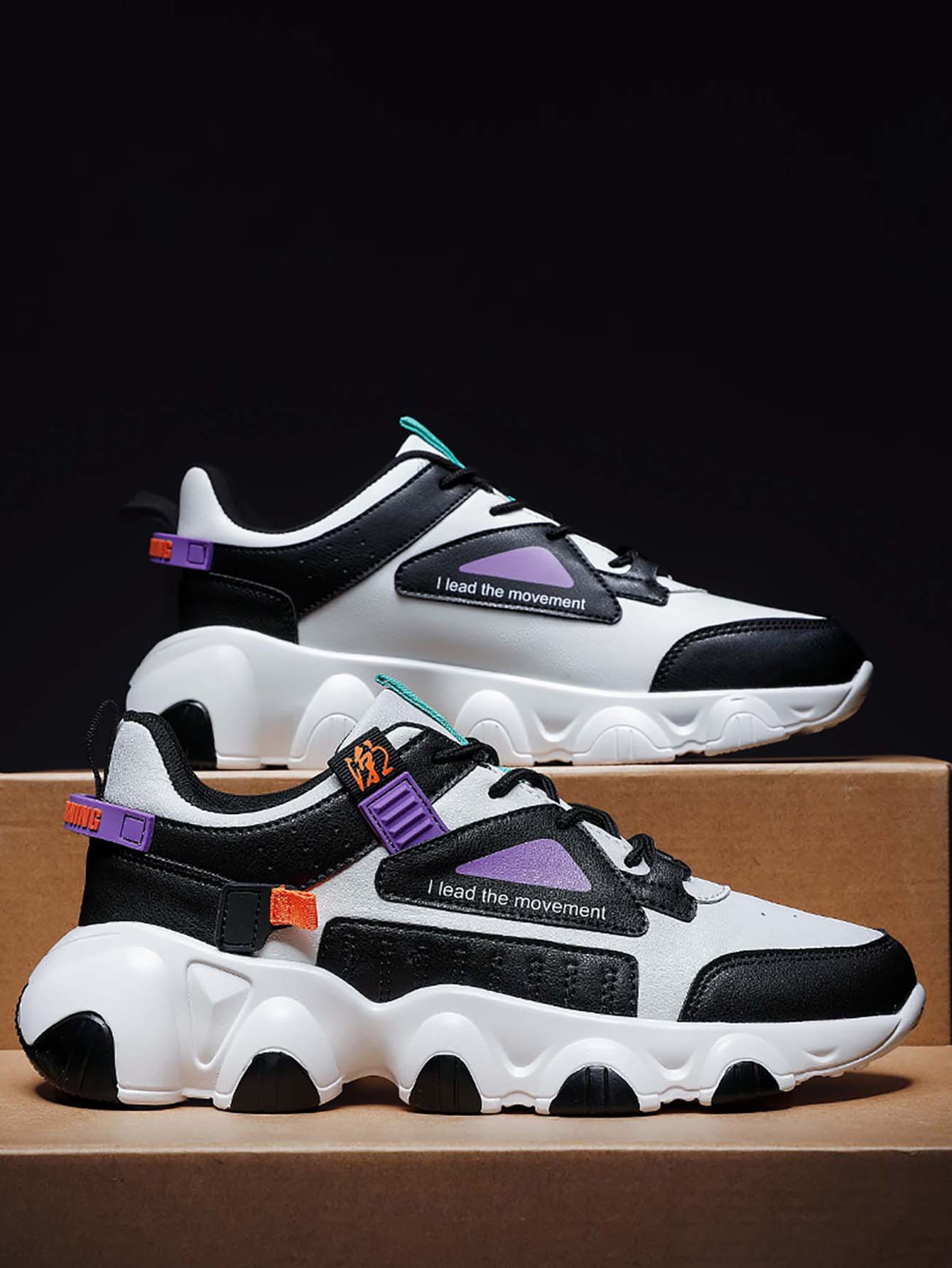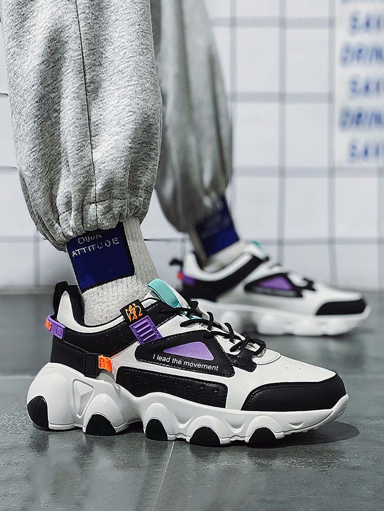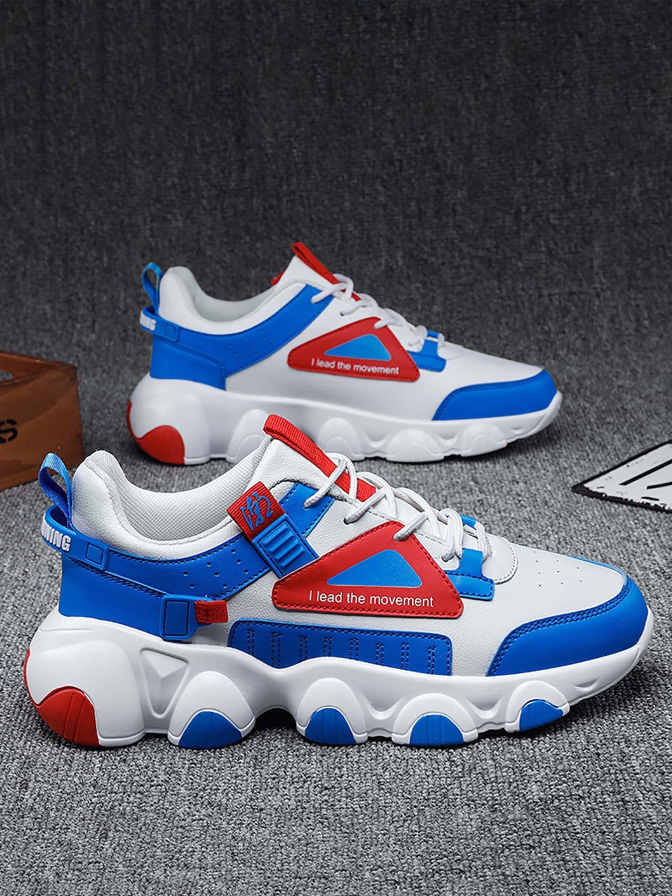 Men Colorblock Slogan Graphic Lace-up Front Chunky Sneakers