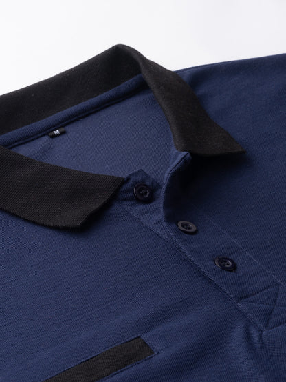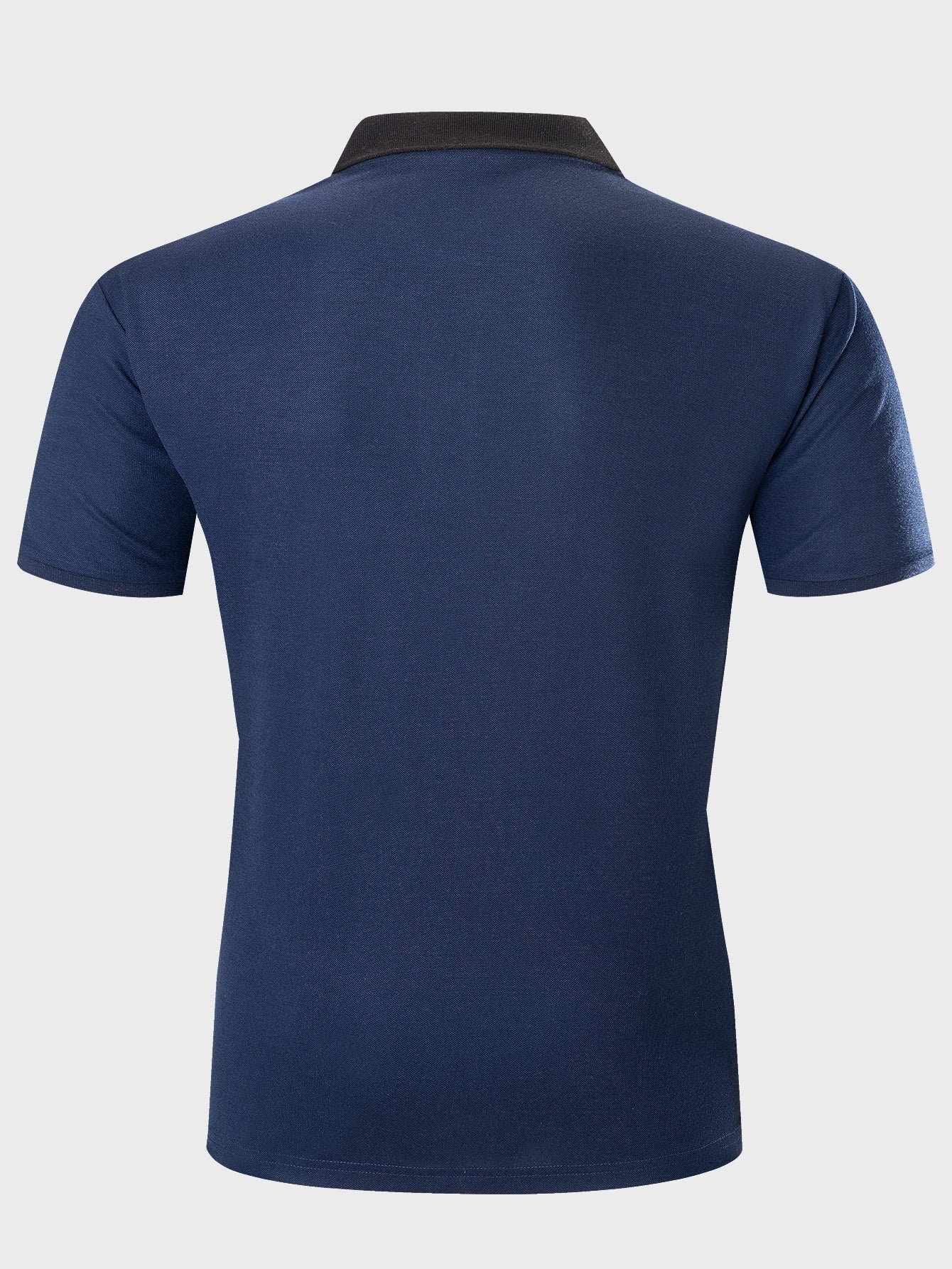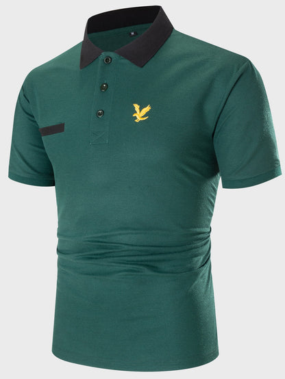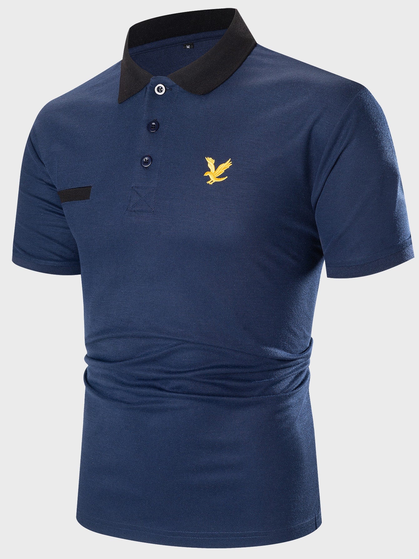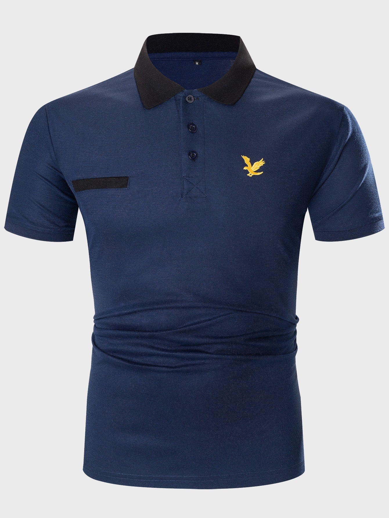 Men Eagle Embroidered Contrast Panel Polo Shirt