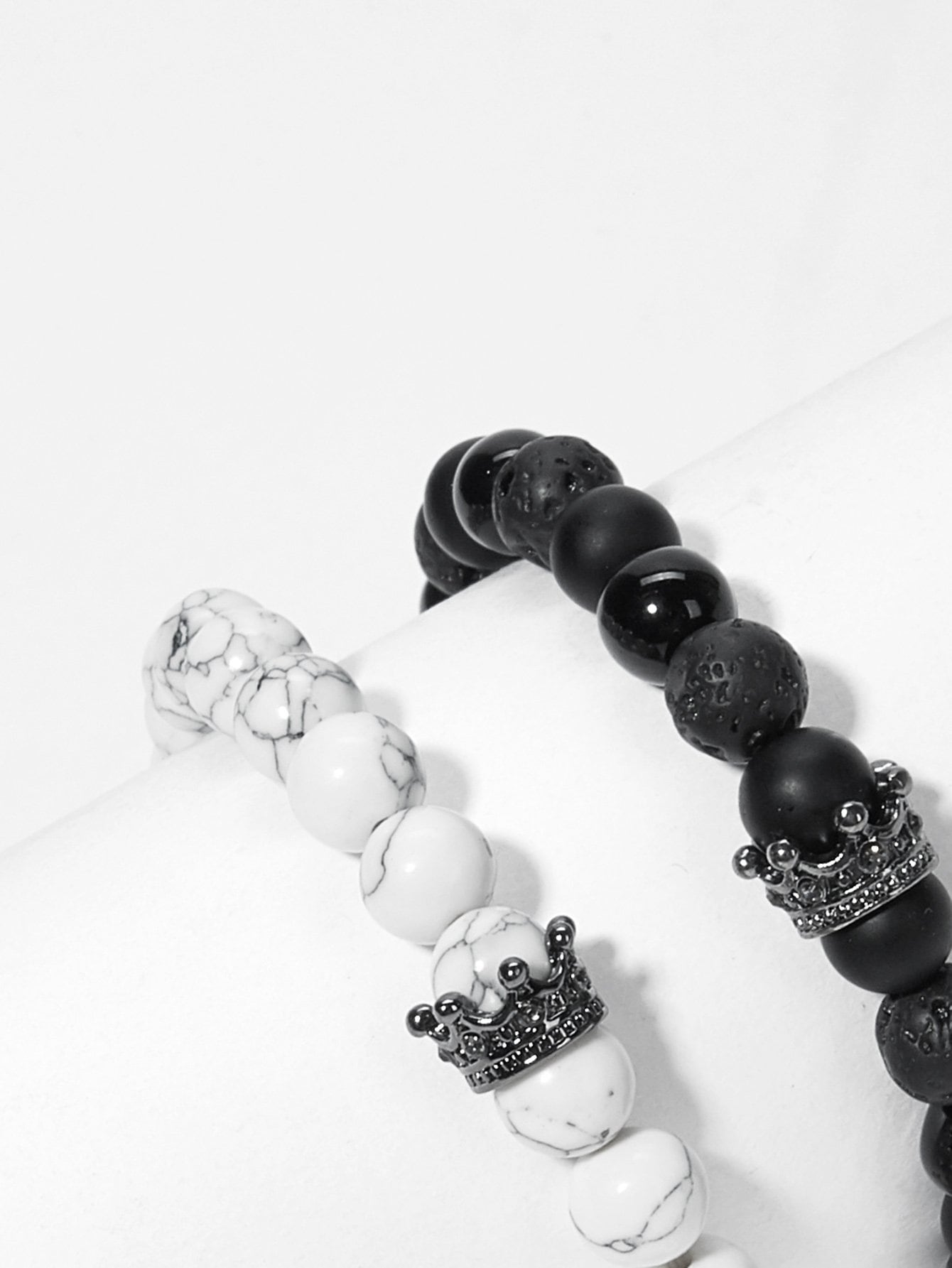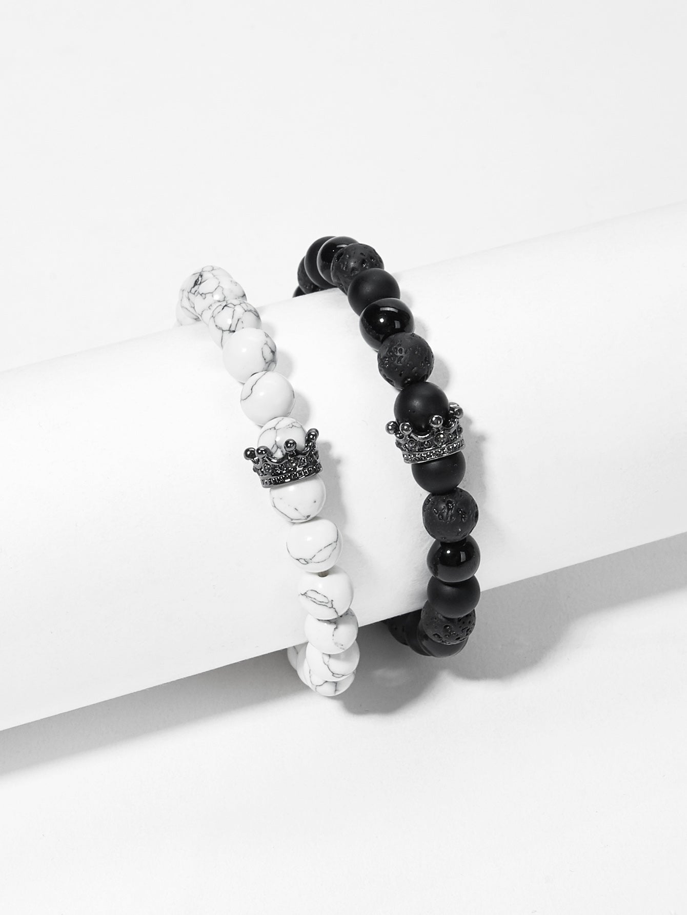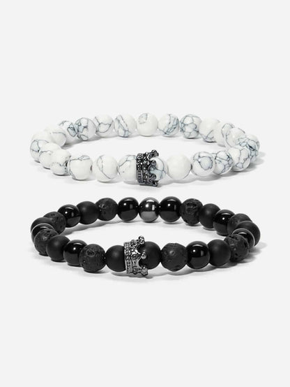 Men Marble Pattern Beaded Bracelet Set 2pcs